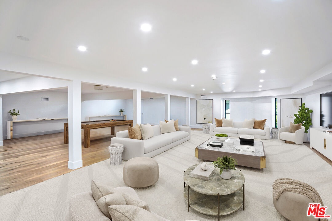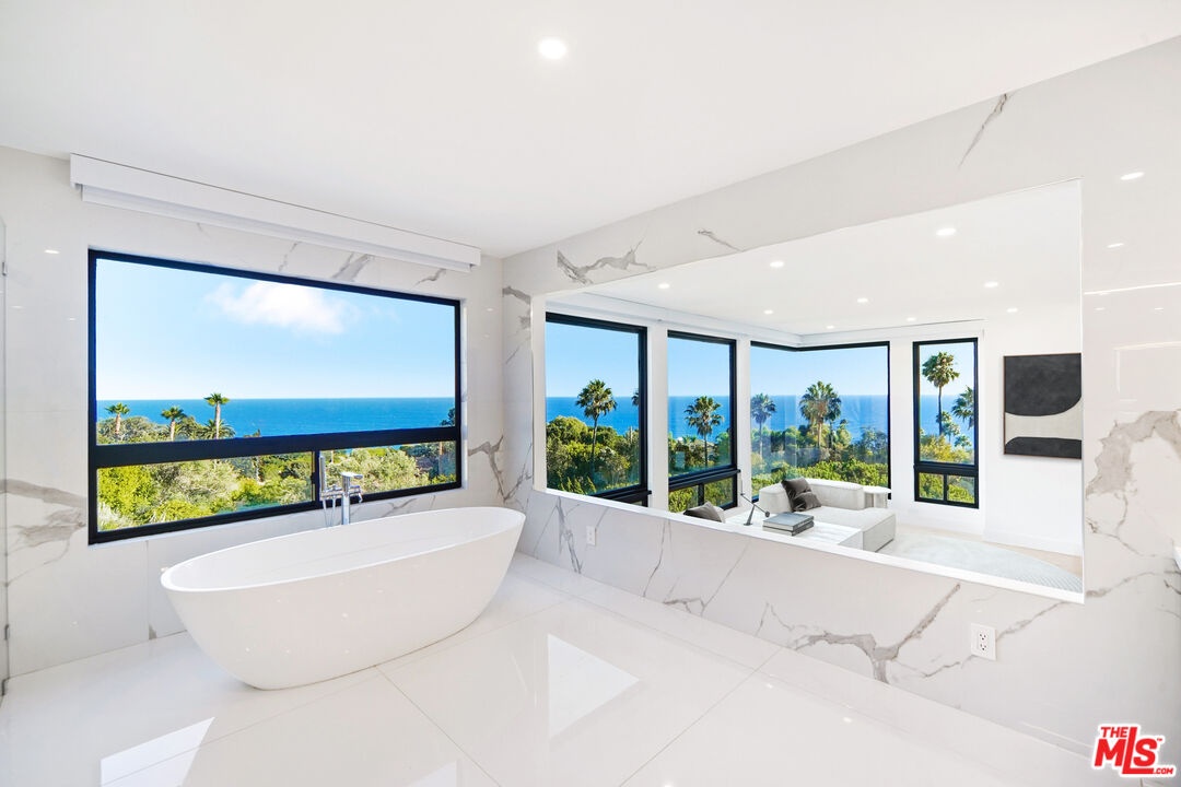 Set behind gates on five private acres overlooking Malibu's Encinal Bluffs, this substantial coastal estate offers a rare combination of land, privacy, and ocean orientation just moments from the Pacific. Properties of this scale with established grounds and panoramic views are increasingly difficult to find this close to the coastline. A long private drive leads to more than 10,000 square feet under roof, where soaring cathedral ceilings and walls of glass frame sweeping ocean vistas from nearly every room. Designed for both comfortable daily living and large-scale gatherings, the residence includes six bedrooms and five full plus two half bathrooms, including two ocean-view primary suites. The expansive open-concept kitchen connects seamlessly to multiple living and dining areas centered around a dramatic great room. An approximately 2,000-square-foot finished lower level provides flexible space for a private office, wine storage, gym, media room, or additional storage, along with direct drive-in access ideal for collectors, hobbyists, or secure vehicle storage. Outdoor amenities include multiple terraces positioned for sunset views, a resort-style pool and spa, generous lawns, and a mature orchard that enhances the property's park-like character. Garage parking for up to nine vehicles, together with a large motor court accommodating additional cars, underscores the estate's scale and versatility. Fully gated and approached by a long private drive, the property offers a high degree of privacy and security while remaining close to beaches, shopping, and central Malibu amenities. The combination of acreage, established landscaping, panoramic ocean views, and substantial living space makes this a rare offering for those seeking a true Malibu estate with both privacy and proximity to the ocean.