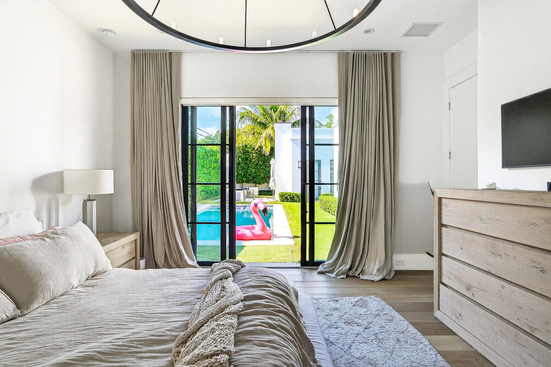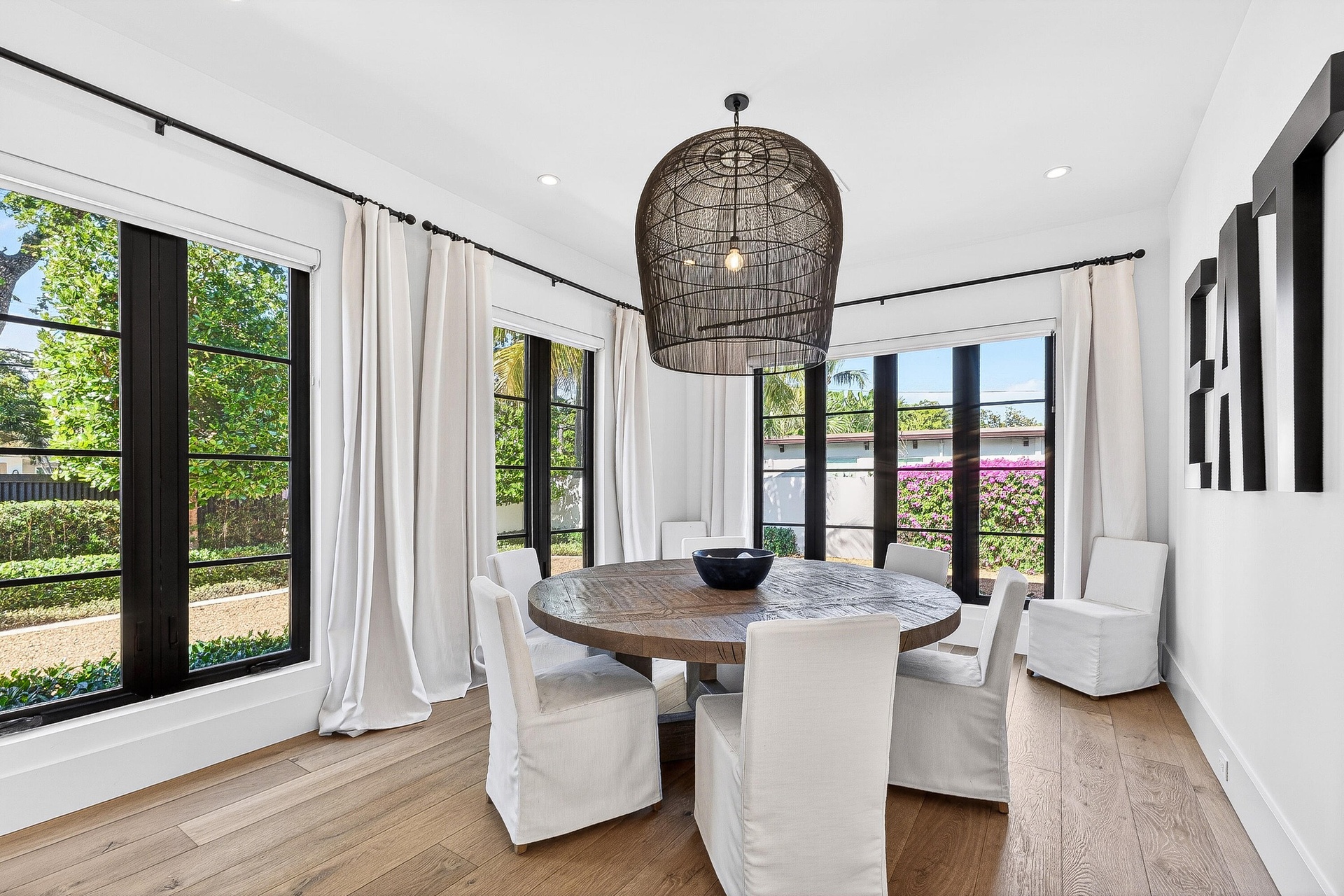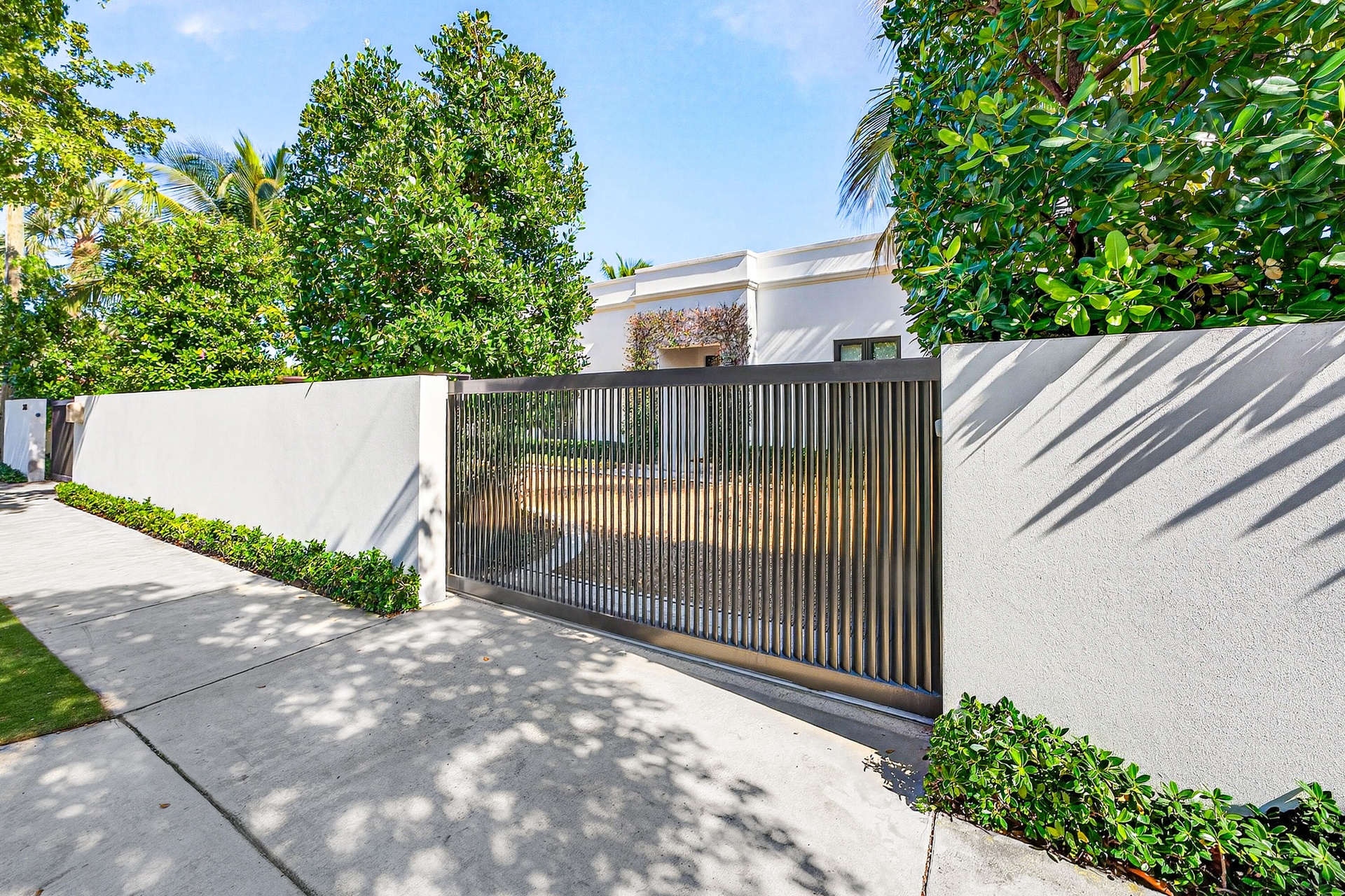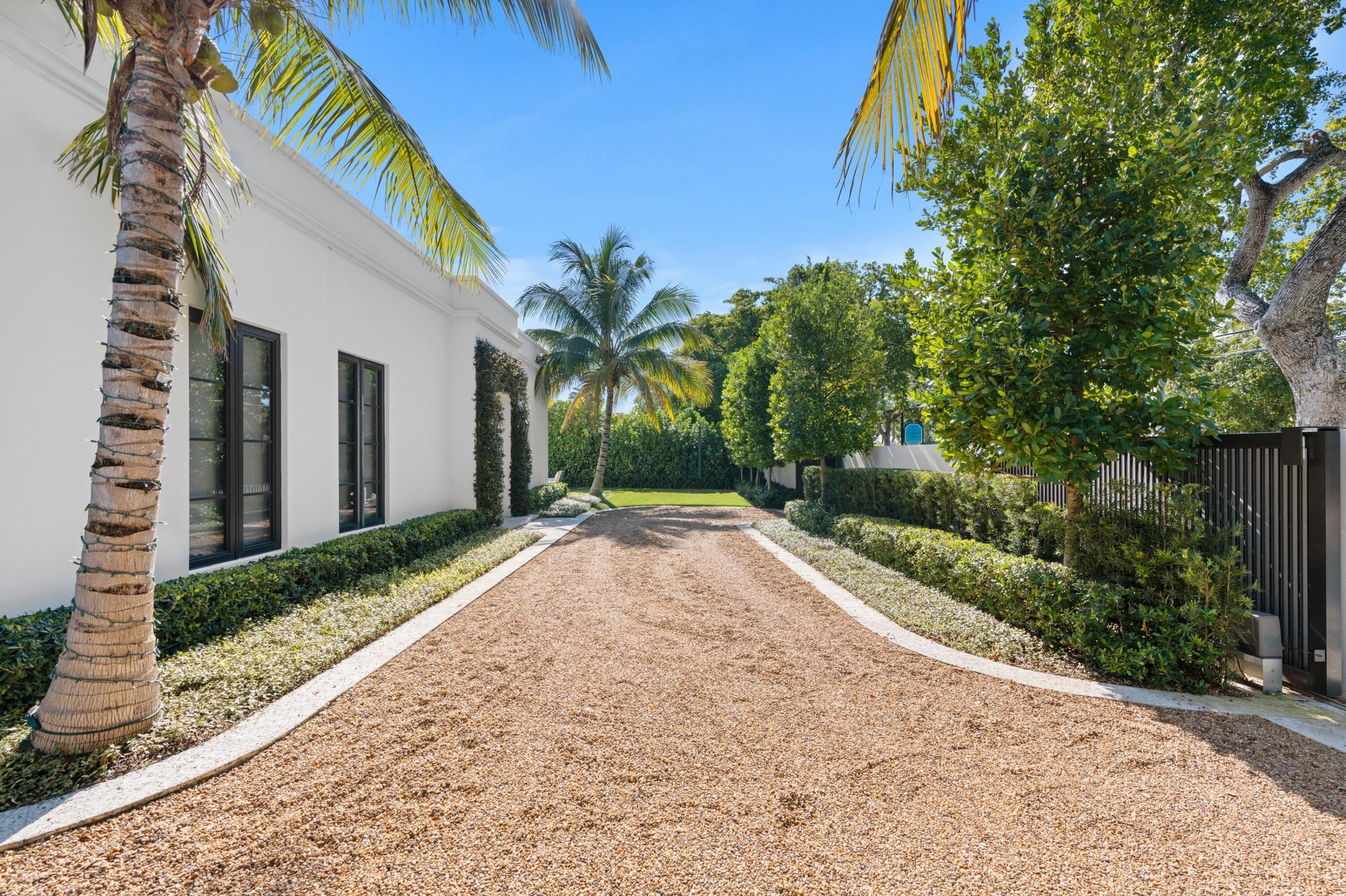 Fully custom, gated residence set along a tree-lined stretch of Olive Avenue, surrounded by mature olives and mahoganys. A truly one-of-a-kind layout centered around private courtyards creates seamless indoor-outdoor living with exceptional privacy.