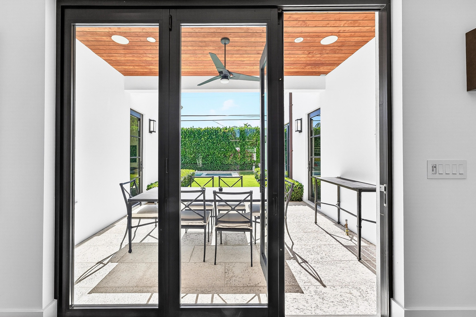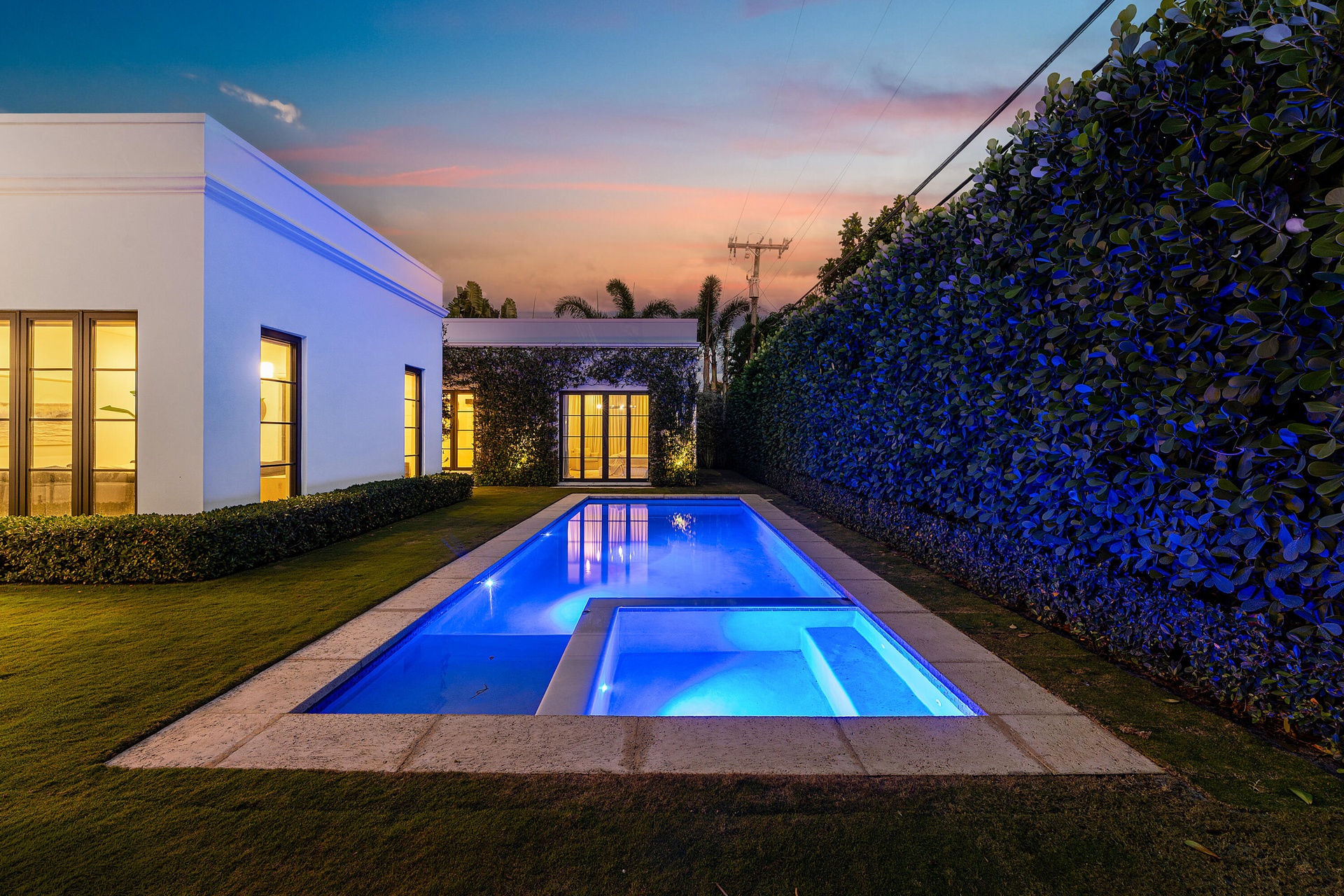 The spacious yard offers a saltwater pool and spa, custom outdoor fireplace, and a private setting ideal for daily living and entertaining. Situated on an oversized 11,000+ square foot lot with a two-car garage. Renaissance modern architecture. Four bedrooms plus den. Minutes to Downtown West Palm Beach and Palm Beach International Airport. Walkable to restaurants, shops, and markets.