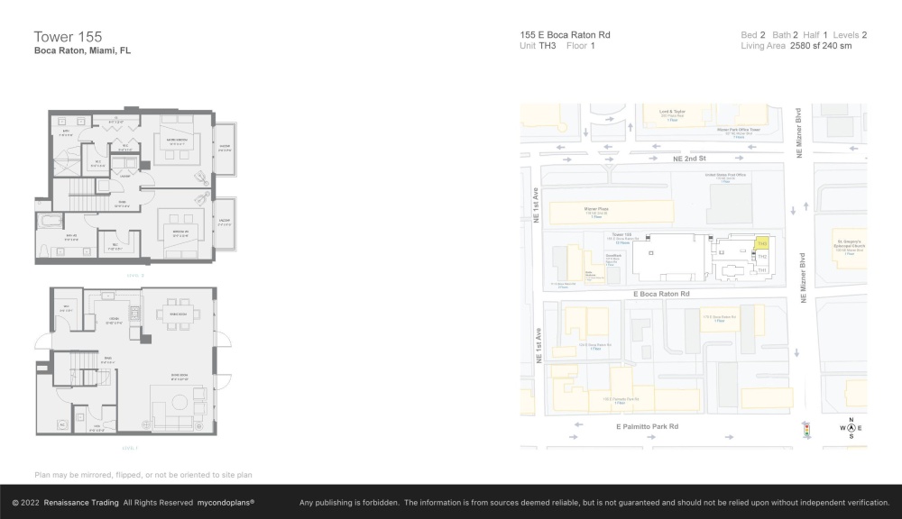 Ideally located near Mizner Park, Royal Palm Plaza, Boca Raton's dining and shopping destinations, nearby beaches, private aviation, and Town Center Mall. A unique opportunity to enjoy townhouse-style living with full-service amenities in one of Downtown Boca Raton's most desirable buildings.