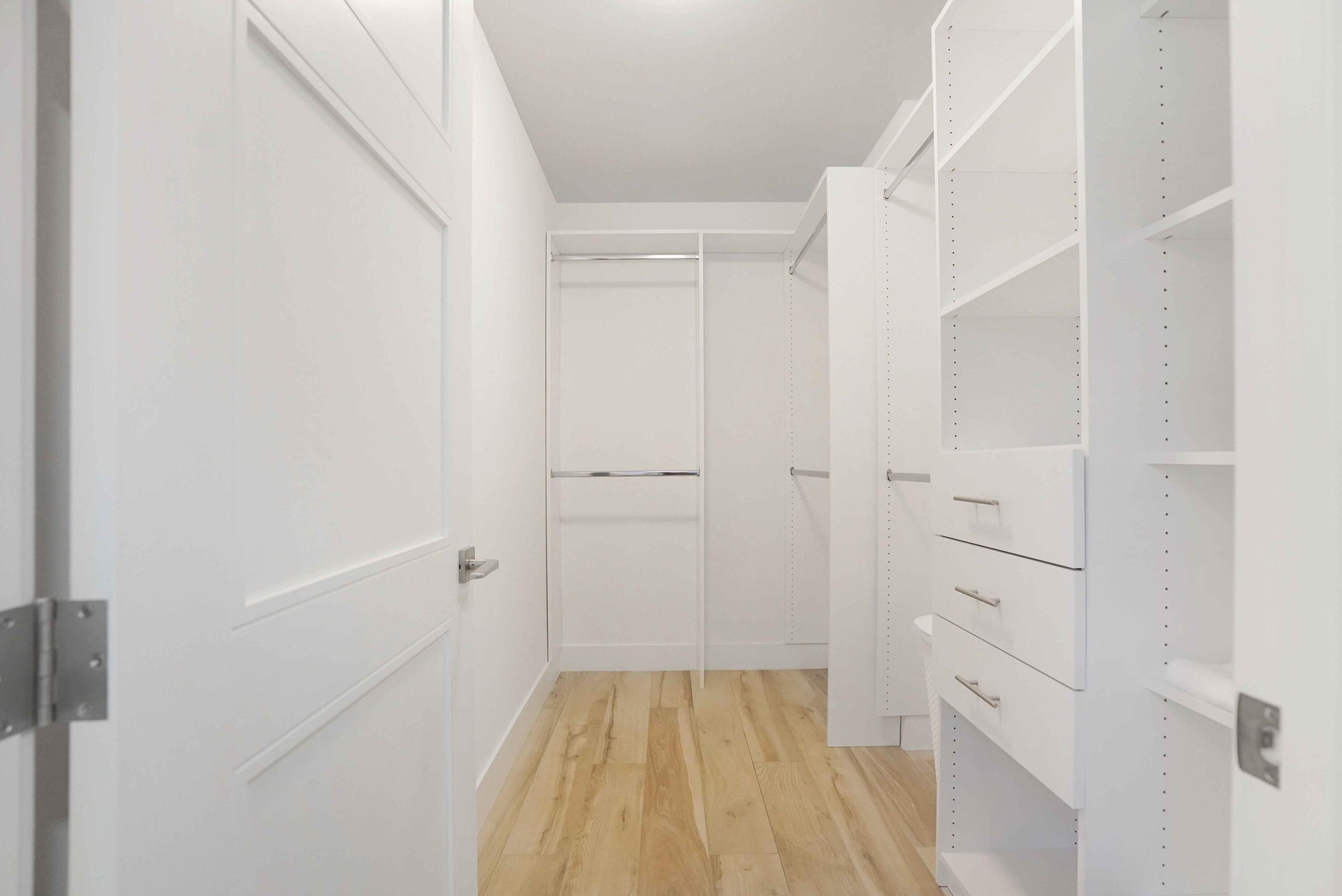 The primary suite serves as a quiet retreat with a spacious walk-in closet and an en-suite bath featuring dual vanities and refined finishes. High-end materials and thoughtful detailing are carried throughout the residence.