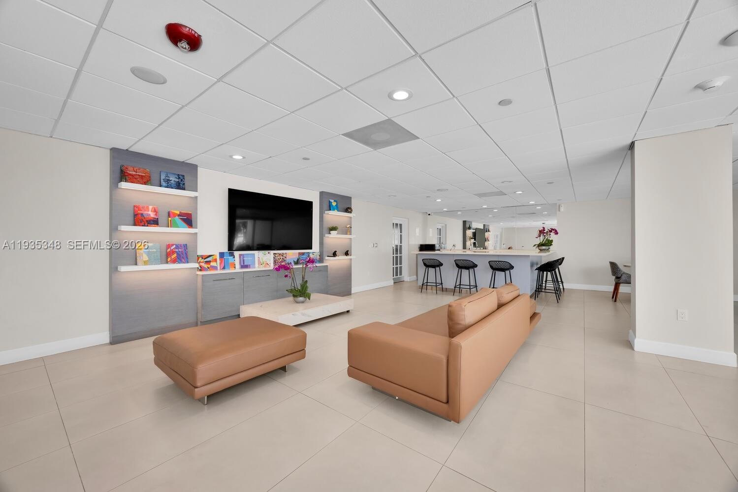 Beautifully remodeled 2-bedroom, 2-bath residence featuring a desirable open-concept kitchen with sleek quartz countertops, an oversized peninsula with dramatic waterfall edge, stainless steel appliances, and elegant porcelain tile flooring throughout. Impact glass windows and doors enhance comfort and peace of mind. Unit is in impeccable condition! Enjoy seamless indoor-outdoor living from the wide terrace overlooking lush tropical gardens with a peek of the ocean—the perfect backdrop for breathtaking sunsets and relaxed island evenings. The spacious primary suite offers a serene retreat with an ensuite bath and custom built-in cabinetry. The second bedroom has been thoughtfully reconfigured into two separate sleeping areas with an easily removable partition wall. Each has custom built desks and share a large reach-in closet area with plenty of space! Experience island living at its best in the coveted Commodore Club community, offering resort-style amenities including tennis courts, heated pool, beach access, fitness center, sauna, party room, onsite management, front desk concierge, 24-hour security, and more. A rare opportunity to enjoy comfort, style, and sunsets in a premier coastal setting.