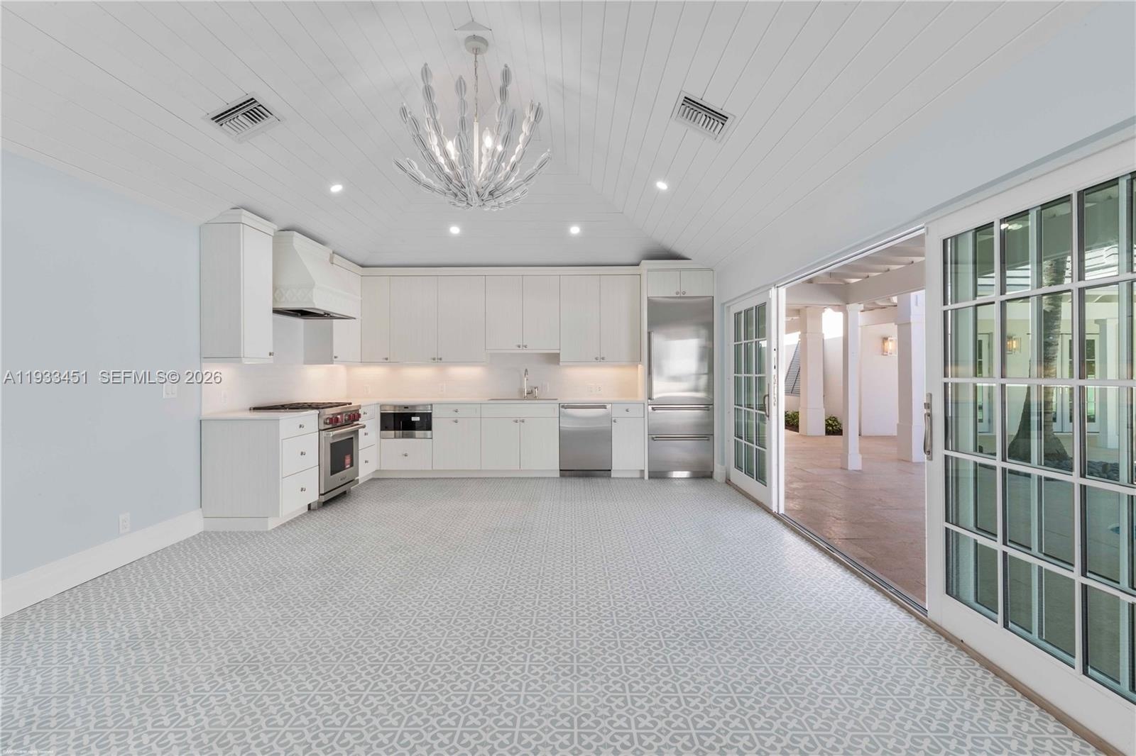 Custom millwork, cypress ceilings; Great Room & Dining Room with 14’ ceilings; chef’s kitchen with Sub-Zero/Wolf appliances, marble counters, and designer cabinetry; butler’s pantry with second dishwasher, sink, and wine storage; cypress-wrapped office; luxury primary suite with dual walk-in-closets and dual spa baths.
