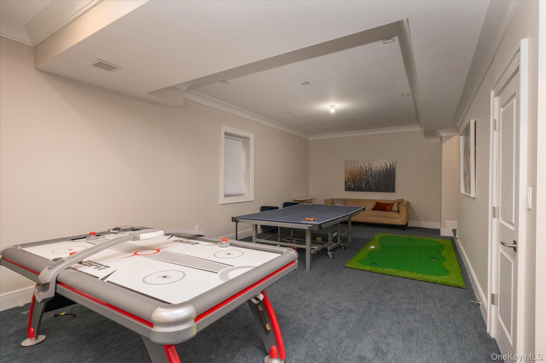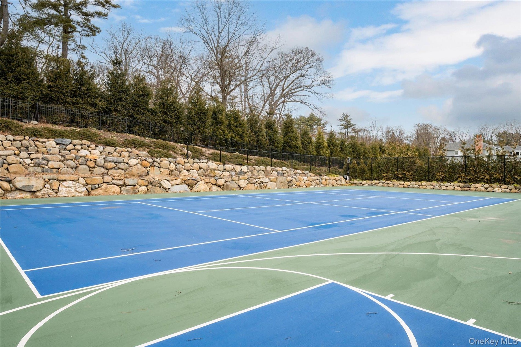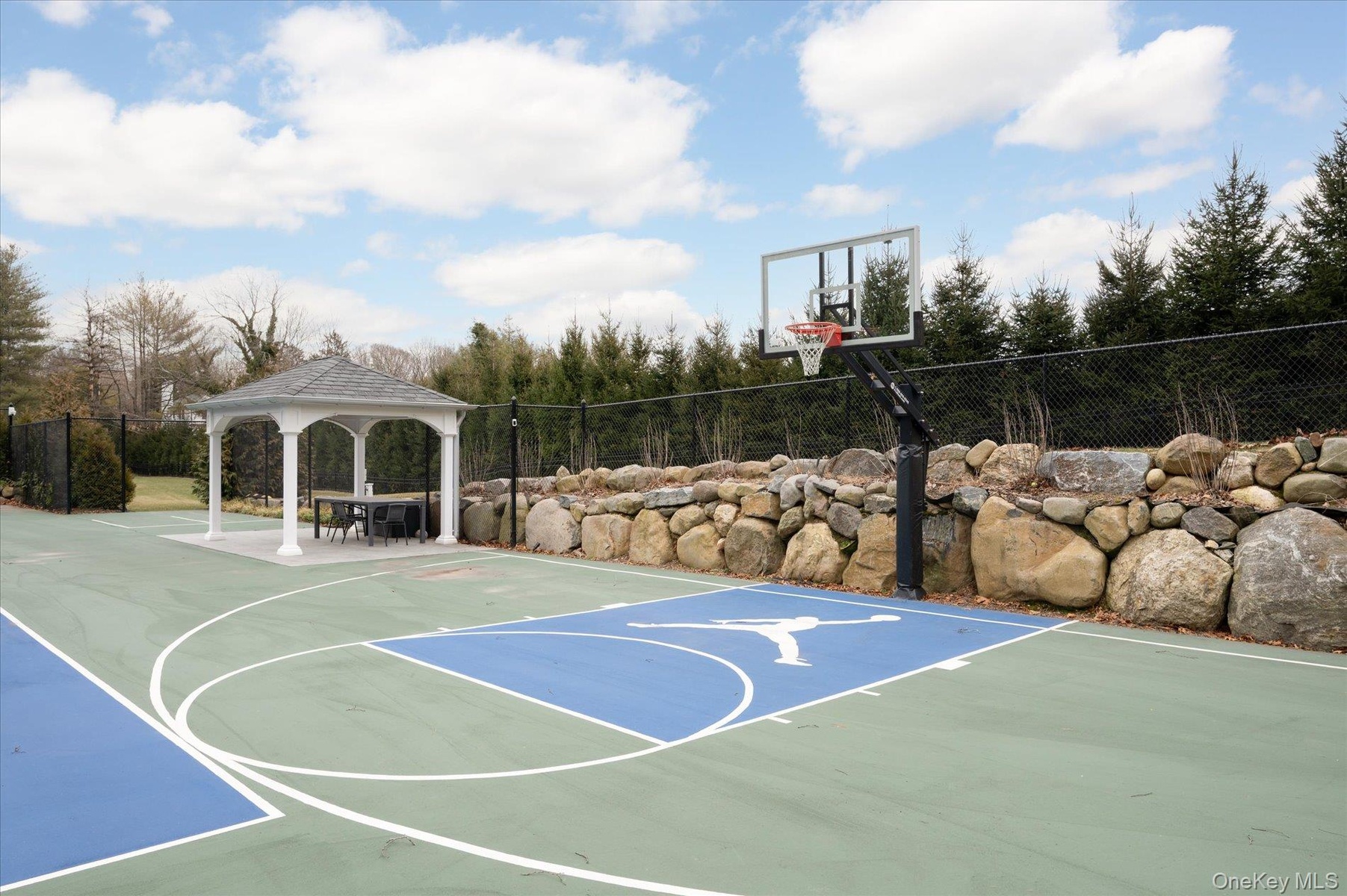 The grounds are both functional and refined, offering a pool area with a separate cottage or guest house, tennis and basketball courts, a private pond, dog run, and a five-car garage. Mature landscaping is supported by substantial irrigation and drainage systems, ensuring the property remains well maintained throughout the seasons. Additional features include a whole-house gas generator, comprehensive security and surveillance systems, and robust infrastructure throughout the estate.