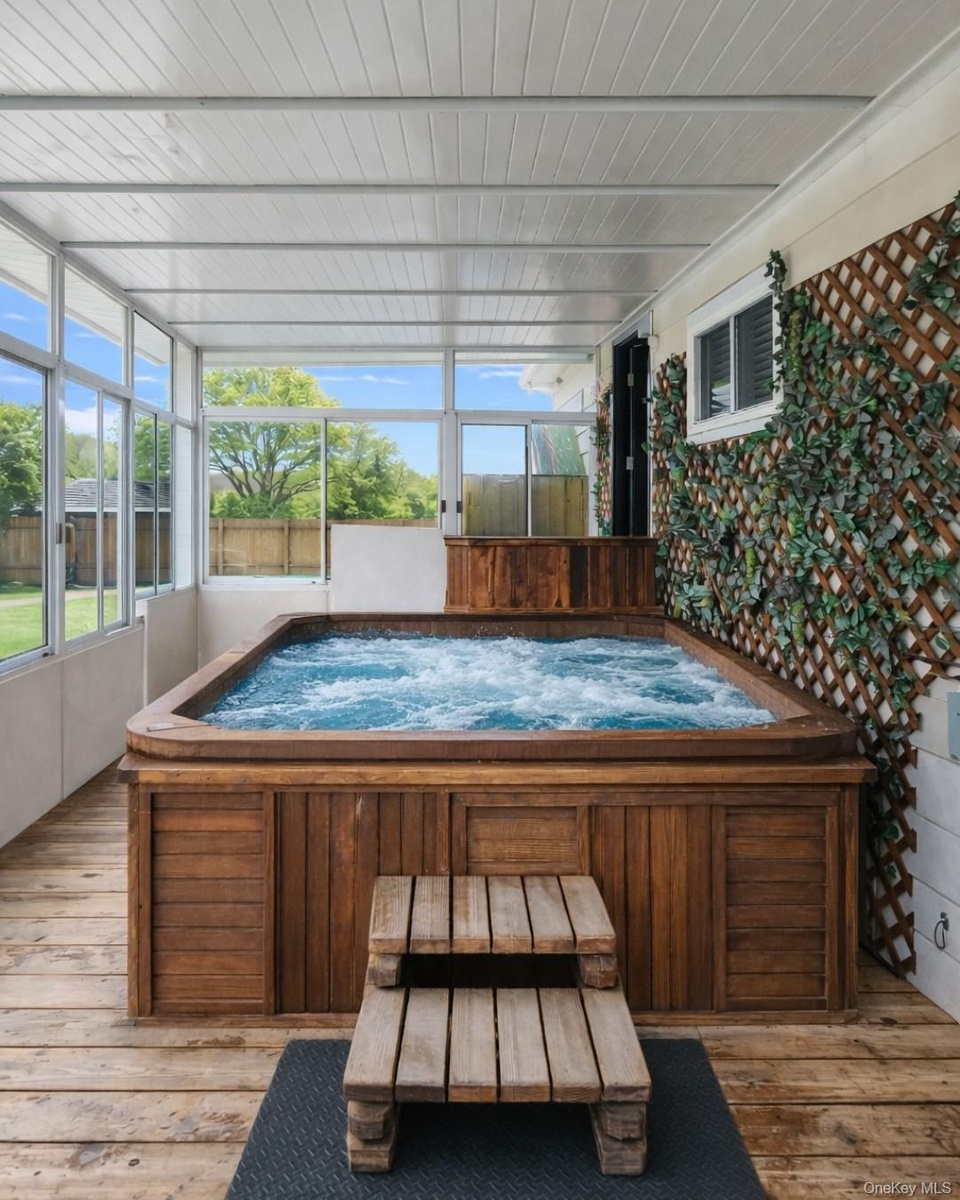 Just beyond the living space, enjoy a cozy enclosed porch with a jacuzzi, creating a relaxing retreat year-round. This space opens to a large, private backyard, ideal for gatherings, unwinding after a long day, or simply enjoying the outdoors.