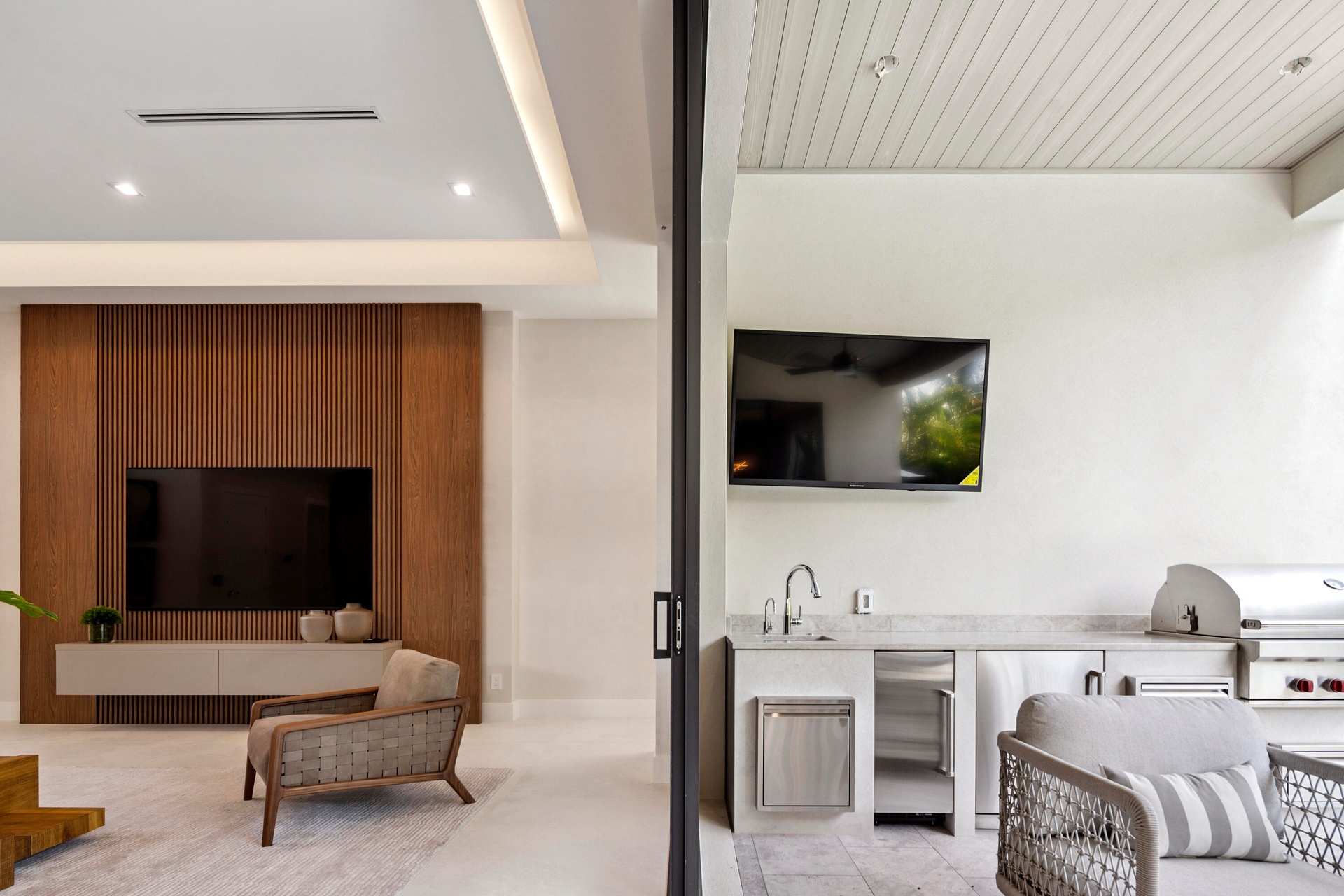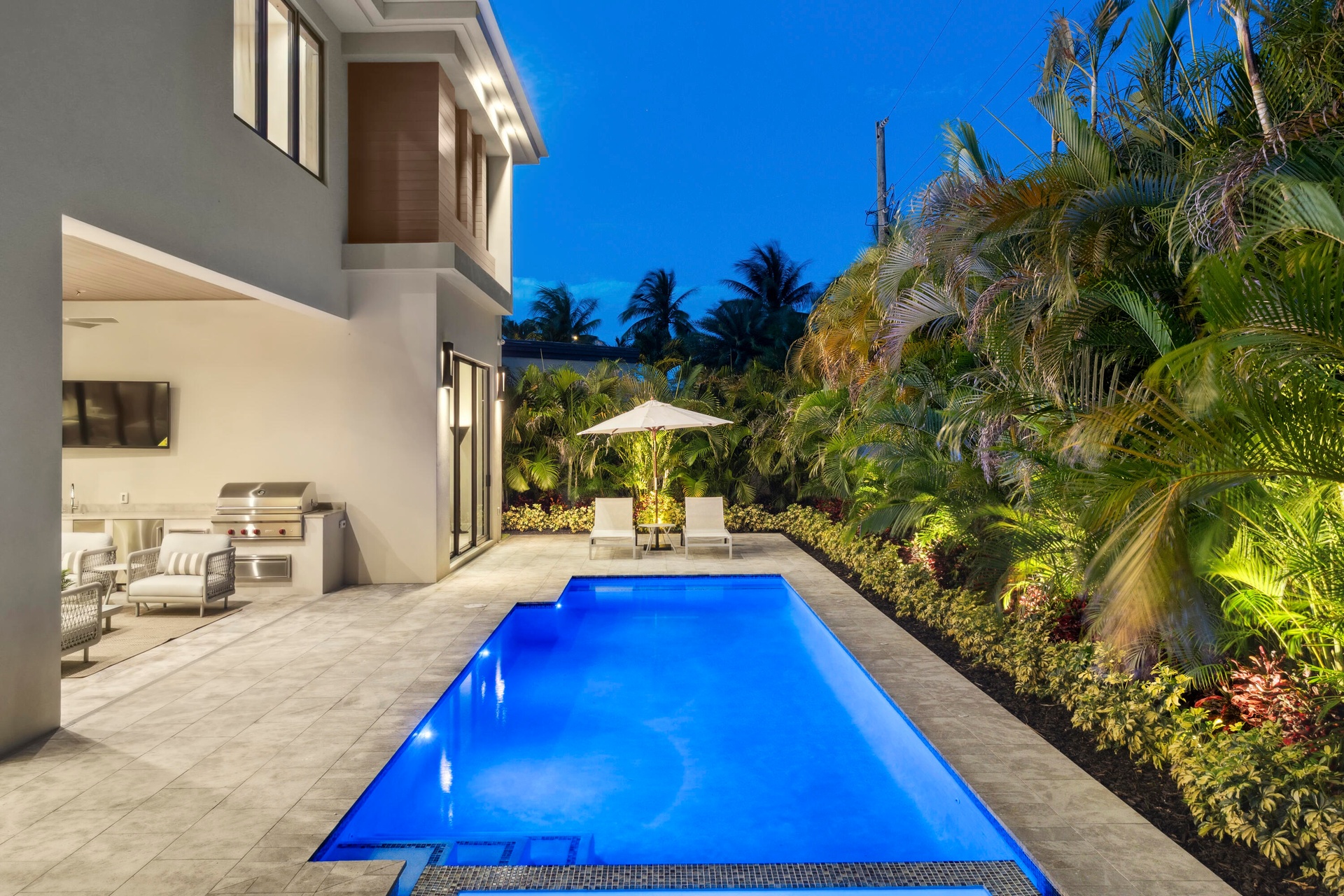 Then there's the real showstopper: the backyard. Slide open the doors and step into your private outdoor oasis. Fire up the Wolf grill in the summer kitchen, mix drinks at the bar, catch the game on the waterproof SunBrite TV, or take a twilight dip in the saltwater pool before winding down in the spa. Whether it's a quiet alfresco dinner or an all-out celebration, this space was made for making memories.