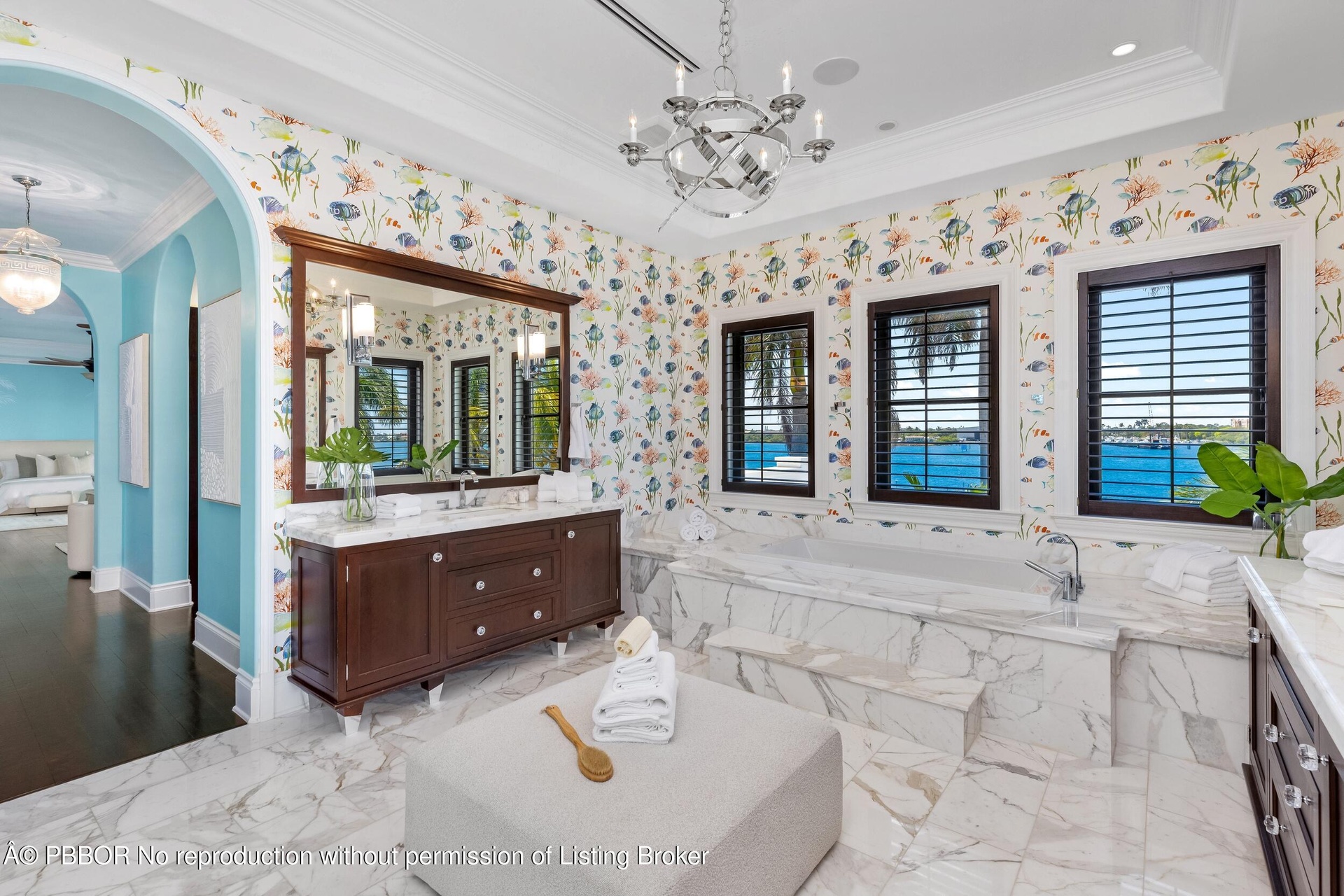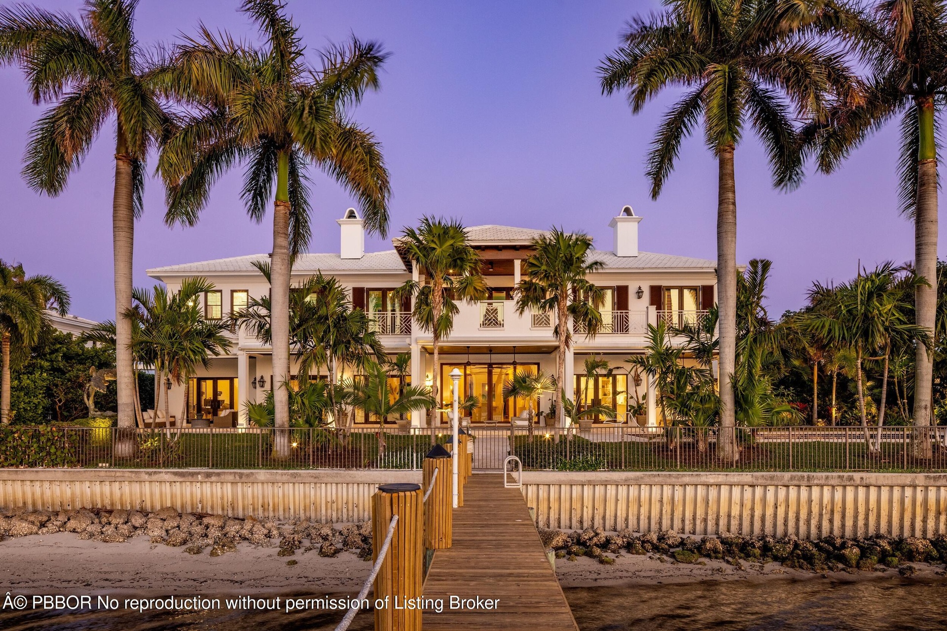 Stunning British Colonial estate in serene Point Manalapan. This elegant and inviting 5BR/5.2BA home is situated on a fantastic, lakefront lot and features breathtaking views of the Intracoastal. Gracious floorplan with welcoming, double height reception room, formal dining room, and spacious great room. Gourmet kitchen with large island, top-of-the-line appliances, and butler's pantry. Expansive primary wing complete with sitting area, dual walk-in closets, large bath with dual vanities, and fabulous covered balcony with stunning water views. Gorgeous outdoor spaces with covered loggia that spans the entire back of the home, summer kitchen, pool with spa, and lush tropical landscaping giving the home a relaxing, resort-style feel. Recently renovated boat dock with two lifts, including a 30,000lb primary lift, and direct ocean access through the Boynton Beach inlet, perfect for the avid boater. Additional highlights include elevator, first and second floor laundry rooms, upstairs living area, and 3-car garage. Recently installed new whole house WiFi and Sonos systems, and numerous other improvements. Point Manalapan is a unique community, featuring both a 24/7 guard gate operated under the Manalapan Police Department, and a no-wait, no-fees membership to the La Coquille Club, which is part of the luxurious and beautifully upgraded Eau Palm Beach hotel.