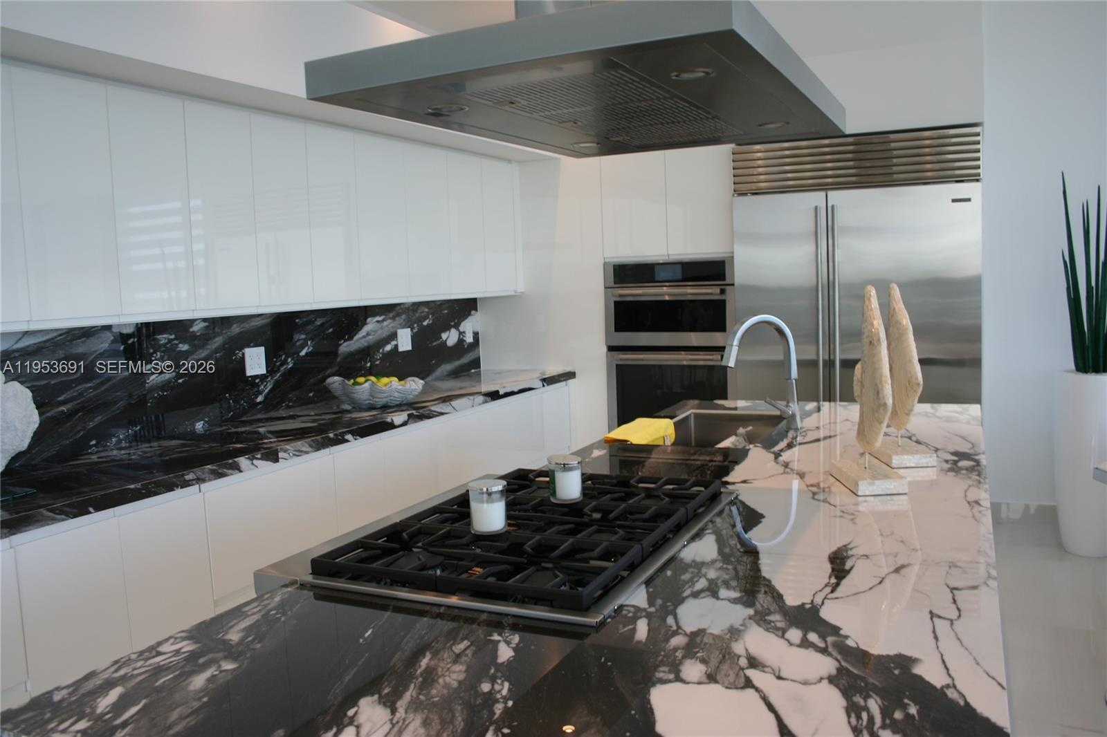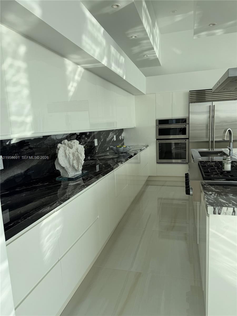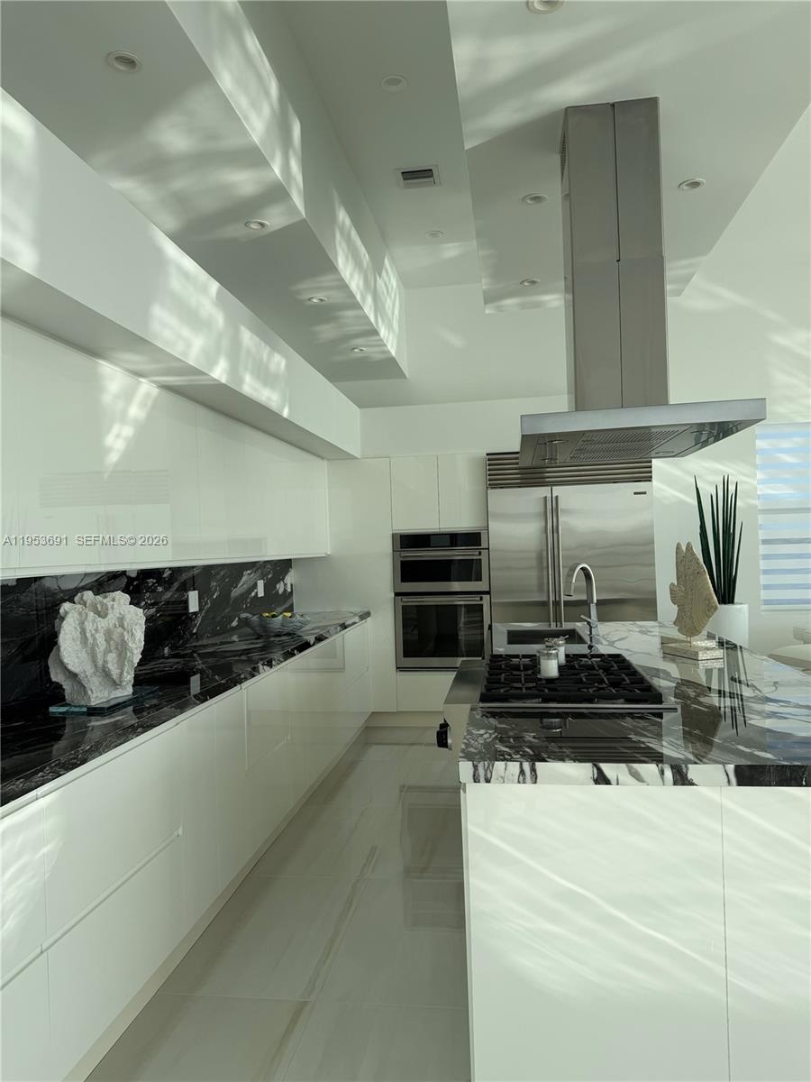 Walk into this luxurious palace with captivating open water views. Light colors accenting the beautiful interior with matching large Porcelain floors and counter tops enhancing the large windows bringing the natural light inside. Gourmet kitchen for any chef to create great memories viewing the sunsets. Open patio with a great view of the pool and the outdoor entertaining areas. Four roomy suites for your family and friends to enjoy with oversized closets and high ceilings for your pleasure. 15,000-pound boat lift for your convenance at your dock side.