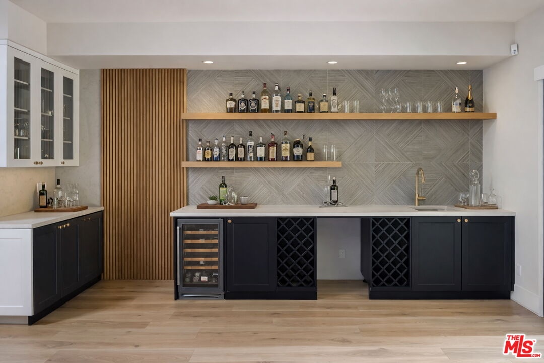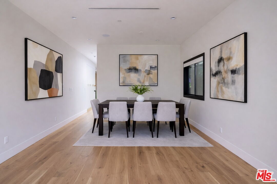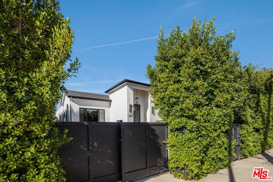 Welcome to this exceptional single-story Modern Farmhouse set on one of Beverly Grove's most coveted streets. Privately gated and hedged, this meticulously designed entertainers home reflects refined architectural intent and uncompromising craftsmanship throughout. A striking 9-foot pivot door opens to a beautiful light-filled living room with a statement fireplace, an expansive picture window, and wide-plank white oak floors. The kitchen and family room flow seamlessly through to an IPE wood terrace, creating an effortless indoor-outdoor lifestyle. Your resort-style grounds feature a newly completed pool and spa alongside a detached, fully permitted ADU/pool house with a kitchen and bathroom, ideal for guests, an office, or a retreat. Interior appointments include 10-foot ceilings, 8-foot solid doors, Emtek brass hardware, Jeld-Wen windows, Sonos audio, and a chef's kitchen with a stunning 12-foot island and bespoke cabinetry. The main residence offers three bedrooms and two and a half baths, complemented by a storage basement and a turnkey ADU with mini-split HVAC. A rare offering where timeless design, modern comfort, and privacy converge, crafted for those who value discretion, quality, and effortless living.