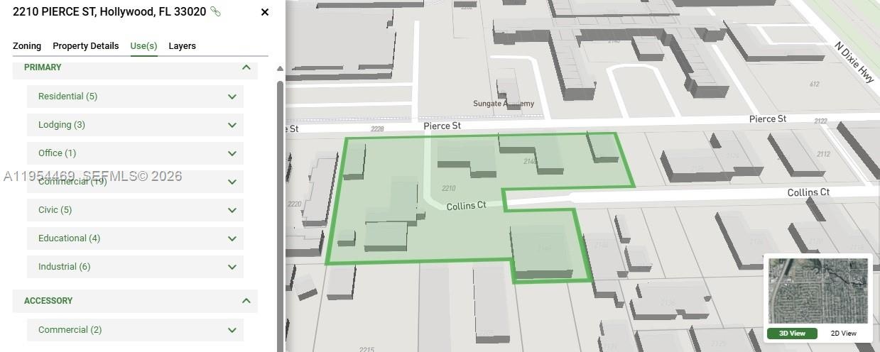 Rare opportunity to acquire approximately 1.5 acres of commercial land in a prime central Hollywood location, offered strictly for development purposes. The property is zoned DH-2 and DH-3, allowing for a wide range of potential uses including residential, multifamily, hotel, educational, office, and mixed-use development (buyer to verify all permitted uses).