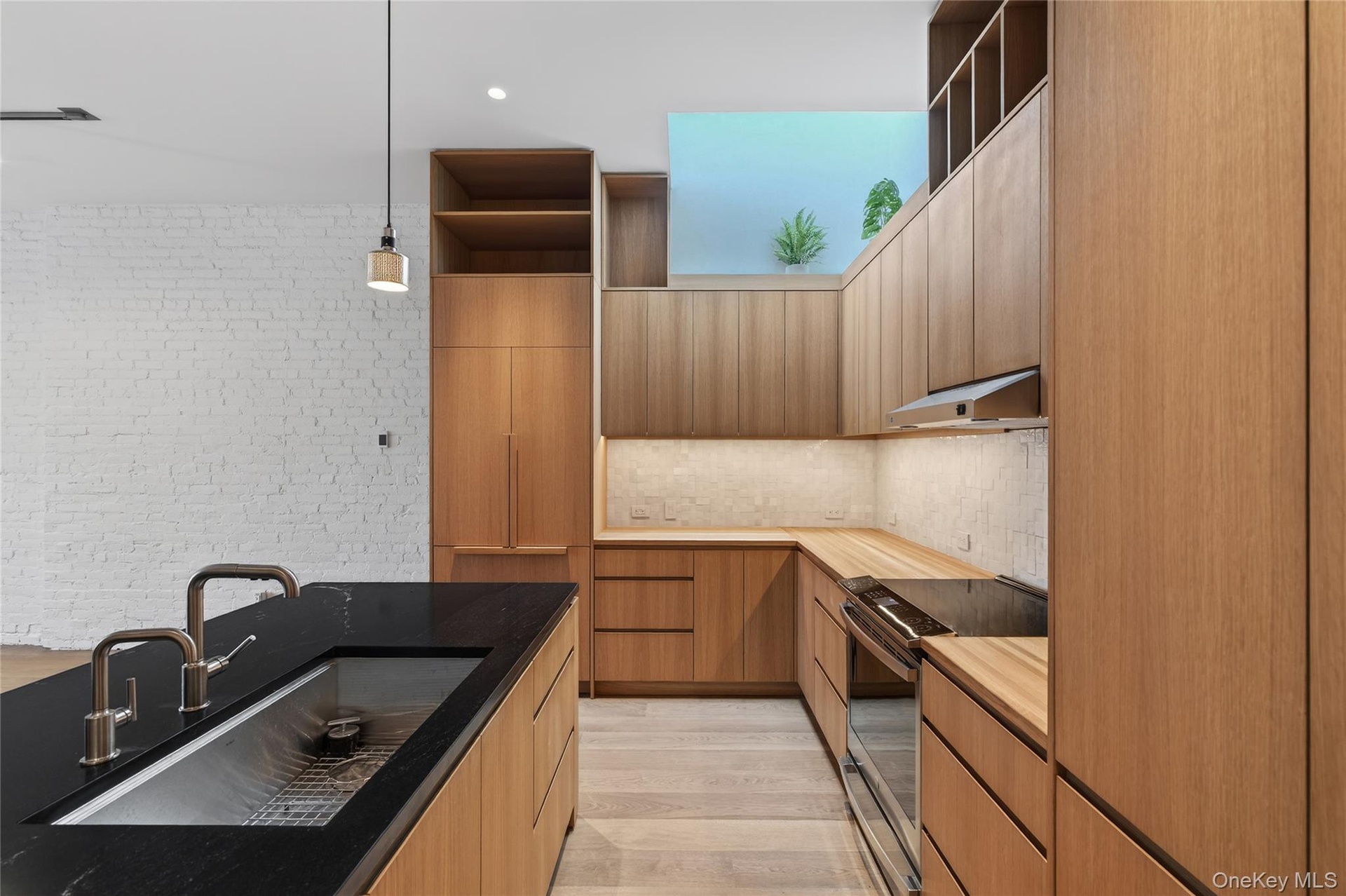 Occupying the entire third floor, this exceptional residence offers true penthouse-style living with expansive interior space, elevated views, and exclusive access to the building's rooftop. Thoughtfully designed and meticulously finished, the apartment combines modern craftsmanship with the character of the original structure, creating a refined and private living environment in the heart of Uptown Kingston. The main living area is bright and open, featuring wide-plank hardwood floors, exposed brick, and custom millwork that adds warmth and architectural depth. Large windows frame neighborhood and skyline views while maintaining privacy above the street, while the layout allows for flexible living and dining arrangements well suited for both everyday use and entertaining. The custom kitchen is flooded with natural light from a skylight above, highlighting the floor-to-ceiling wood cabinetry, open shelving, and substantial island topped with dark stone. High-end stainless steel appliances, integrated storage, and carefully selected lighting fixtures create a kitchen that is both highly functional and visually striking. Bedrooms are generously proportioned and thoughtfully detailed, incorporating built-in storage, custom shelving, and exposed brick accents. The primary suite offers a spa-like bathroom illuminated by a skylight, featuring a soaking tub, glass-enclosed shower, refined tilework, and a custom vanity. The second bathroom continues the same level of finish with clean lines and modern materials. In-unit laundry is discreetly integrated into custom cabinetry, and the apartment is equipped with mini-split heating and cooling, recessed and track lighting, and extensive built-in storage throughout, all contributing to a seamless and comfortable living experience. A defining feature of this residence is its outdoor access. The apartment includes a private balcony overlooking the Senate Garage grounds and provides exclusive access to the entire rooftop, offering panoramic views, open sky, and a rare opportunity for outdoor living at this scale in downtown Kingston. The rooftop functions as a true extension of the apartment, ideal for entertaining, relaxing, or enjoying elevated views of the surrounding neighborhood. Located just steps from Uptown Kingston's restaurants, galleries, and cultural destinations, this third-floor residence offers privacy, design, and outdoor space rarely found in the local rental market. Utilities are not included. On-street parking is available.