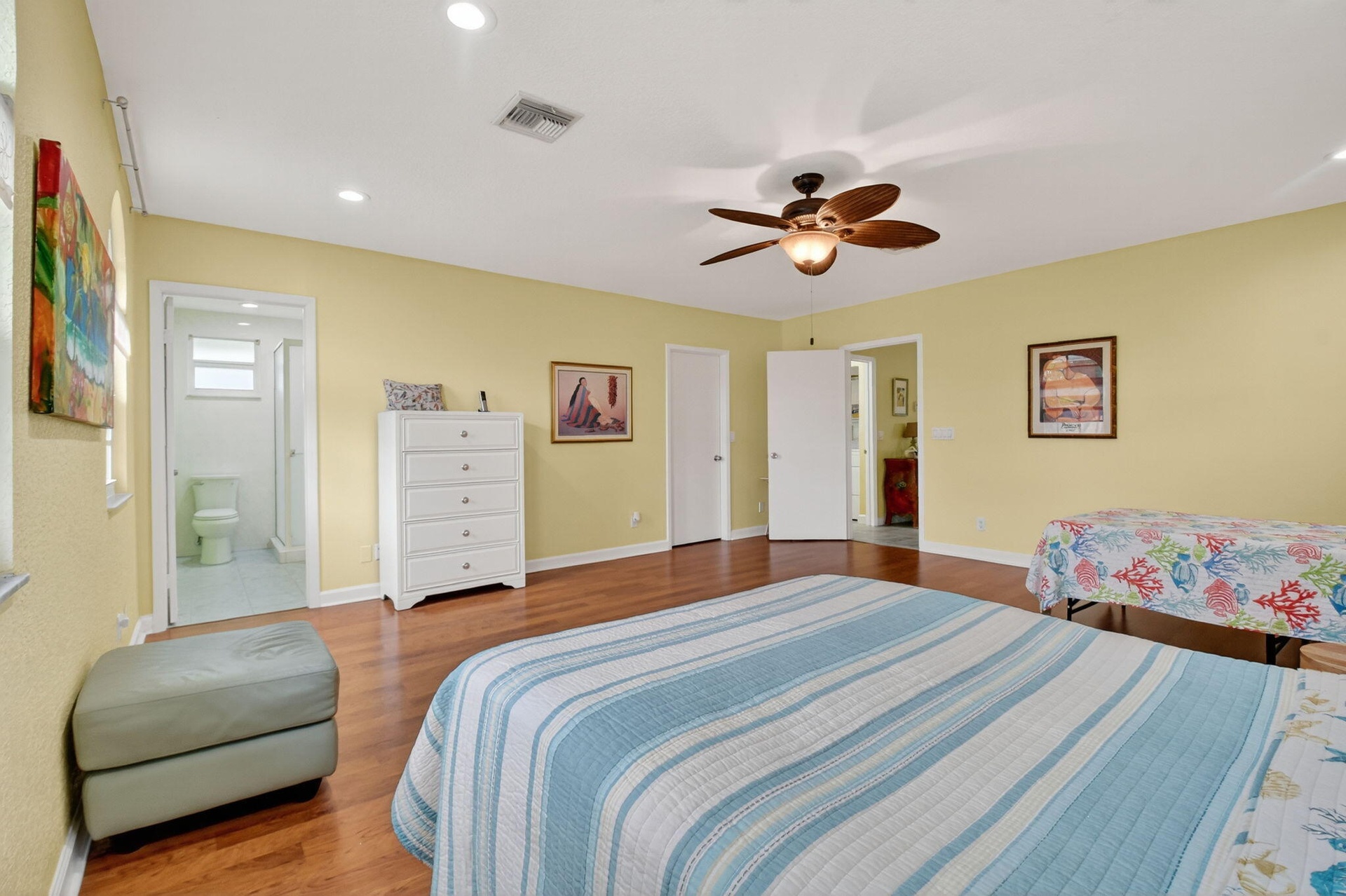 One-of-a-kind opportunity! Beautifully renovated 6 BR home! The flexible layout includes an in-law apartment with full kitchen, laundry & separate entrance, or use for large family, guest quarters, teen suite or an apartment for extra income! New impact windows & doors throughout! The large, new modern chef's kitchen is a dream! Featuring quartz counters, a walk-in pantry, a huge island with storage & sliders leading out to the patio and pool. 1st floor consists of 4 BR's, one a primary with en-suite bath & custom walk-in closet, 2 new modern baths, laundry room, new kitchen, large format tile floors in living areas, oak hardwood floors in bedrooms. The 2nd floor features 2 large bedrooms, each with en-suite baths & walk-in closets, a second kitchen & laundry, plus 2 staircases, one a private entrance. This unique home also has a 2-car garage, refurbished and newly tiled salt chlorinated pool with travertine patio surround, gorgeous tropical oasis yard, professionally landscaped, new brick paver circular driveway, full house water filter, tankless water heater, cul-de-sac location with wide treed streets and sidewalks on both sides. Fenced yard with grassy area - great for pets! One-of-a-kind property. Sunflower Delray is located within the city limits of Delray Beach, just 3 miles to downtown Delray's Pineapple Grove and Atlantic Ave shops & restaurants. 4 miles to the beach. Walk/bike to Barwick Park and Lake Ida Park. The Sunflower section of the neighborhood has no HOA, no HOA restrictions! Floor Plan and list of Upgrades & Updates attached under documents.