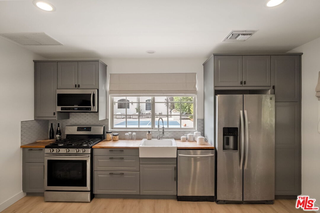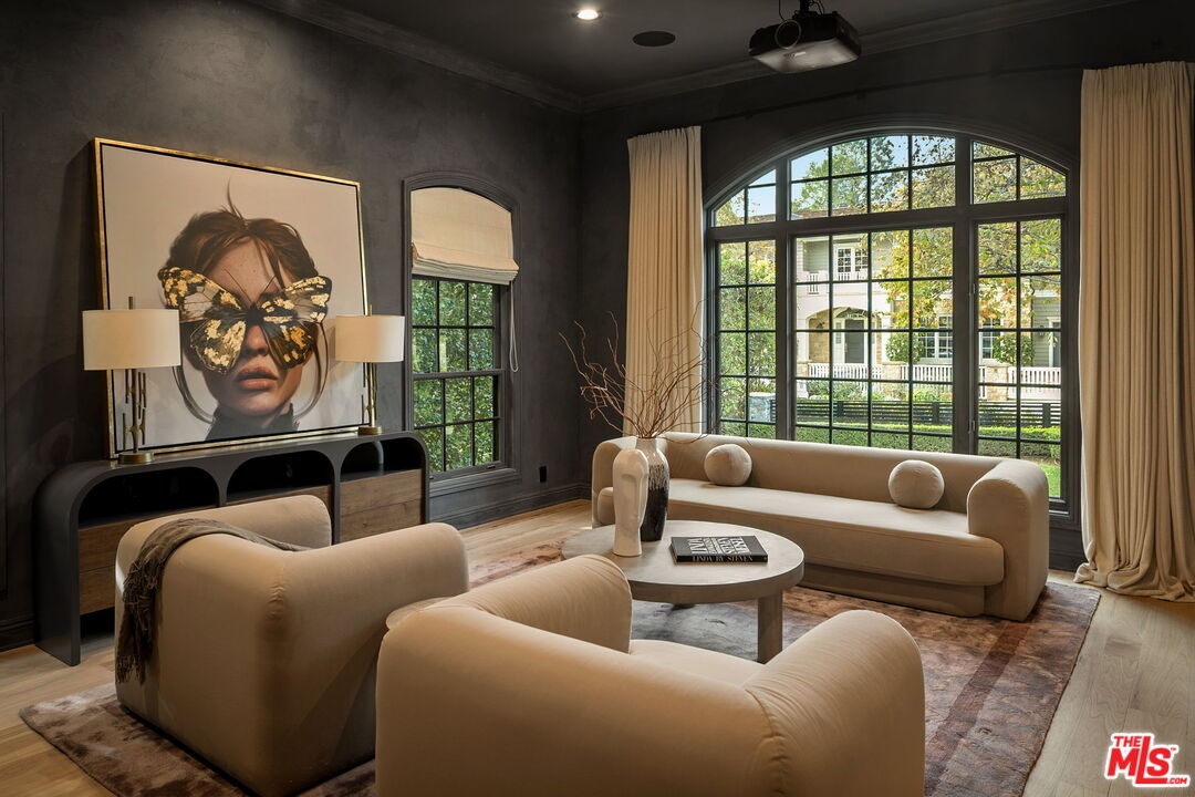 Located on one of Brentwood's most coveted streets, Homewood Road, this newly reimagined estate offers a sophisticated balance of timeless design and effortless California living. Thoughtfully renovated by the current owner, the residence spans approximately 6,800 square feet on an expansive, flat 18,359-square-foot lot.A grand double-door entry opens to a sun-filled foyer with soaring 23-foot ceilings, immediately establishing the home's sense of scale and light. The main level is designed for both refined entertaining and everyday comfort, featuring a formal dining room overlooking the gardens, a dedicated theater, and an expansive great room where a double-island chef's kitchen seamlessly connects to the family room and outdoor living spaces. The kitchen is appointed with custom wood cabinetry, marble countertops, professional-grade appliances, and a walk-in pantry, while a window-wrapped breakfast nook enjoys tranquil views of the pool and grounds. Two generously sized bedrooms and a full laundry room complete the main floor.The upper level hosts four en-suite bedrooms, each with walk-in closets, including a luxurious primary suite with a private sitting area, office, and dual walk-in closetsone currently configured as a fitness studio.Set behind lush landscaping, the resort-style backyard features a sparkling pool and spa, multiple outdoor lounging and dining areas, and a broad lawn ideal for recreation. Additional amenities include a private pickleball court and a fully permitted two-bedroom, one-bath guest house with its own laundry.Situated within the coveted Kenter Canyon Elementary School district and surrounded by Brentwood's finest estates, this exceptional property offers a rare combination of scale, privacy, and modern elegance in one of Los Angeles' most desirable neighborhoods.