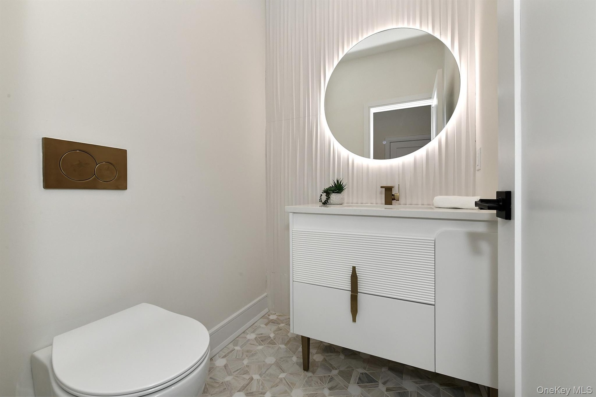 The main floor also includes a powder room and a full ensuite bedroom. Step outside to a resort like backyard featuring an oversized heated saltwater pool, ideal for entertaining or relaxing. Multi zone Sonos Speakers run throughout first floor, outdoors by the pool and alo primary bedroom.