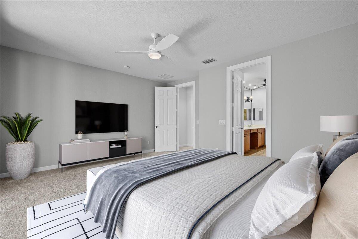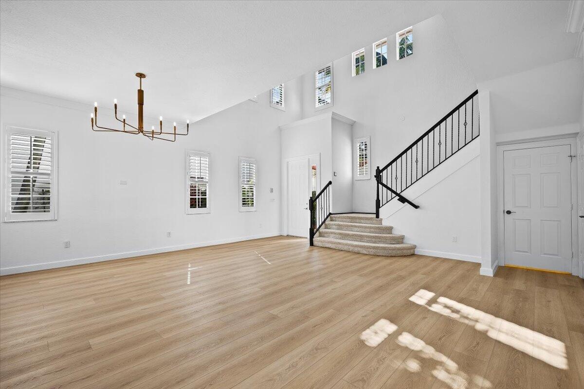 Welcome to this Stunning Lakefront Pool Home Featuring 4 Beds/3.5 Baths, with a Separate Courtyard Guest Suite. Newly Renovated & Reconfigured Chef's Kitchen Includes; Top-Notch Stainless-Steel Appliances, Hooded Stovetop, Quartzite Counters, Subway Tile Backsplash + Farmers Sink. Large Great Room (Living/Dining Rooms) has 25' Ceilings, Separate Family Room + Upstairs Entertainment Loft. Oversized Owner's Suite has a Private Balcony with Lake & Pool Views. Stunning Tropical Fenced-In Backyard with Pool/Spa has an Extended Paver Stone Patio + Covered Lanai. Luxury Vinyl Plank Floors, Central Vacuum System + 2 Car Garage with Easy Care Epoxy Floors. Enjoy Evergrene's Resort-Like Amenities. Minutes to the Beach, Tennis Center, Public Golf Courses, Downtown & the Airport, ''A'' Rated Schools.