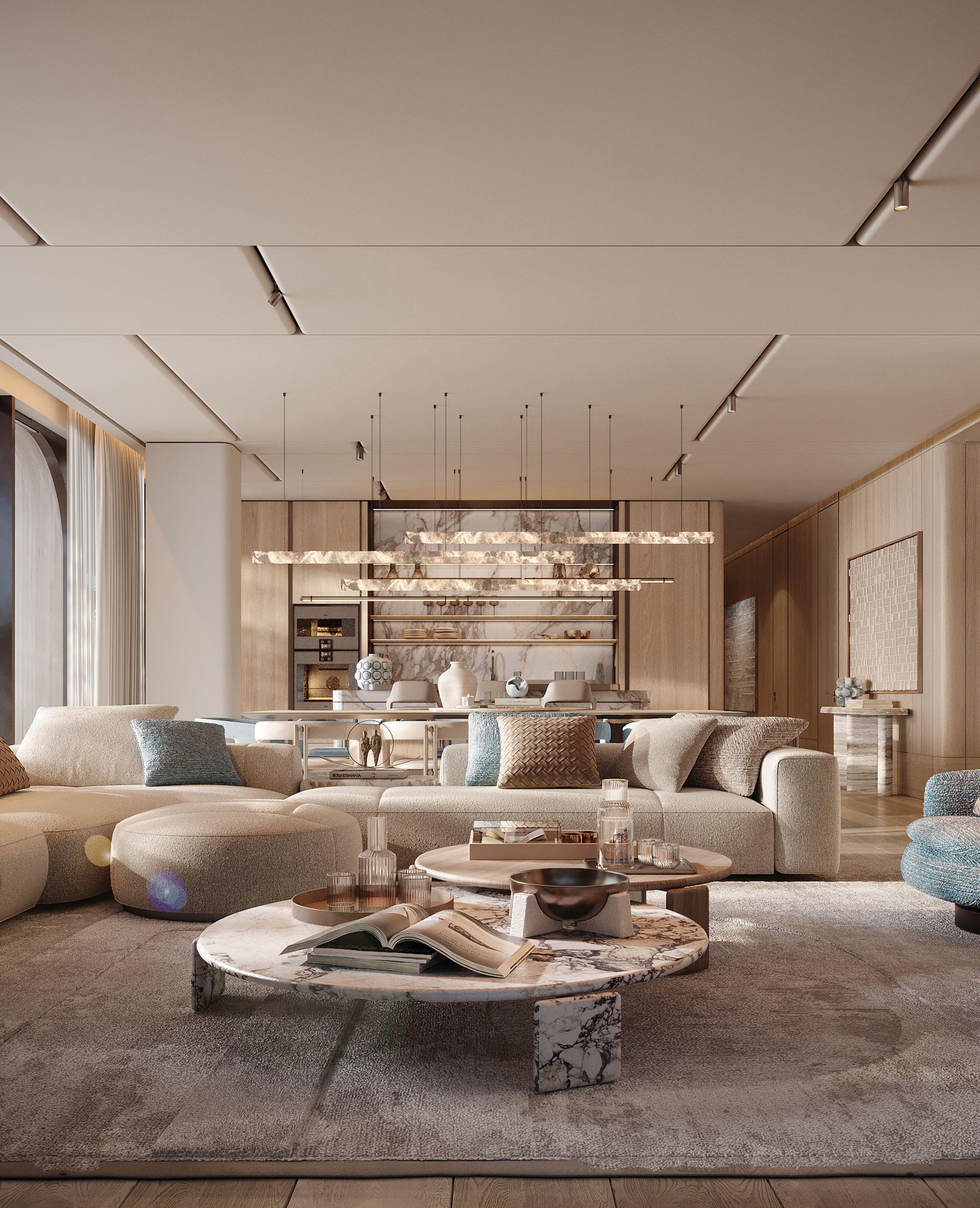 These expansive residences are defined by exceptionally large layouts, fluid architectural lines, and floor-to-ceiling glazing that frames uninterrupted views of the sea, skyline, and landscaped gardens. Generous private terraces extend the living space, while refined natural finishes and wellness-focused design create homes built for both lifestyle and longevity.