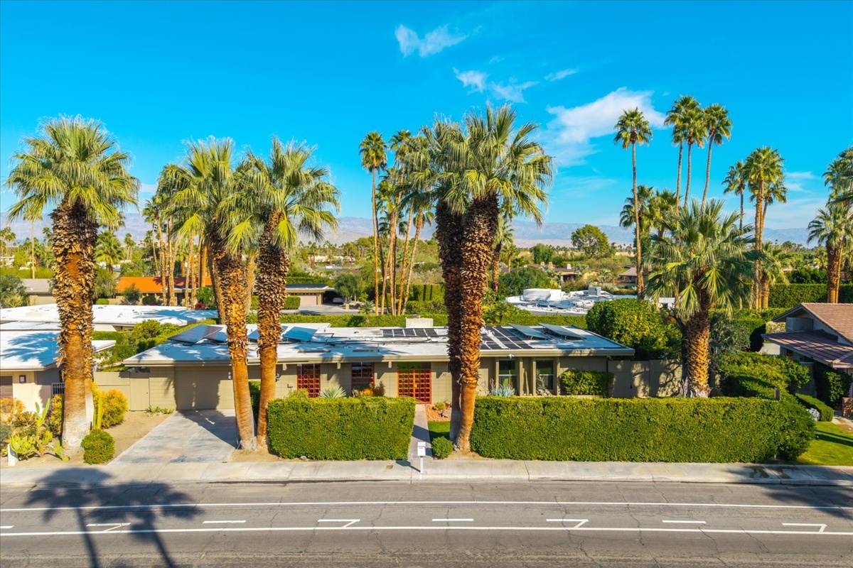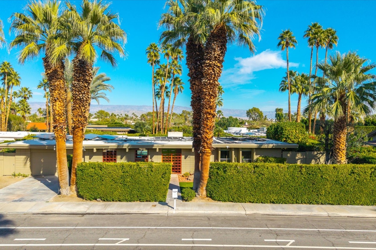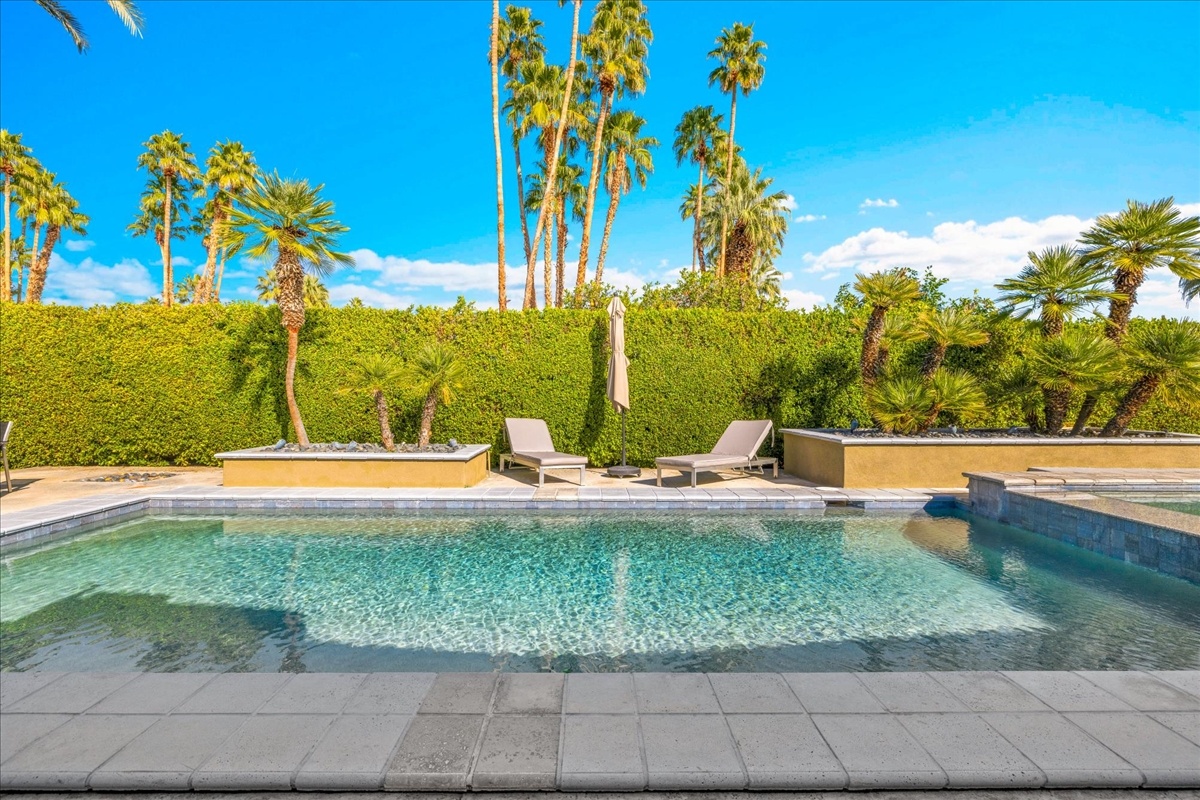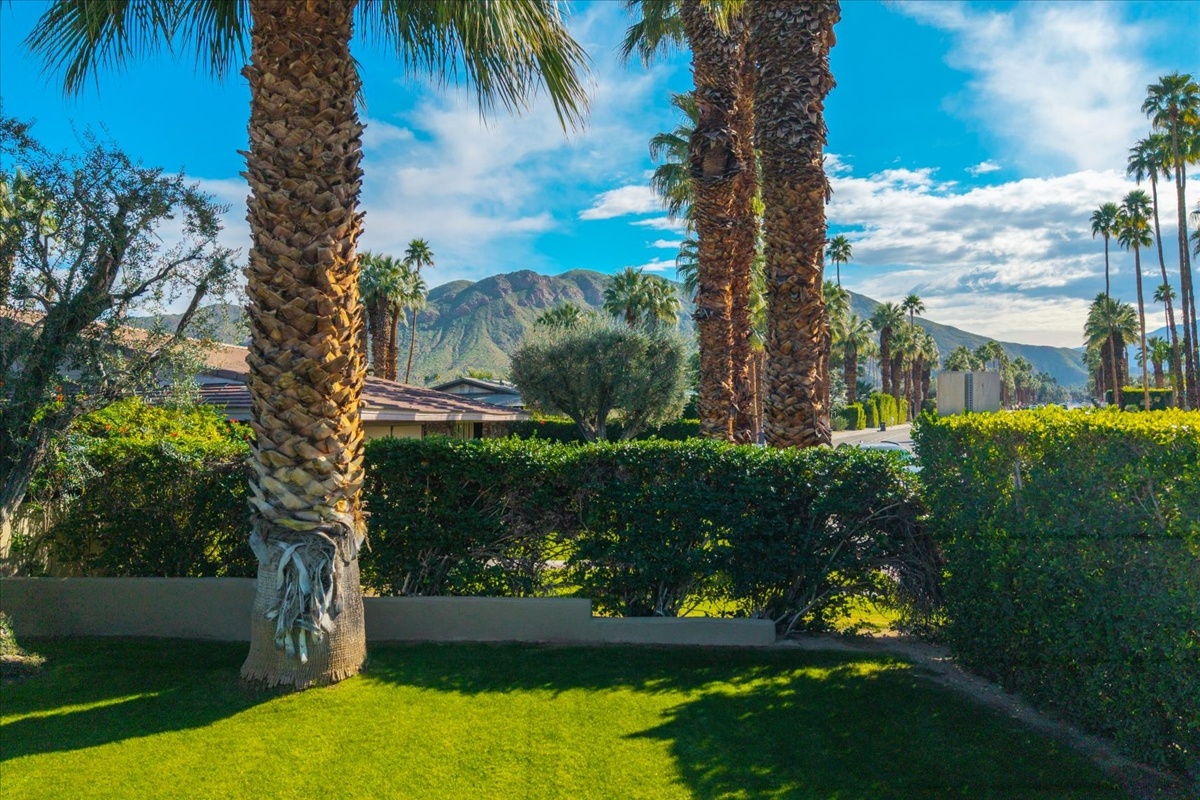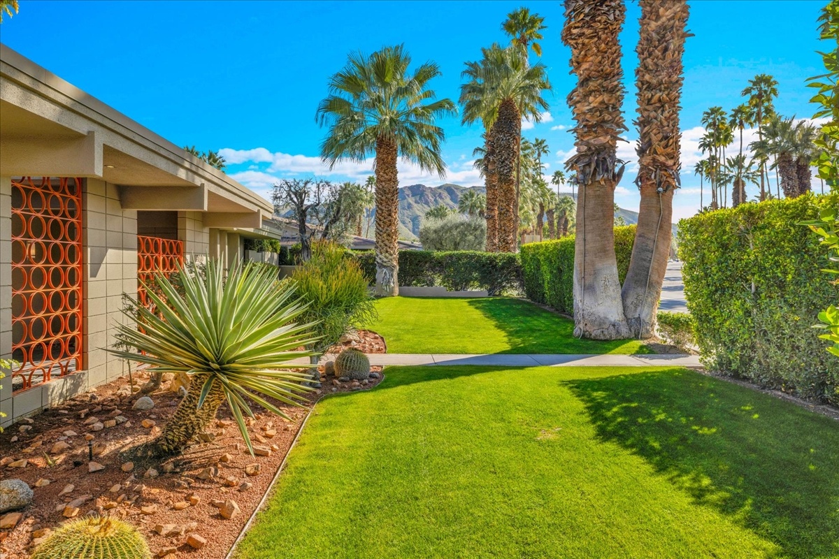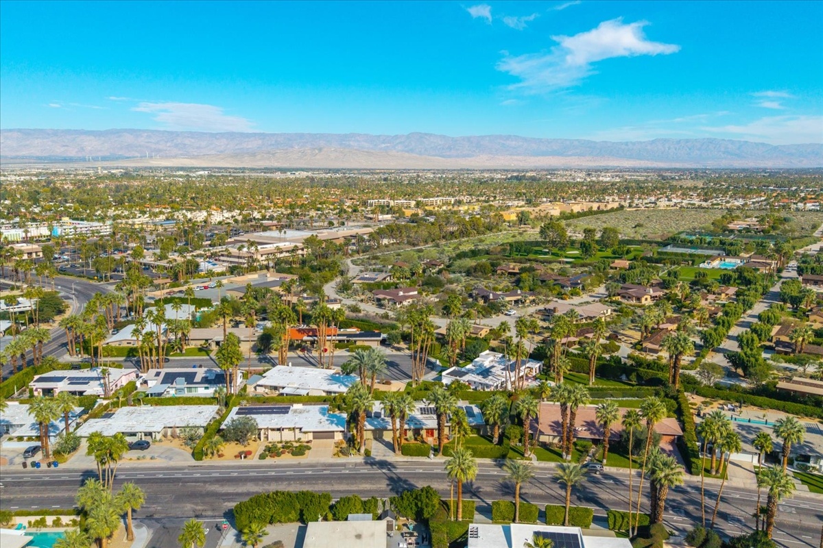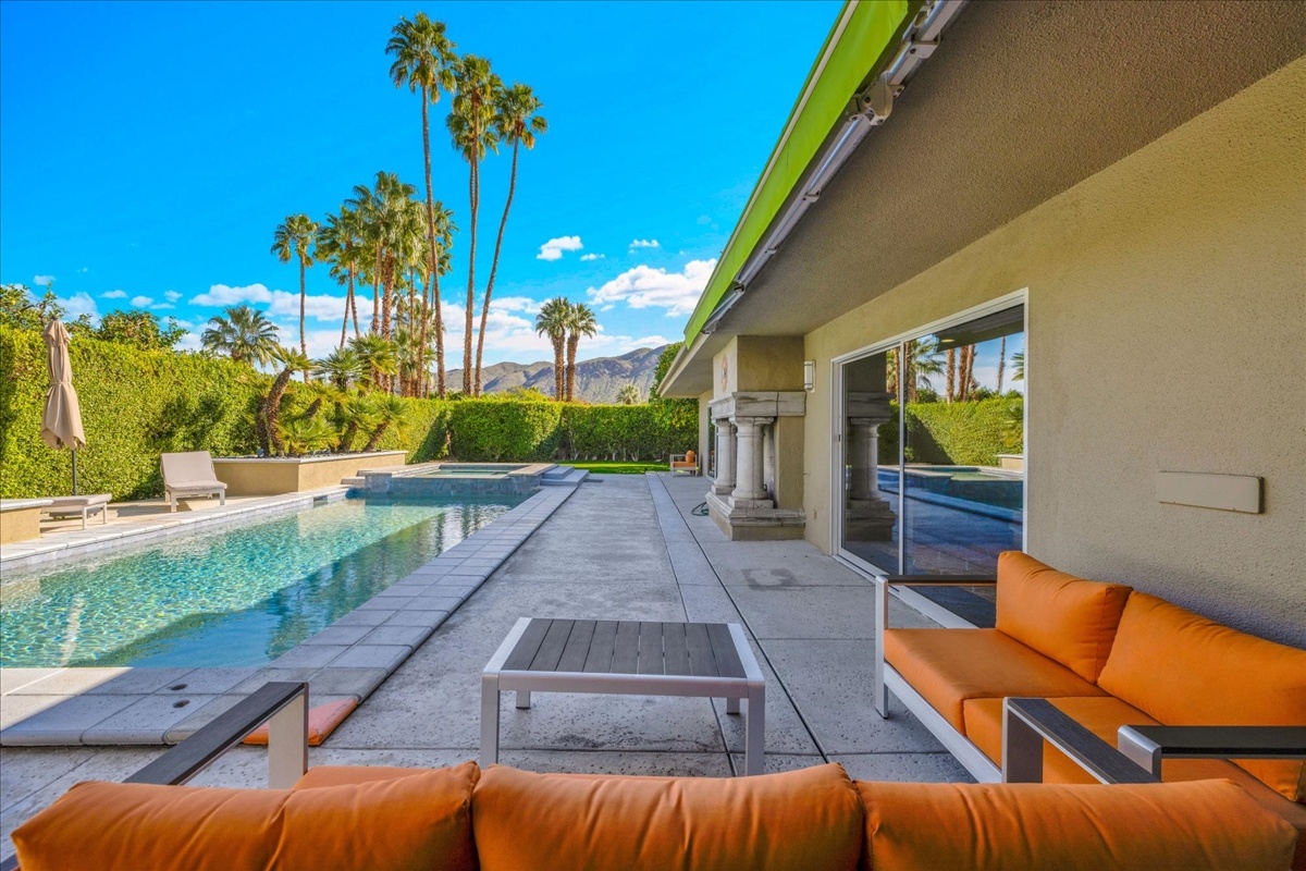 An authentic Mid-Century home invites you to embrace the lifestyle that only Palm Springs can offer. Set in the famous Indian Canyons neighborhood, this remodeled 4-bedroom, 3-bathroom residence sits on an oversized lot where you own the land and pay no HOA fees. Framed by breathtaking, unobstructed views of the San Jacinto Mountains, the backdrop feels straight out of a postcard. Designed for effortless desert living, the home blends iconic Mid-Century architecture with tasteful modern updates. The open-concept living and kitchen area is ideal for entertaining, where seamless indoor-outdoor living takes center stage. The newly remodeled chef's kitchen, featuring custom teak cabinetry, quartz countertops, stainless steel appliances, and a central island are perfect for morning coffee or sunset cocktails. Sleek flooring flows throughout, creating a cohesive and sophisticated aesthetic. Now with two primary suites that offers bright, inviting retreats, each with walk-in closets and direct access to the private yard. The vibrant renovated custom bathrooms make a statement with accent tiles, quartz vanities and backlit mirrors. Energy-efficient upgrades include paid solar panels, Fleetwood sliders, dual-pane windows, custom shades throughout, a Trane A/C , tankless water heater, and a new separate A/C system in the primary bedroom keeping comfort high and utility costs low. Step outside and let the sunshine bathe you in warmth as the sparkling pool and spa beckon. The private, serene yard is a true oasis, complete with fruit trees, multiple lounging areas, and the perfect setting for evening stargazing. Located in desirable South Palm Springs, away from the windy zone and in an active area, within walking distance to shops, dining, and hiking trails. This is the home you have been dreaming of.