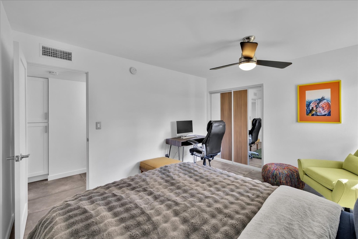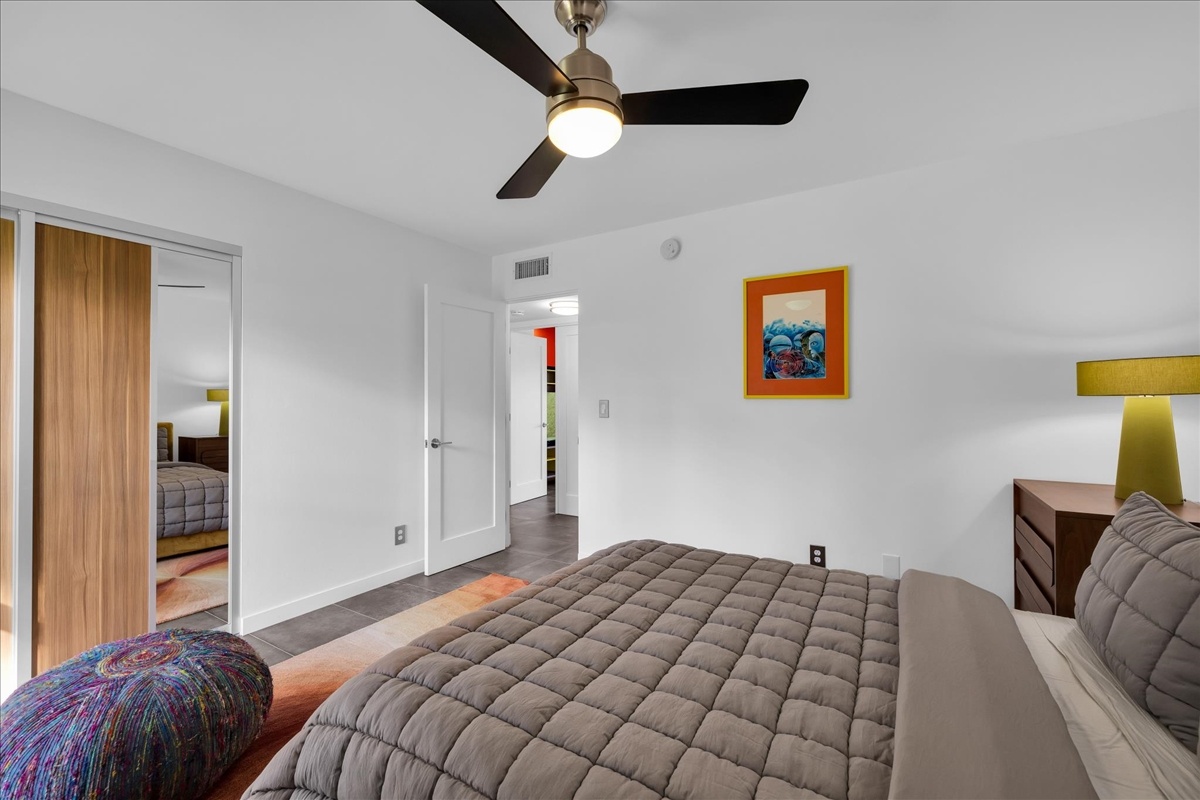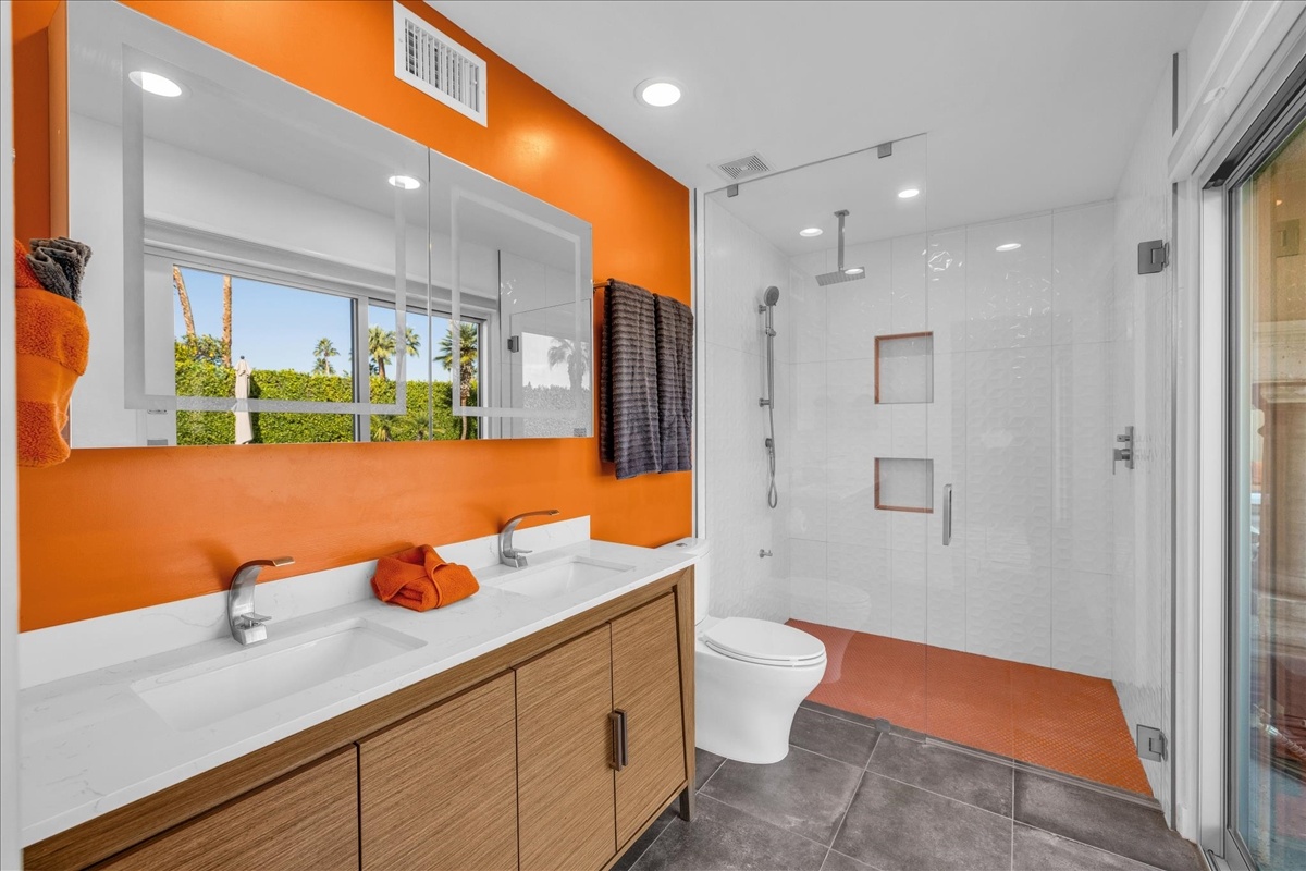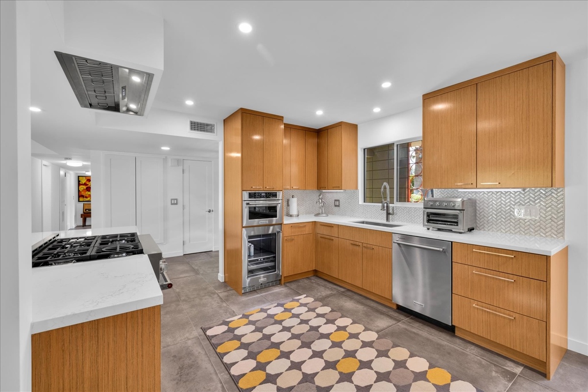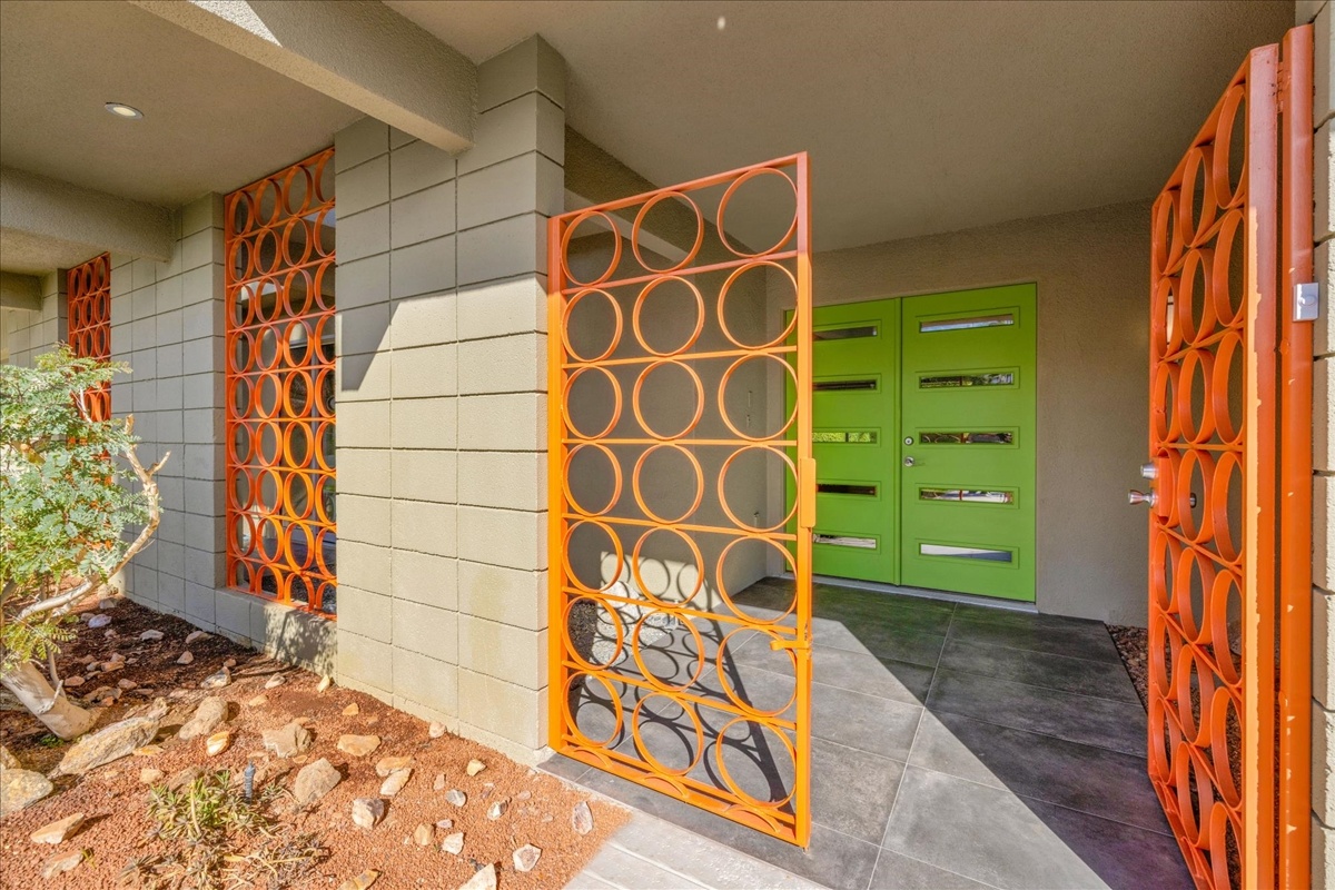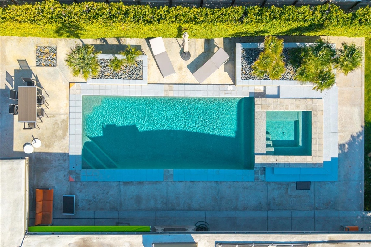 An authentic Mid-Century home invites you to embrace the lifestyle that only Palm Springs can offer. Set in the famous Indian Canyons neighborhood, this remodeled 4-bedroom, 3-bathroom residence sits on an oversized lot where you own the land and pay no HOA fees. Framed by breathtaking, unobstructed views of the San Jacinto Mountains, the backdrop feels straight out of a postcard. Designed for effortless desert living, the home blends iconic Mid-Century architecture with tasteful modern updates. The open-concept living and kitchen area is ideal for entertaining, where seamless indoor-outdoor living takes center stage. The newly remodeled chef's kitchen, featuring custom teak cabinetry, quartz countertops, stainless steel appliances, and a central island are perfect for morning coffee or sunset cocktails. Sleek flooring flows throughout, creating a cohesive and sophisticated aesthetic. Now with two primary suites that offers bright, inviting retreats, each with walk-in closets and direct access to the private yard. The vibrant renovated custom bathrooms make a statement with accent tiles, quartz vanities and backlit mirrors. Energy-efficient upgrades include paid solar panels, Fleetwood sliders, dual-pane windows, custom shades throughout, a Trane A/C , tankless water heater, and a new separate A/C system in the primary bedroom keeping comfort high and utility costs low. Step outside and let the sunshine bathe you in warmth as the sparkling pool and spa beckon. The private, serene yard is a true oasis, complete with fruit trees, multiple lounging areas, and the perfect setting for evening stargazing. Located in desirable South Palm Springs, away from the windy zone and in an active area, within walking distance to shops, dining, and hiking trails. This is the home you have been dreaming of.