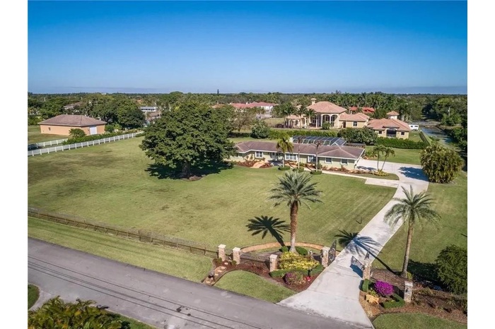 Ornate and opulent, this Pearle Lichi–inspired estate is a rare opportunity nestled on three manicured acres in Rolling Oaks. Offering 4,383 sq ft with 4 bedrooms, 3 full baths, and a 4-car garage, the home features decorative ceilings and custom details throughout, complemented by a warm, elegant color palette. A temperature-controlled walk-in wine cellar and a resort-style screened saltwater pool and spa create an ideal setting for entertaining. Additional highlights include a 45kW whole-house generator, smart home and security systems, hurricane protection, and solar water heating. Priced to allow for a complete remodel if desired, this estate offers limitless potential to create a personalized luxury retreat.