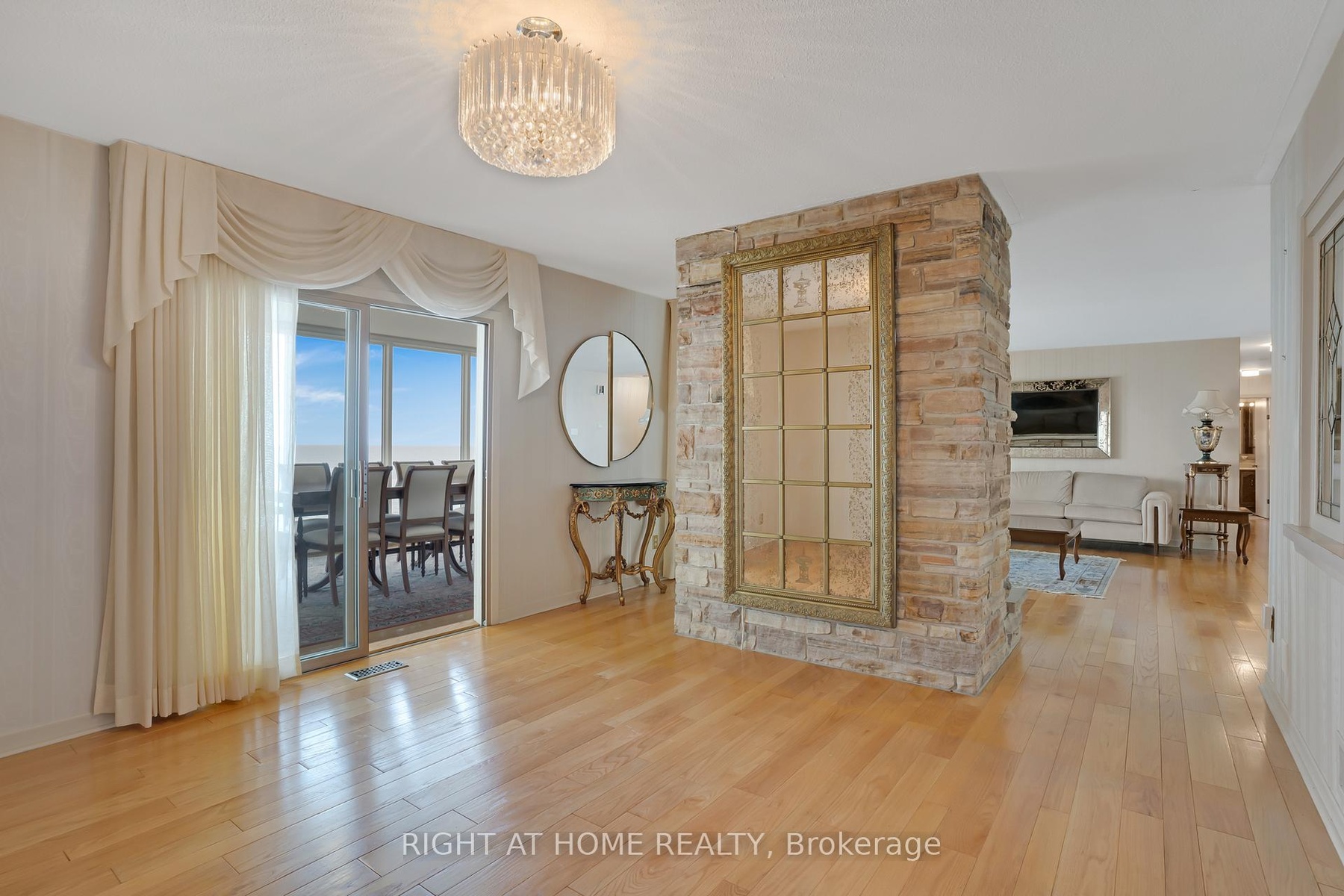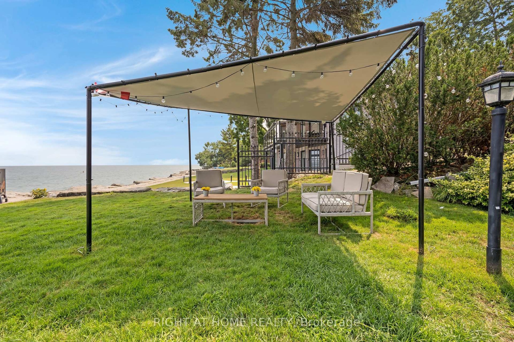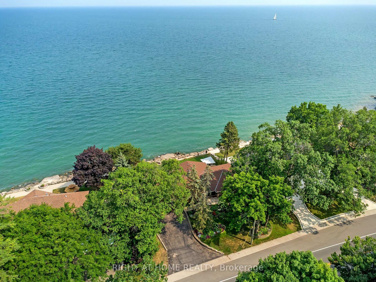 Welcome to an exceptional opportunity on Lakeshore Road, an extraordinary 100ft wide waterfront lot w/direct shoreline access and breathtaking views of Lake Ontario, including the Toronto city skyline. This fabulous raised bungalow w/a walk-out lower level offers over 2,200 sq ft on the main level and sits on a beautifully landscaped 100 x 135 lot. The property also includes modern architectural plans by David Small Designs, presenting a rare chance to renovate or rebuild your dream home on one of the few remaining wide-lot waterfront properties in the area. The home has been meticulously maintained and offers a spacious, light-filled layout. Floor-to-ceiling windows on both the main and lower levels capture sweeping, uninterrupted views of the lake, filling the home with natural light and bringing the outdoors in. The standout dining room addition is wrapped in glass, creating a truly immersive lakefront living experience. The main level features 3 bedrooms and 2 full bathrooms, along with a separate private office ideal for working from home. The primary bedroom retreat includes sliding doors that open to a private deck, where you can enjoy spectacular lake views morning to night. Rich hardwood flooring and elegant design elements add warmth and character throughout the home. The bright, walkout lower level offers even more living space, featuring a spacious recreation room, a games area, and a 3-pc bathroom. With large windows that echo the main floor's stunning views, the lower level feels just as open and connected to the surrounding landscape, making it perfect for entertaining, hosting guests, or creating a peaceful retreat. Outside, enjoy complete privacy and direct access to the waters edge, ideal spot to relax, watch the sunrise, or take in the city skyline across the lake. Located within walking distance to parks, schools, and shopping, this property offers a truly unique opportunity to live in one of the area's most coveted lakefront settings.