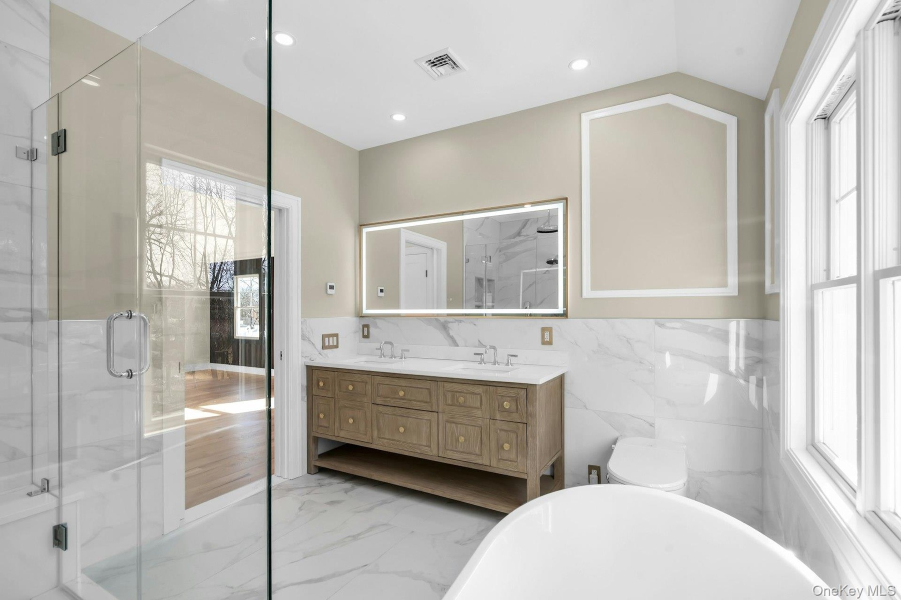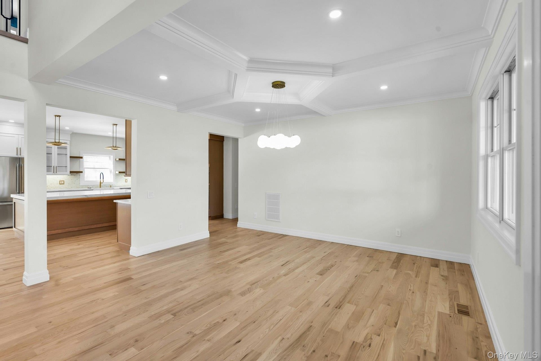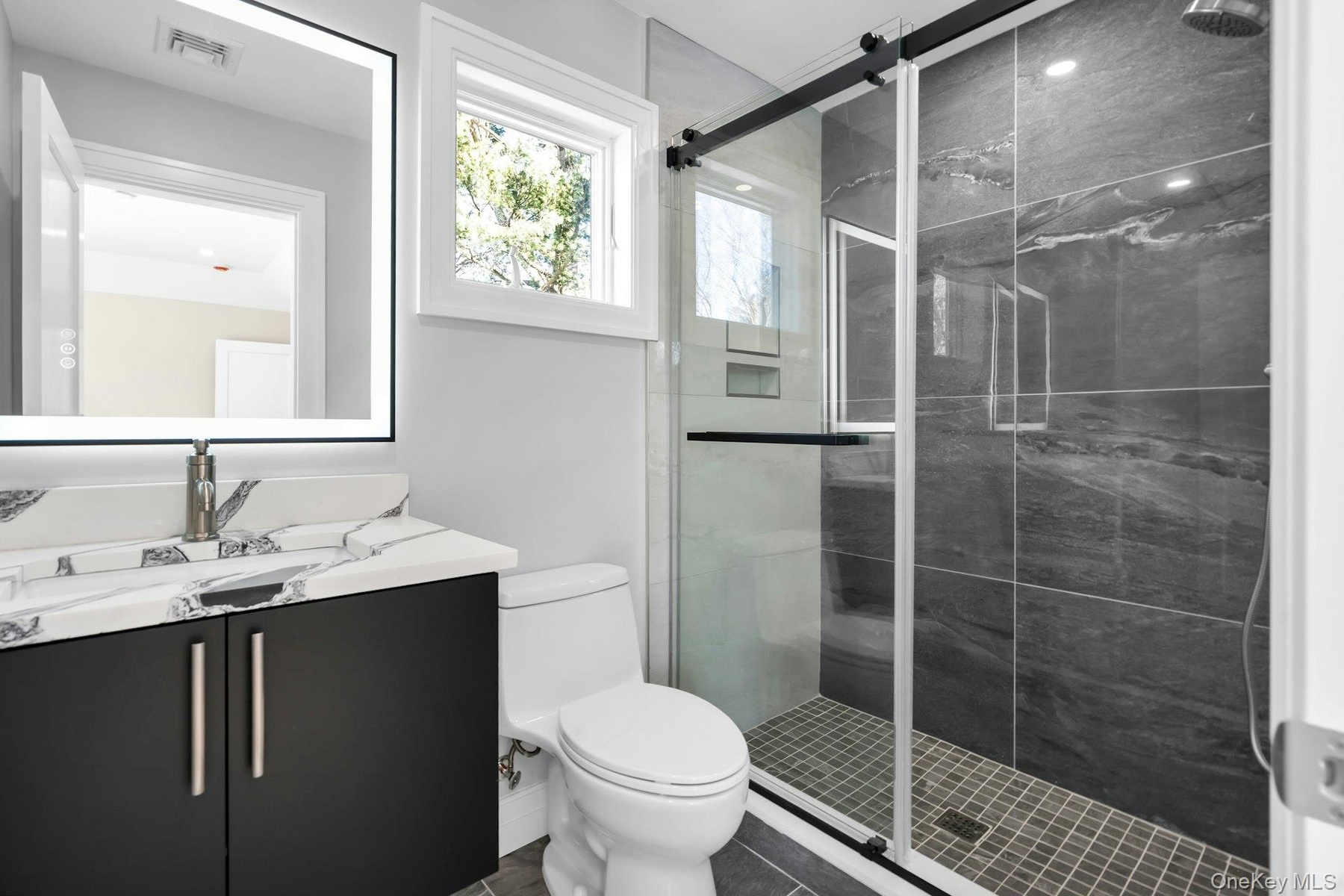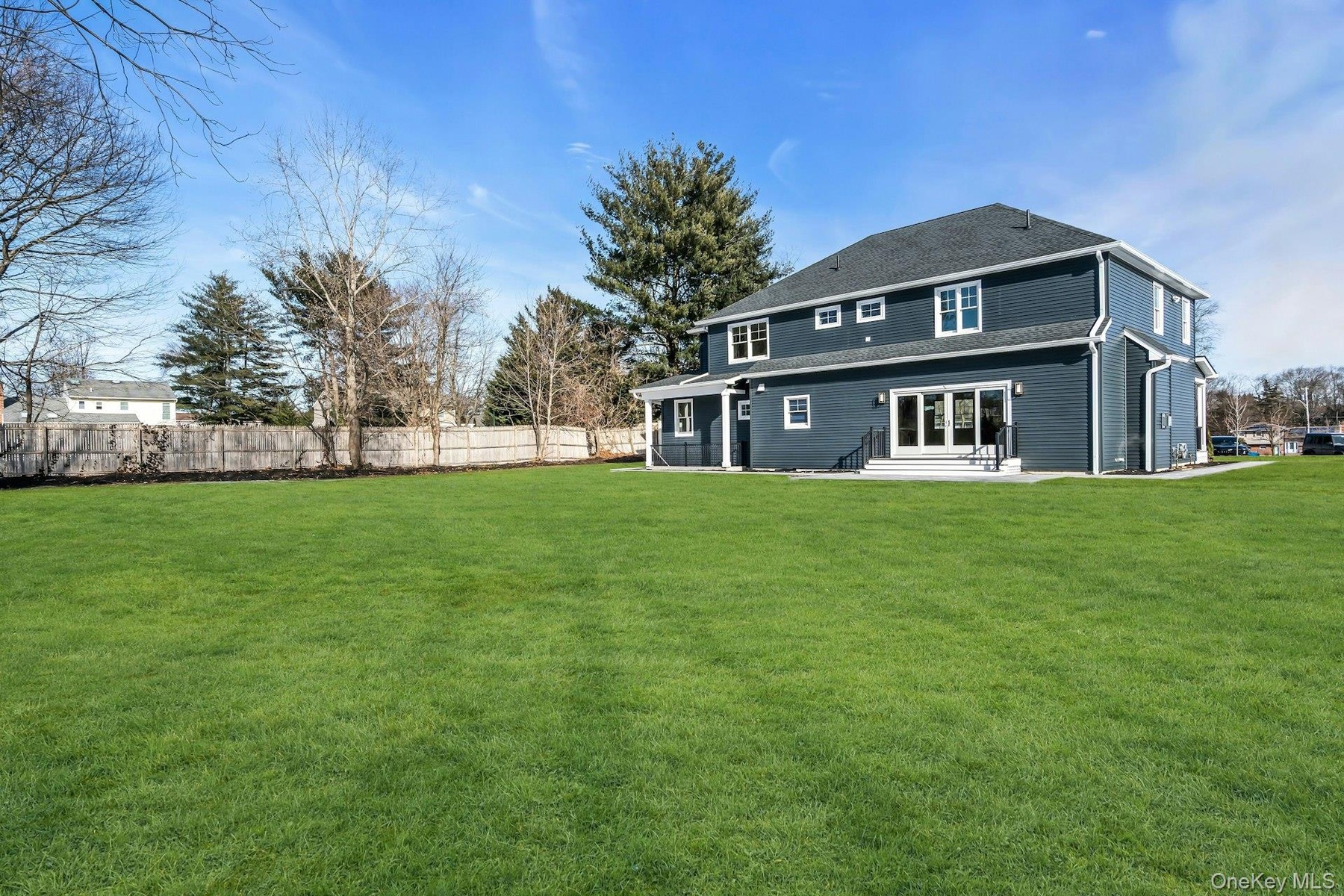 "Hamptons Modern Farm House” in Commack | Where Transitional Elegance Meets Contemporary Luxury... set on 1/2 acre perfectly flat and manicured. This custom-built house is a unique blend of architectural excellence and modern sophistication. Constructed with charcoal vinyl cedar impressions with Azek board & batten & cultured stone exterior with a combination of metal roofing details that add amazing design & curb appeal. This five bedroom 5 bath offers luxury living at its finest! Inside, dramatic design moments unfold—beginning from the entry porch with a custom white oak staircase with metal balusters that cascades from the upper level to the lower level. Wide-plank white oak floors throughout, extensive millwork, and imported tile and stone throughout set a tone of refined luxury. The chef’s kitchen is the heart of the home which sowcases a custom soft close cabinet with designer hardware anchored by a massive over-sized center island with custom Quartz counters & custom under-lit lighting | high-end Thermador appliances w/ designer fixtures | seamlessly connected to an oversized family room with gas fireplace and French doors leading outdoors. A formal dining room with custom designed coffered ceiling, and up lighting creates an elegant setting for entertaining, the living room is detailed with a custom paneled tray ceiling with up lighting that you can change color to set mood. Guest suite & bath is located privately on first floor. Second floor leads to large primary suite with custom acccent wall, tray ceiling with up lighting and color change feature w/ walk-in closet with custom closet kit. Primary bath features custom tile, over-sized shower and soaking tub, double custom oak vanity & radiant heated floors. Three additional bedrooms feature vaulted ceilings with two bedrooms having ensuite bathrooms and one additional hall bathroom, Over-sized laundry room w/ washer & gas dryer with custom tile, cabinetry w/ ironing & folding station. Two Car garage with epoxy floors and electric in place to wire an EV of your choice. Full un-finished basement with 9’ ceilings to finish w/outside entry to yard. Lower-level awaits your design plan to make your very own! Rear yard features a paver patio off French doors offering plenty of space to design our outside oasis! Front yard professionally landscaped with beautiful new sod & plantings awa well as sprinkler system. Mechanicals are state-of-the-art & energy efficient. MUST SEE!