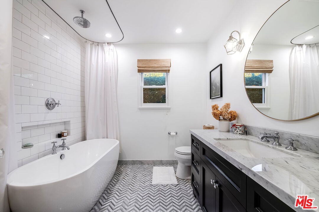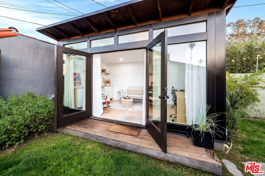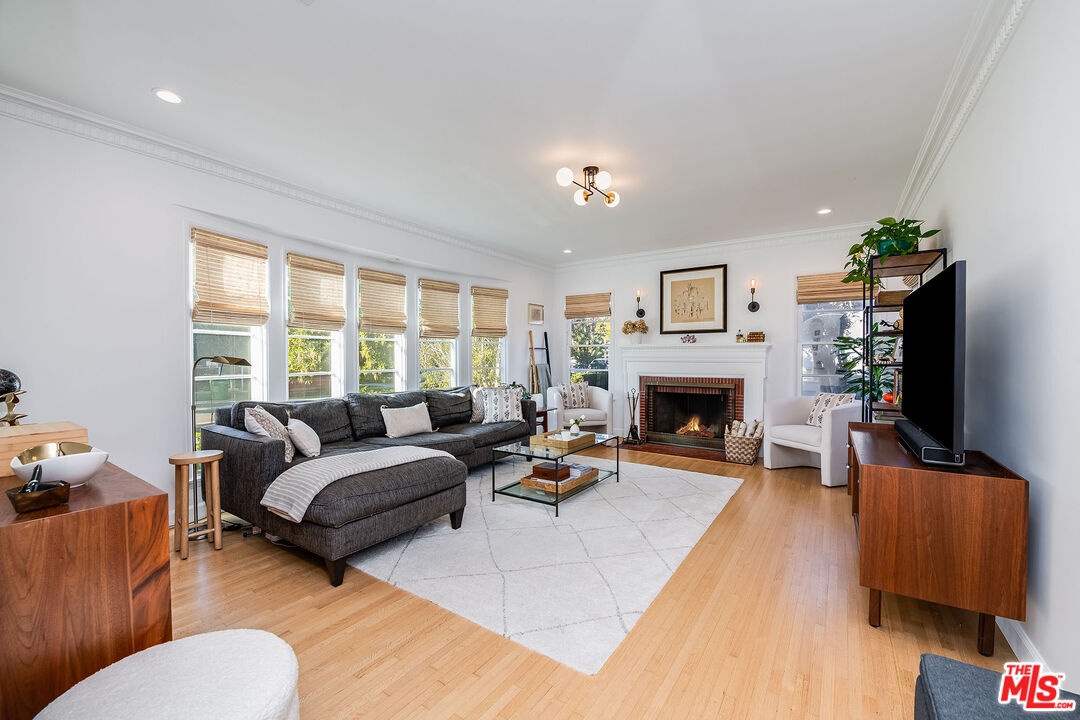 Welcome to this enchanting Crestview home, where classic charm meets modern convenience. Nestled on a peaceful, tree-lined street in Beverlywood's desirable Crestview area, this 2-bedroom, 2-bath residence has been fully remodeled to blend timeless elegance with contemporary amenities.As you step inside, you're greeted by large, sunlit rooms adorned with real plaster crown molding, coved ceilings, and elegant arched doorways, creating a harmonious blend of classic design and modern comfort. The inviting living room features a cozy wood burning fireplace with its original mantle, adding warmth and character to the space.The beautifully updated Kitchen features Quartz countertops and marble backsplash, Stainless Steel appliances and a lovely Breakfast nook for your casual mornings or afternoon teas with a relaxing view of the generous backyard.The spacious primary suite is a true sanctuary, complete with a luxurious en-suite bath and a generous walk-in closet. The second bedroom is equally spacious and versatile, perfect for family or guests.Beyond the main living areas, the property also features a delightful backyard retreat. Enjoy a large Al Fresco dining area, a cozy fire pit, and an elevated deck area extending your living space outdoors, creating a relaxed vibe to enjoy California's beautiful weather.Additionally, the home includes a dedicated laundry area, a finished two-car garage with floor to ceiling built-in Storage and work bench cabinets in addition to a permitted detached bonus room of approximately 160 square feet, ideal for a home office, gym, or guest suite.Situated in the vibrant Crestview neighborhood, this home offers convenient access to houses of worship, Culver City, Beverly Hills, and major freeways leading to DTLA and LAX. This is a rare opportunity to own a home that beautifully marries classic charm with contemporary living.