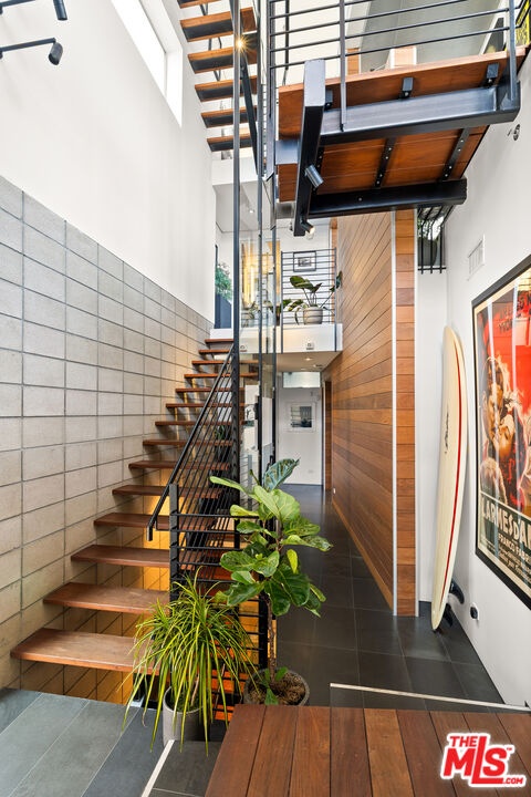 Ocean views abound from this architectural statement in the heart of Venice, just moments to the beach and Abbot Kinney. Designed by renowned architect Bill Adams, FAIA, this three-level residence pairs striking modern lines with a warm, livable layout made for true indoor-outdoor California living. The sun-drenched main level features soaring ceilings, oversized windows, and dramatic walls of glass that slide open to a wraparound deck perfect for sunset cocktails, coastal breezes, and effortless entertaining around a sleek gas fireplace, with an outdoor fire pit just beyond. The chef's kitchen anchors the space with a generous center island and a picture-window sink framing mountain views, while a versatile loft above offers an ideal home office, creative studio, or den.On the bedroom level, three en-suite retreats and a dedicated laundry area provide comfort and privacy, including a serene primary suite with a spacious dressing area/closet and a luxurious soaking tub. The lower level delivers a fabulous media room or flex space opening to a private patio, plus direct entry to a two-car garage. Play on the sand by day, then take in Venice's golden-hour glow from your ocean-view rooftop deck an exceptional modern beach home with every luxury, in one of LA's most iconic neighborhoods.
