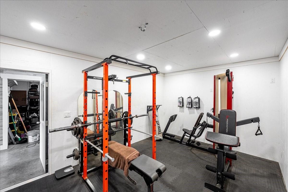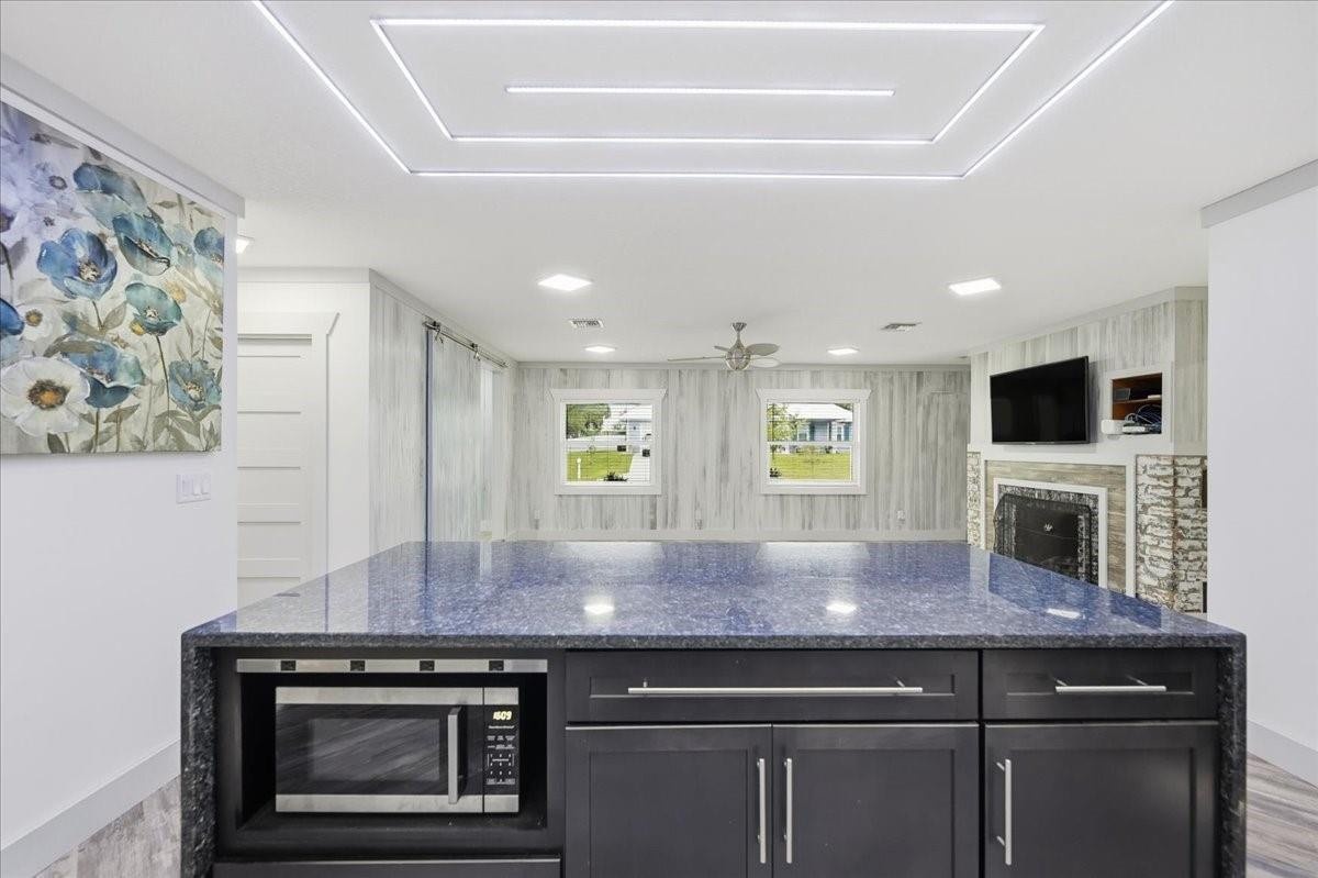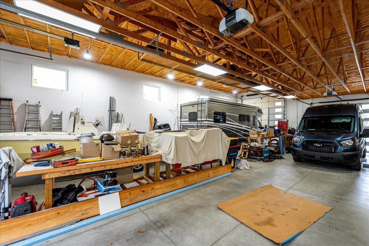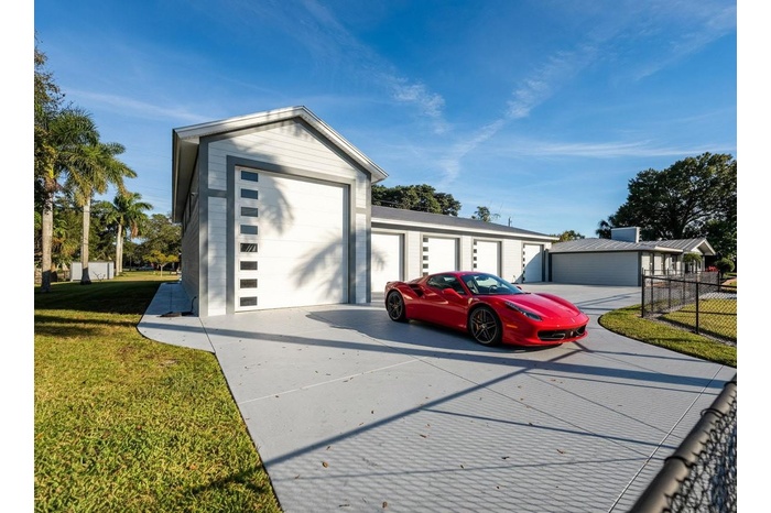 Welcome to this 1-acre estate featuring a remodeled 3,534 sq ft home paired with over a 5,000 sq ft, 10-car garage with four drive-through bays, impact doors, and concrete construction by one of the area’s premier builders. The home offers new flooring, granite counter tops with stainless appliances and gas stove, impact windows, fiberglass doors, gas fireplace, LED lighting, 16-camera security system, an air-conditioned gym, and in-law suite. The fully fenced yard includes a tree fort, two 20' automatic gates and a 20' roll gate, along with a covered back porch featuring roll-down shutters and a fan. Designed for both comfortable living and serious workspace needs, this property provides exceptional garage capacity, storage, and upgraded living spaces rarely found in this market.