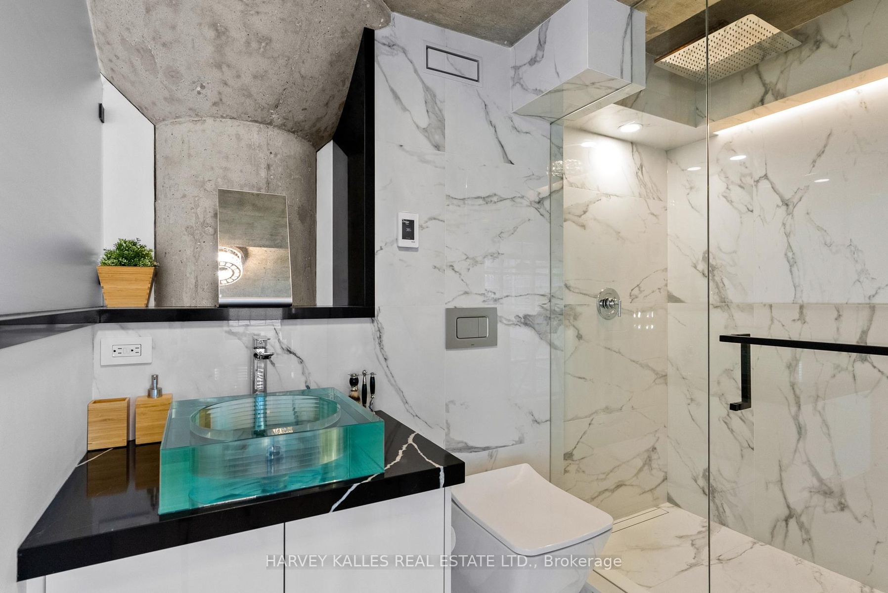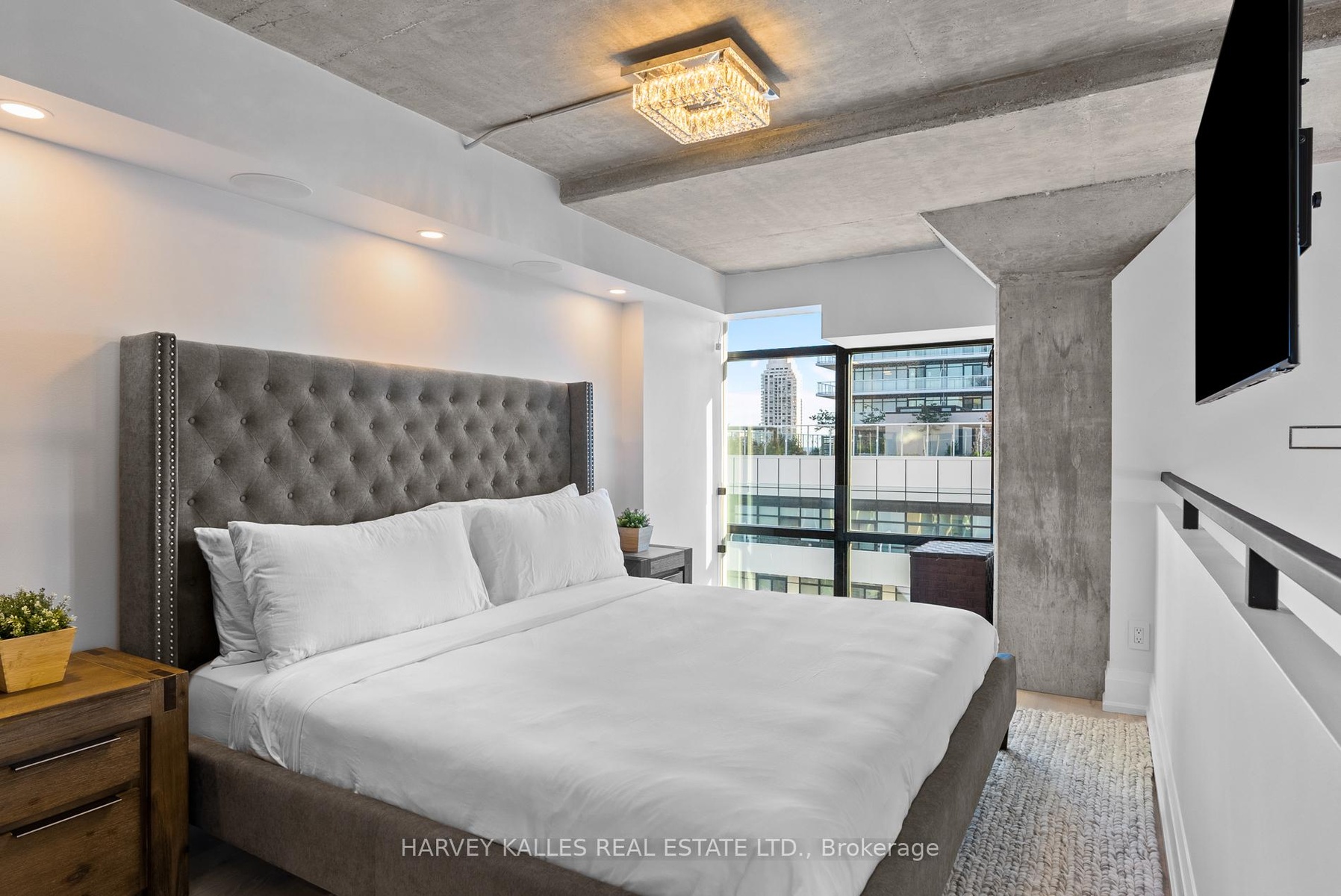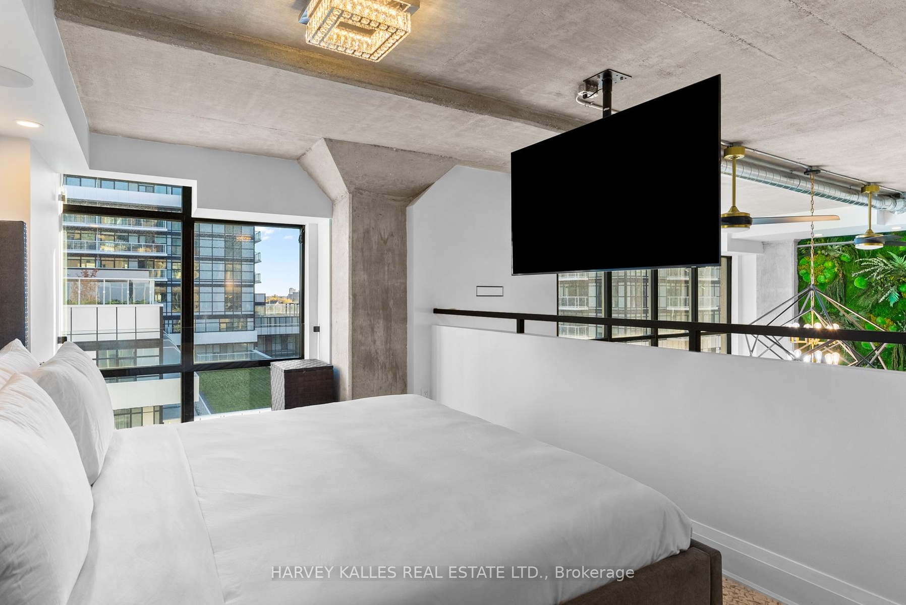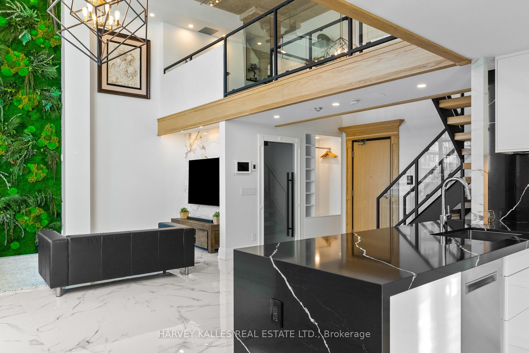 Experience Luxurious Urban Living in this furnished and fully renovated 1,204 square foot, 2 Bedroom, 2 Bath hard loft with 2 parking and 2 Lockers. Meticulously redesigned and equipped with high end upgrades including heated marble floors, and designer bathrooms. Breathtaking from the entrance, soaring 18 ft ceilings and a wall of windows pour an abundance of south-facing natural light into this loft.. A one-of-kind purifying garden wall spans the height of 2-storeys joined with exposed concrete ceilings and grand posts. Built with thick concrete walls, additional soundproofing, top-of-the-line Hunter Douglas Automatic Smart Shades, and remarkable SONOS speakers throughout, combined with a smart home automation system. Have Full control of your environment with an individual in-suite furnace. The Warehouse Lofts building is beautifully positioned in a calm family & pet-friendly community, yet moments from all the city has to offer. Conveniently located just off the Gardiner Expressway, enter your gated residence and take a walk to the Humber Bay Shores renewed park, lakeshore strip of restaurants, marinas & yacht clubs, and various locally authentic & big-name shops. Perfectly positioned 15 minutes from bustling Downtown Toronto and both Toronto Airports. School Bus routes & Go-Station walking distance. Private manicured rooftop park & Party Room.