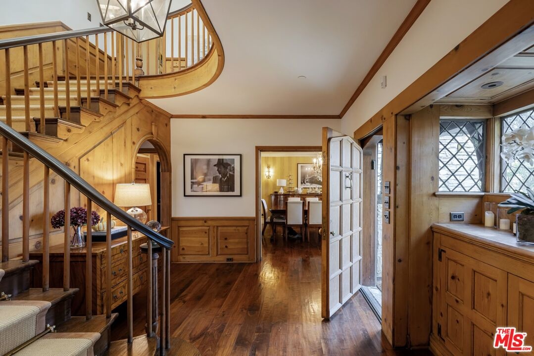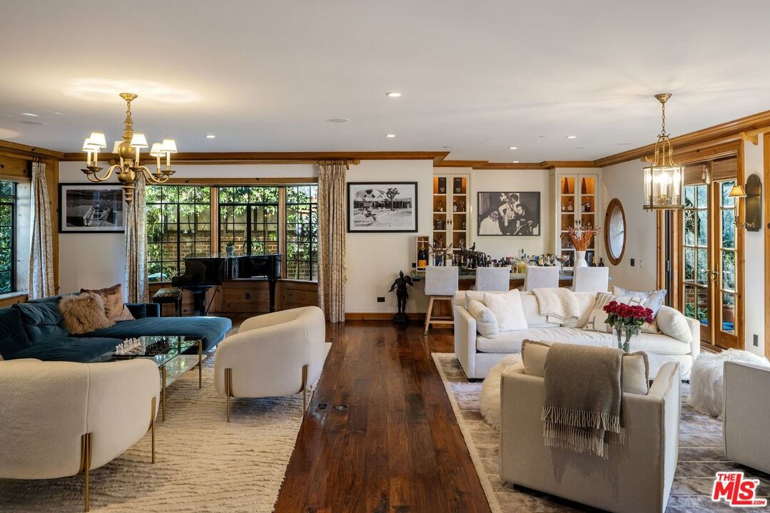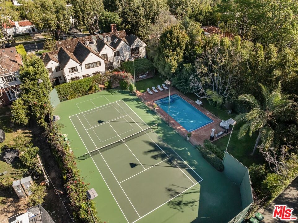 Extremely handsome, much-admired Gerard Colcord style 1930s English on a gorgeous 24,090 square foot lot (per plat map) in the highly desirable "700" block of picturesque, tree-lined Alpine Drive. Framed by towering trees on the sunny, west side of the street this timeless estate affords a true country lifestyle, yet is close to the Beverly Hills Hotel and world class shops and restaurants. Classic architecture, wonderful charm and beautiful traditional detailing can be found throughout, including hardwood floors, crown mouldings, extensive warm wood paneling, clipped ceilings and leaded glass windows. Formal entry with gorgeous wood staircase leads to generous living room with fireplace, bar and French doors, an inviting formal dining room with bay window, and very special paneled library/den with built-ins and original stone fireplace. Fabulous sun-filled kitchen, breakfast area and family area opens through French doors to trellis-covered patio, pool, spa, grassy yard and lighted tennis court. Five bedrooms upstairs including a wonderful primary suite with sitting area, fireplace, dual closets and lavish bath. Available for the first time in nearly 40 years and situated in the "best of the best" flats location, this gracious "taste of old Beverly Hills" on a magnificent lot, will envelop you in warmth and charm from the moment you arrive. NOTE: Property is Tenant occupied until October 31, 2026.