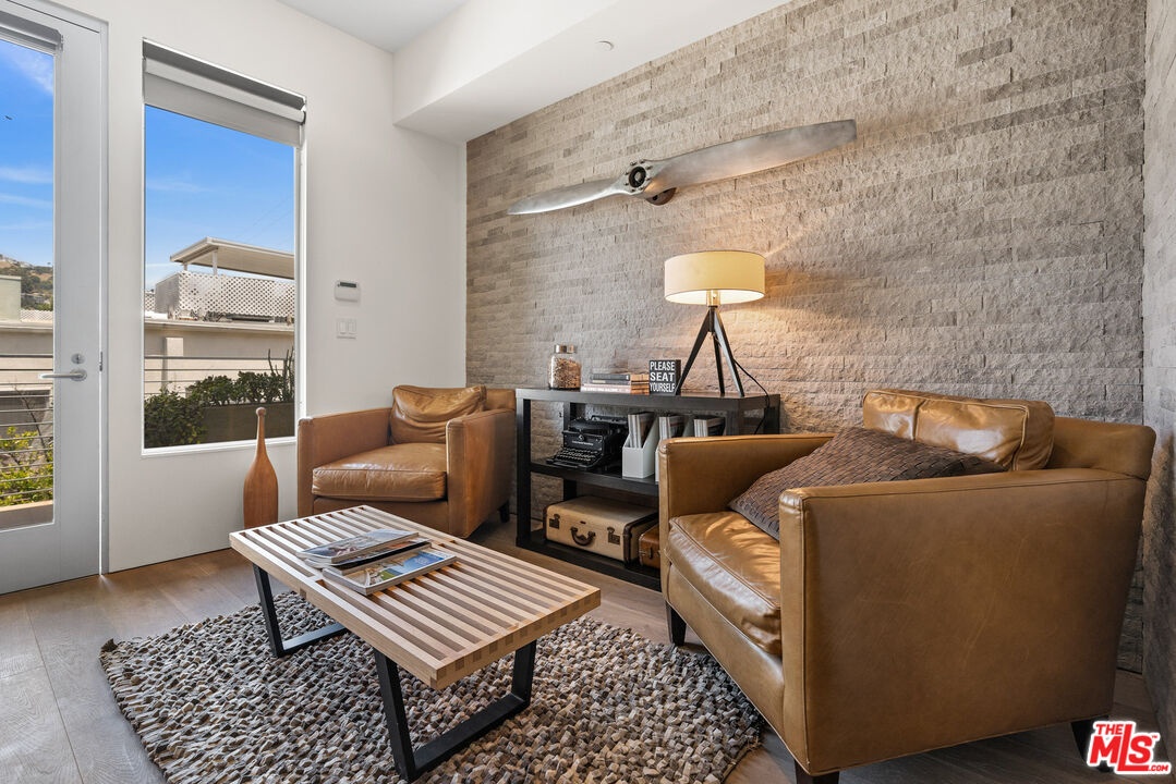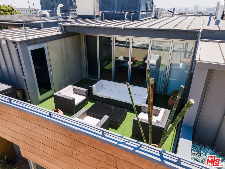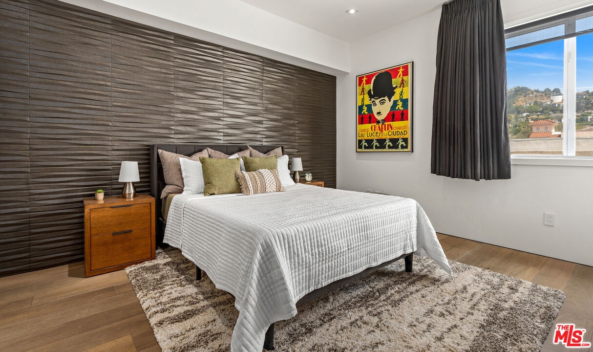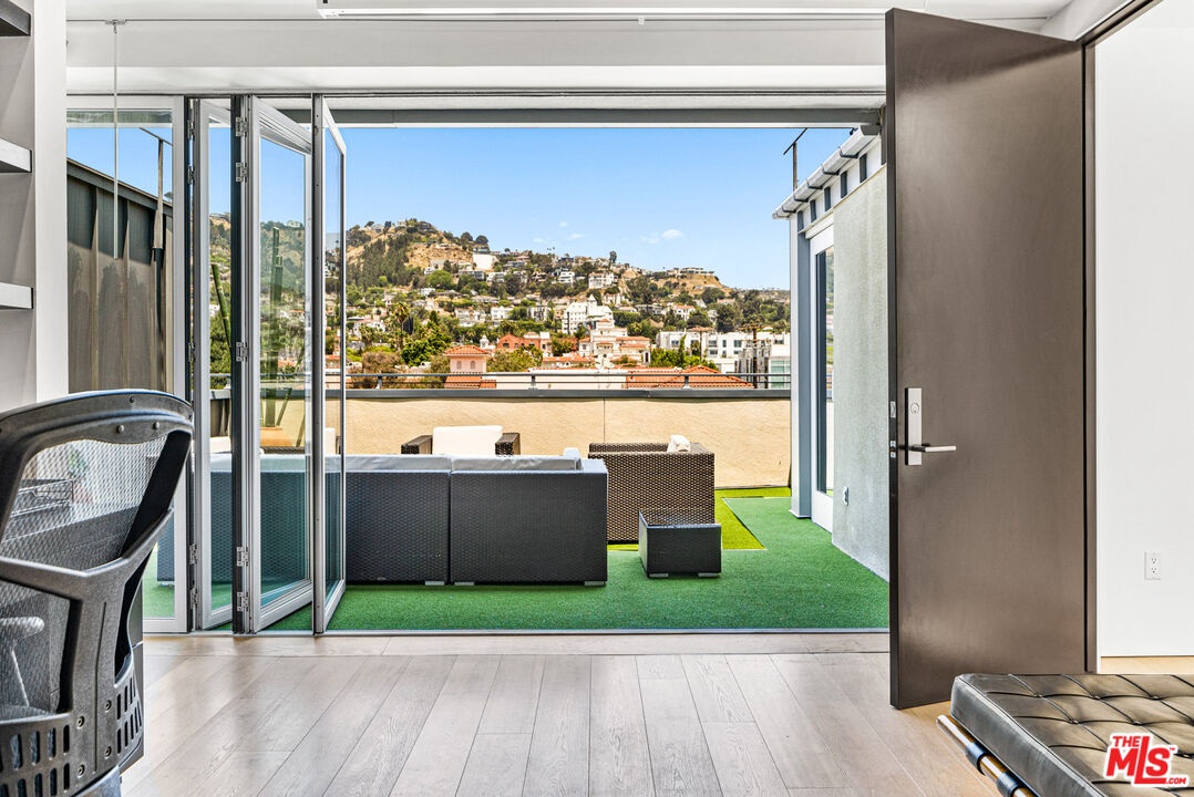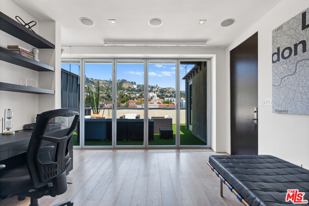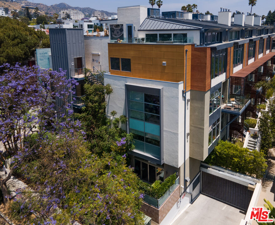 Video tour available of this furnished rental. This furnished, turn-key penthouse is set in one of West Hollywood's most coveted locations, offering a refined blend of privacy, natural light, and elevated design. South-facing and drenched in sunlight, the expansive living room showcases soaring vaulted ceilings and an open layout ideal for entertaining. The 2-bedroom, 2-bath residence spans approximately 1,800 square feet and is thoughtfully curated with high-end finishes, beautiful lighting, and designer details throughout. The first-floor bedroom features a large walk-in closet and a spa-like en-suite with soaking tub, separate shower, and double vanity, while a discreet hallway pantry provides exceptional hidden storage. Floor-to-ceiling windows in the living area frame sweeping city views and are fitted with custom shades for privacy. The designer kitchen anchors the space with a large island seating four, stainless steel appliances, abundant cabinetry, and comes fully equipped with plates, silverware, and everyday essentials. Upstairs, the private primary retreat offers generous closet space, an en-suite bath, and a built-in desk. The true showstoppers, however, are the in-home movie projector and the private rooftop deck complete with folding floor-to-ceiling glass doors that create seamless indoor-outdoor living. Entertain on the private rooftop while enjoying breathtaking Hollywood Hills views from sunrise to sunset and into the city lights. Additional features in this pet friendly retreat include a private laundry room, side-by-side underground gated parking/EV charger, and a secure building with coded elevator access.