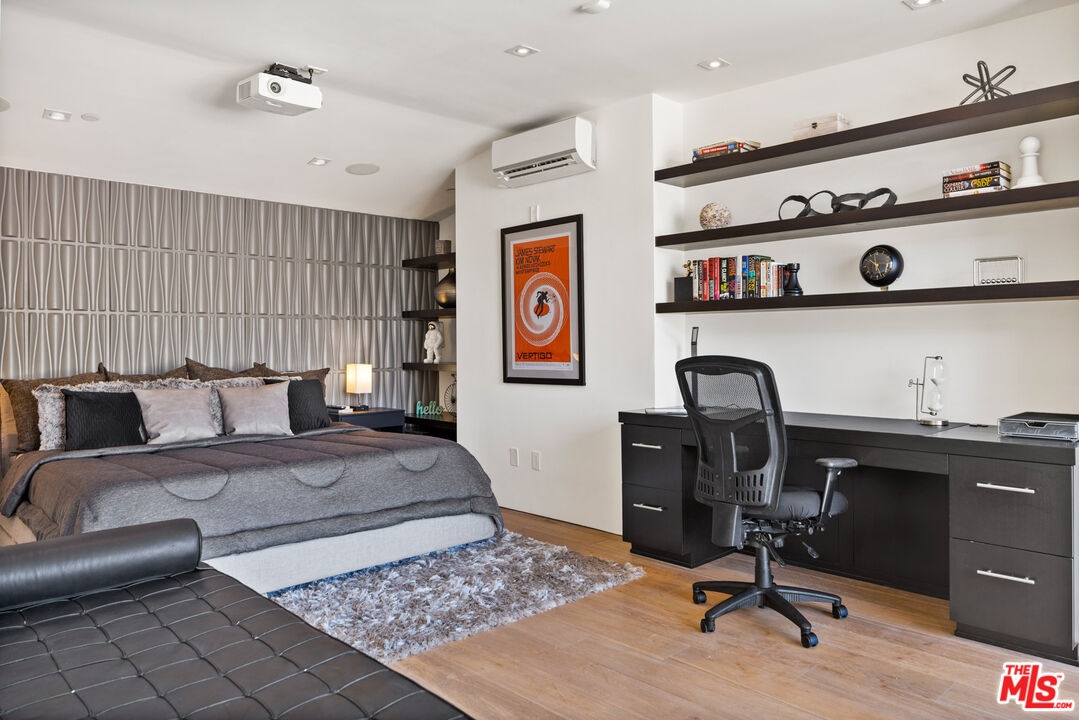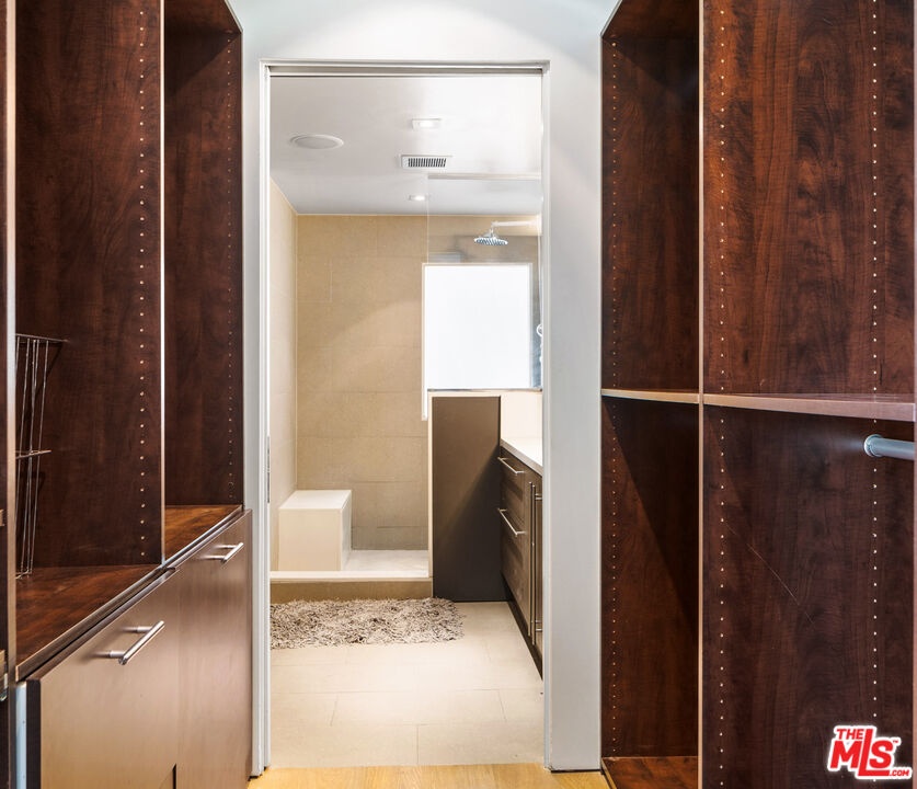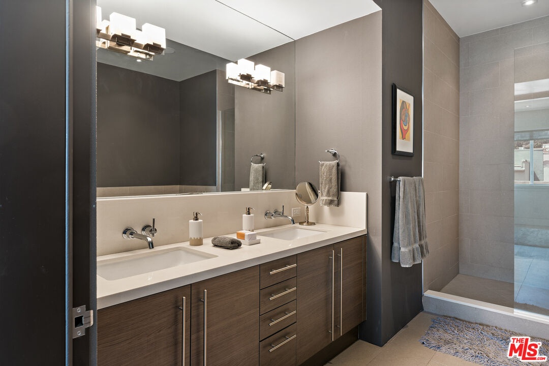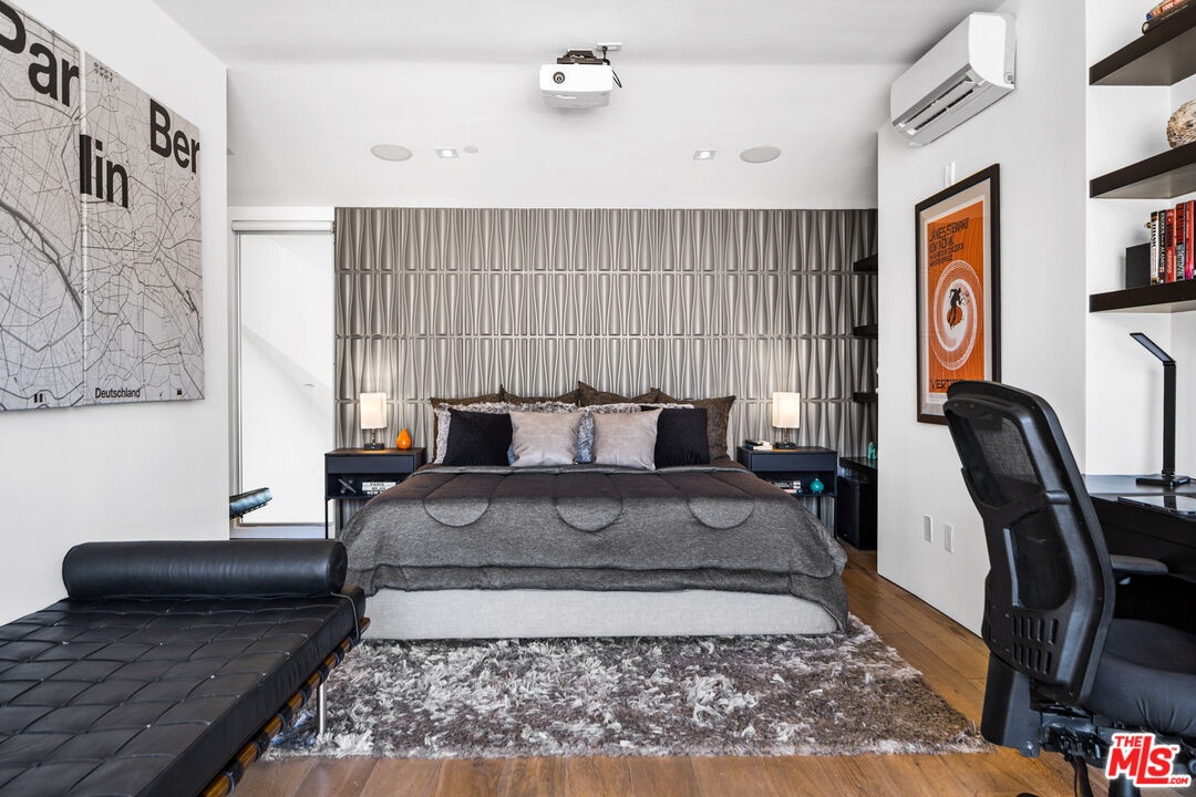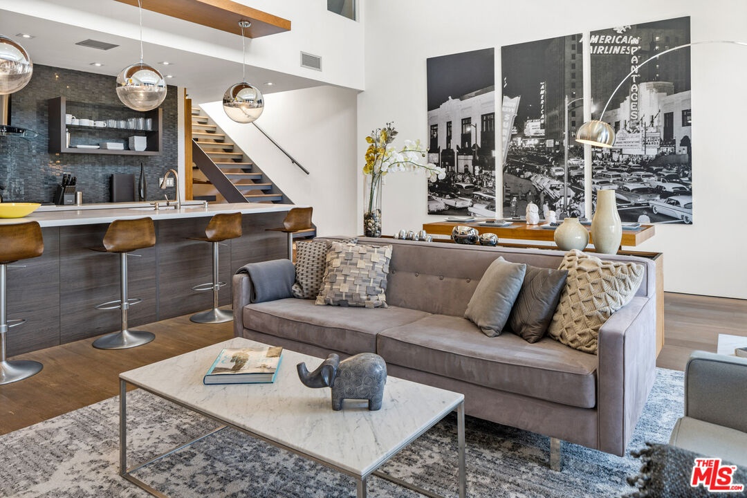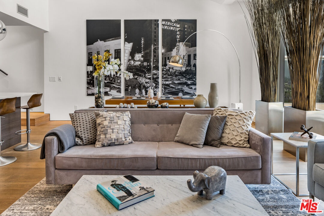 Video tour available of this furnished rental. This furnished, turn-key penthouse is set in one of West Hollywood's most coveted locations, offering a refined blend of privacy, natural light, and elevated design. South-facing and drenched in sunlight, the expansive living room showcases soaring vaulted ceilings and an open layout ideal for entertaining. The 2-bedroom, 2-bath residence spans approximately 1,800 square feet and is thoughtfully curated with high-end finishes, beautiful lighting, and designer details throughout. The first-floor bedroom features a large walk-in closet and a spa-like en-suite with soaking tub, separate shower, and double vanity, while a discreet hallway pantry provides exceptional hidden storage. Floor-to-ceiling windows in the living area frame sweeping city views and are fitted with custom shades for privacy. The designer kitchen anchors the space with a large island seating four, stainless steel appliances, abundant cabinetry, and comes fully equipped with plates, silverware, and everyday essentials. Upstairs, the private primary retreat offers generous closet space, an en-suite bath, and a built-in desk. The true showstoppers, however, are the in-home movie projector and the private rooftop deck complete with folding floor-to-ceiling glass doors that create seamless indoor-outdoor living. Entertain on the private rooftop while enjoying breathtaking Hollywood Hills views from sunrise to sunset and into the city lights. Additional features in this pet friendly retreat include a private laundry room, side-by-side underground gated parking/EV charger, and a secure building with coded elevator access.
