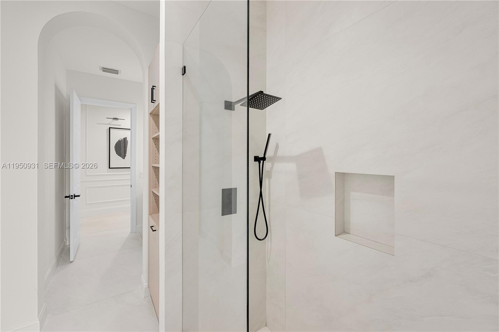 Positioned within an exclusive gated enclave of 17 custom estate homes, this property stands apart from today's production-built communities, offering true individuality, scale, and privacy. Nestled within mature trees, this corner lakefront masterpiece offers 5 bedrooms + 5 bathrooms, upstairs loft, & features a rare and highly coveted FOUR CAR GARAGE. The interior has been thoughtfully reimagined with a design reminiscent of Architectural Digest. 48x48 porcelain flooring flows seamlessly throughout, complemented by smooth walls and ceilings achieving a modernized clean interior finish. Curated accent walls, refined built ins, and layered textures throughout the home create a calm yet striking aesthetic. The primary ensuite will be the moment you fall in love. Fully remodeled spa inspired with infrared porcelain tub, glass enclosed steam shower, & custom hardware. Just beyond, a boutique dressing room with floor to ceiling LED lighting showcasing designer curated cabinetry, transforming daily routine into an elevated experience. Stunning lake views from nearly every angle complement the oversized pool on nearly 3/4 acres, while a fully remodeled cabana bath enhances indoor outdoor living. On property; Central Vacuum/Gererac Home Generator. Walking distance to equestrian parks, running trails, A rated schools, cafes, with convenient access to major highways. Country serenity and understated elegance blend into a lifestyle of privacy, beauty, and calm within In the Pines.