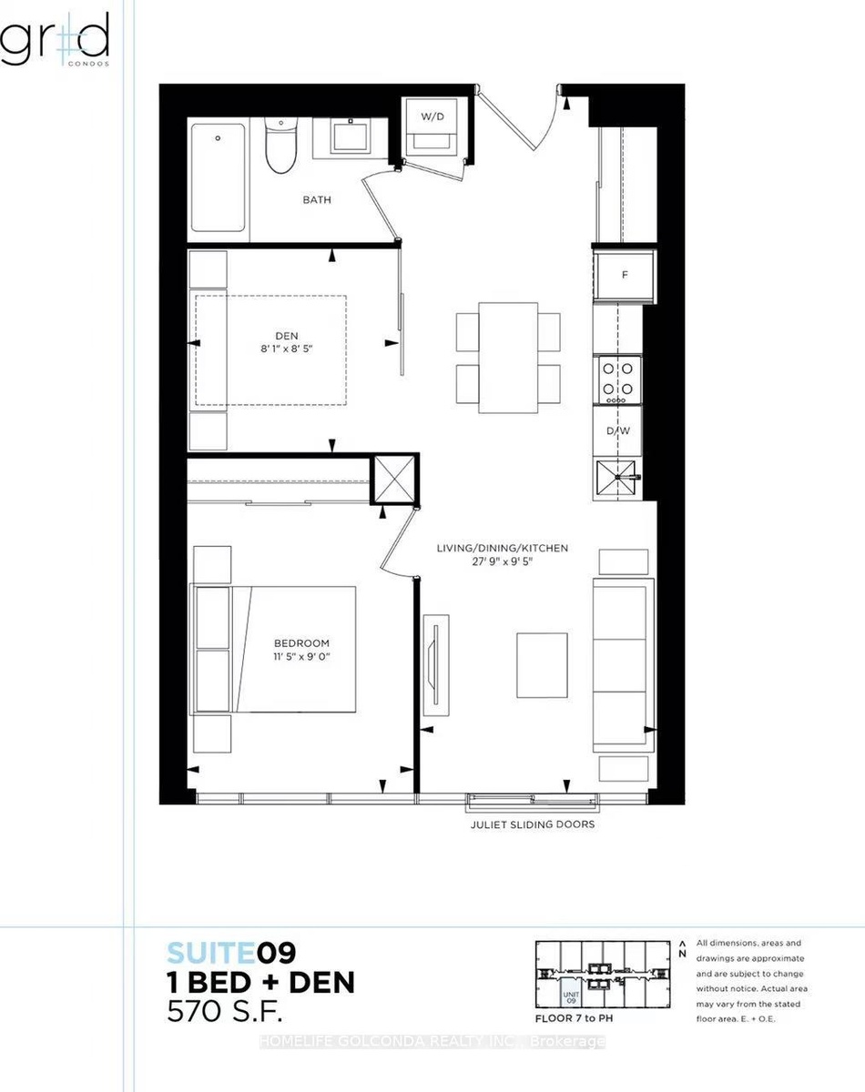 Luxury 1 Den at Grid Condos with south unobstructed view.