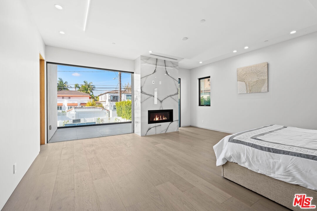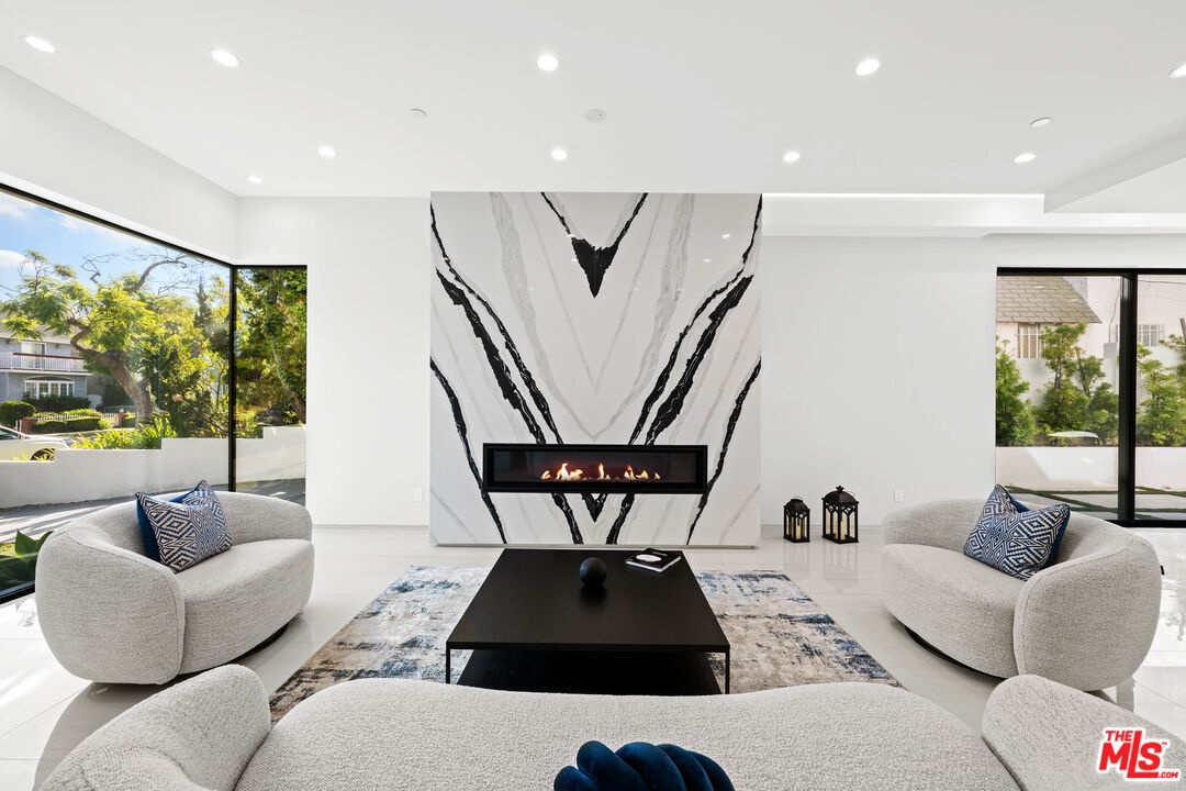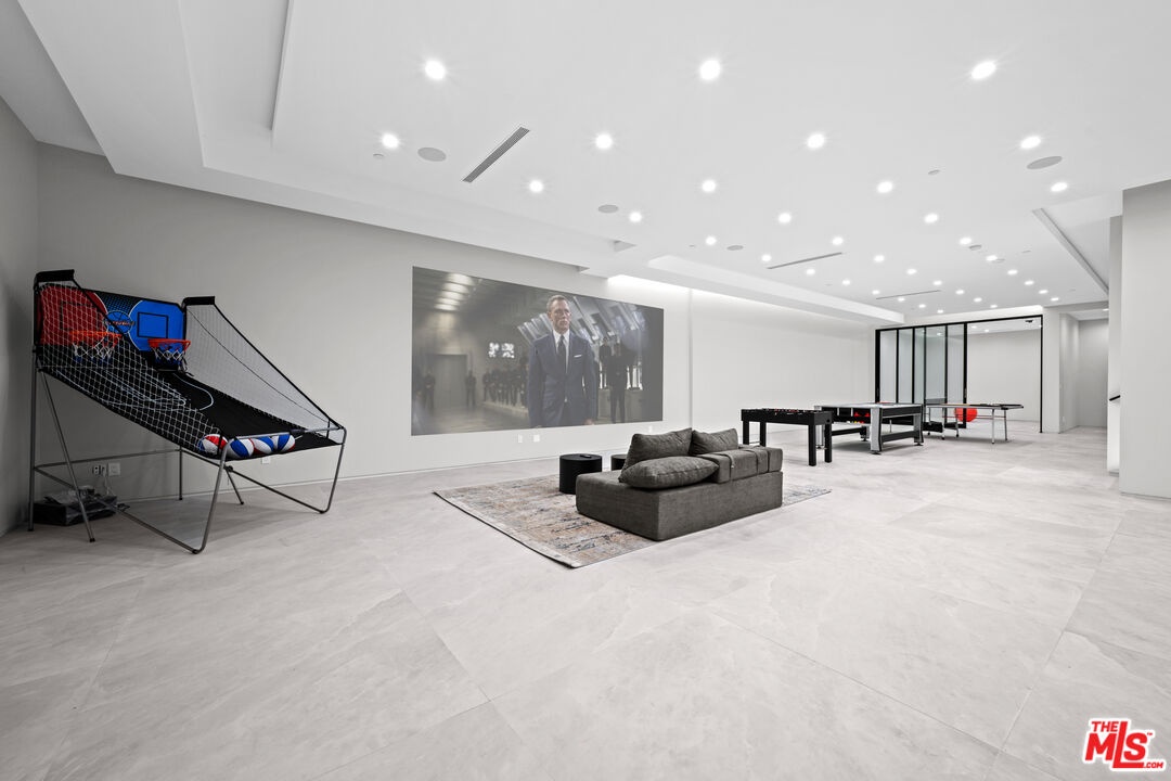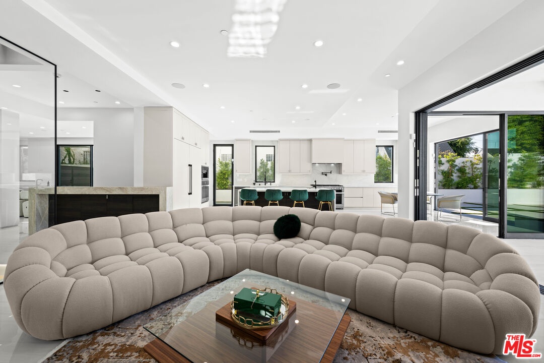 Exquisite Brand-New Contemporary Modern in Beverly Hills. Nestled in one of Beverly Hills' most sought-after neighborhoods, this brand-new contemporary modern residence offers an exceptional blend of sophisticated design, luxurious finishes, and state-of-the-art amenities. With striking curb appeal, expansive living spaces, and seamless indoor-outdoor flow, this home defines modern luxury.The open-concept floor plan is highlighted by 12-foot ceilings in the main living areas, creating a sense of grand volume. Expansive Fleetwood sliding windows and doors flood the space with natural light, while recessed lighting adds warmth and ambiance throughout. High-end finishes are evident at every turn, including Italian porcelain tile floors in the living areas and rich mahogany wood in all bedroom doors and floors. The chef's kitchen features Miele appliances, including a full-size refrigerator and freezer, an 8-burner stovetop, dual ovens, and a built-in espresso machine. A large central island provides ample space for meal prep and casual dining, and the kitchen flows effortlessly into the living and dining spaces perfect for entertaining guests or enjoying quiet family moments.Each of the home's bedrooms offers a serene retreat with spacious walk-in closets and spa-inspired bathrooms featuring custom finishes. The primary suite stands out with floor-to-ceiling sliding glass doors that open to a private balcony overlooking the pool and spa. The en-suite bathroom is a sanctuary, featuring an 8-jet soaking tub, a rain shower with steam, and sleek stone finishes.The expansive lower level includes a vast game room with 14-foot ceilings, ideal for a gym, home theater, or additional entertainment space. A full bar provides the perfect place to host guests, while the dedicated theater room offers a true cinematic experience. The fitness center is equipped to meet your every wellness need. An elevator ensures easy access to every level of the home.Outside, the beautifully landscaped grounds feature a stunning pool and spa with a waterfall feature, and a custom fire pit ideal for evening gatherings. The expansive backyard provides ample space for high-end entertaining or private relaxation. Smart home technology integrates lighting, climate control, security, and audio-visual systems, providing convenience at the touch of a button.Just moments from world-class shopping, dining, and entertainment, this property offers the ultimate in modern living, luxury, and convenience in one of the world's most prestigious locations.