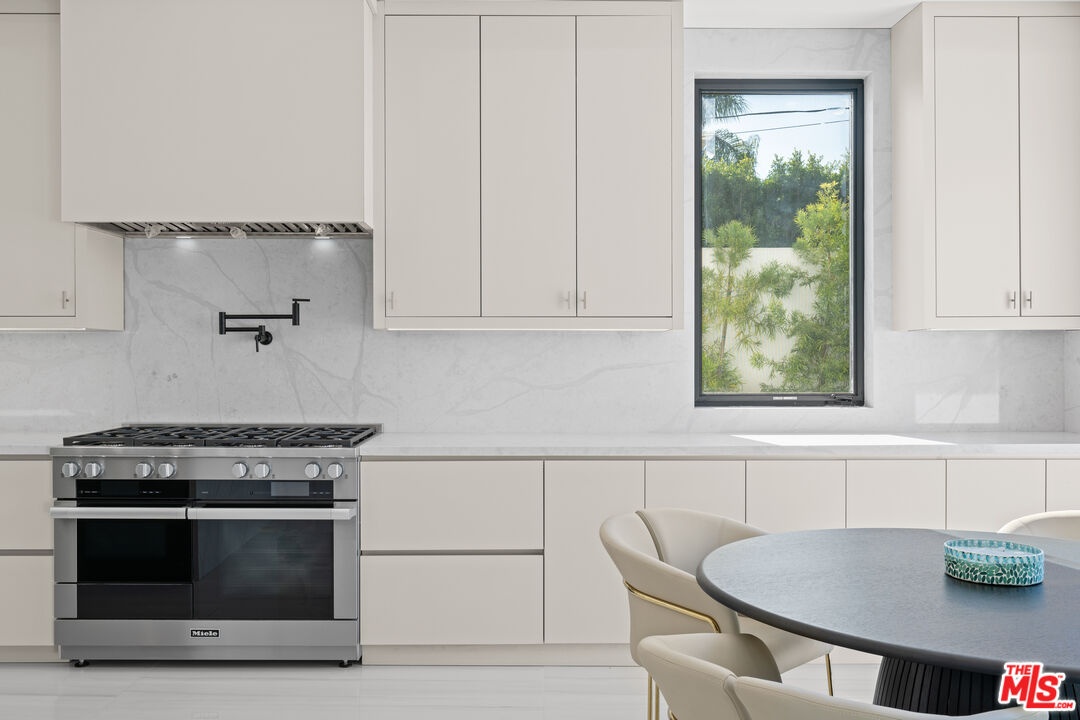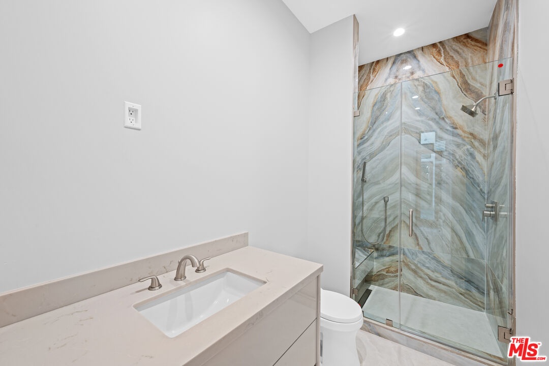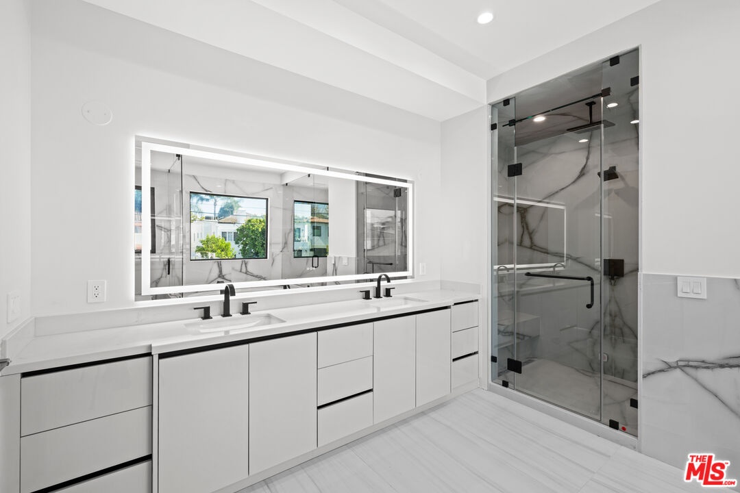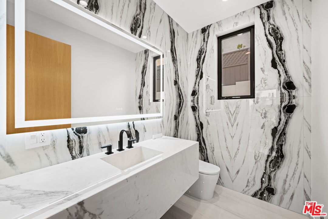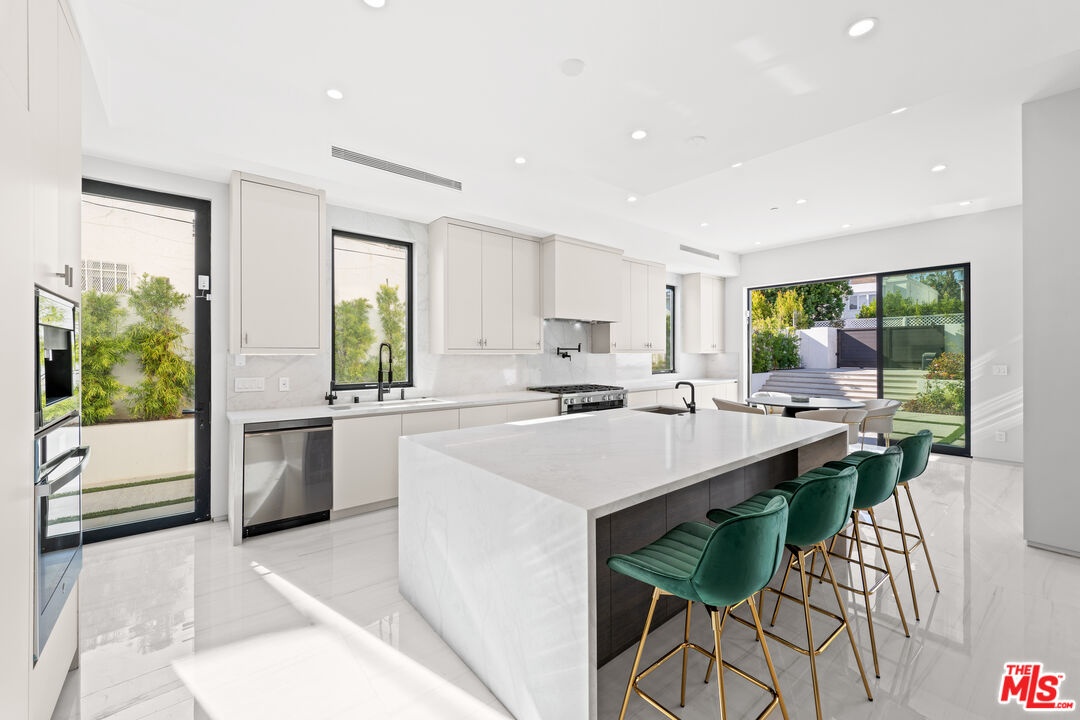 Exquisite Brand-New Contemporary Modern in Beverly Hills. Nestled in one of Beverly Hills' most sought-after neighborhoods, this brand-new contemporary modern residence offers an exceptional blend of sophisticated design, luxurious finishes, and state-of-the-art amenities. With striking curb appeal, expansive living spaces, and seamless indoor-outdoor flow, this home defines modern luxury.The open-concept floor plan is highlighted by 12-foot ceilings in the main living areas, creating a sense of grand volume. Expansive Fleetwood sliding windows and doors flood the space with natural light, while recessed lighting adds warmth and ambiance throughout. High-end finishes are evident at every turn, including Italian porcelain tile floors in the living areas and rich mahogany wood in all bedroom doors and floors. The chef's kitchen features Miele appliances, including a full-size refrigerator and freezer, an 8-burner stovetop, dual ovens, and a built-in espresso machine. A large central island provides ample space for meal prep and casual dining, and the kitchen flows effortlessly into the living and dining spaces perfect for entertaining guests or enjoying quiet family moments.Each of the home's bedrooms offers a serene retreat with spacious walk-in closets and spa-inspired bathrooms featuring custom finishes. The primary suite stands out with floor-to-ceiling sliding glass doors that open to a private balcony overlooking the pool and spa. The en-suite bathroom is a sanctuary, featuring an 8-jet soaking tub, a rain shower with steam, and sleek stone finishes.The expansive lower level includes a vast game room with 14-foot ceilings, ideal for a gym, home theater, or additional entertainment space. A full bar provides the perfect place to host guests, while the dedicated theater room offers a true cinematic experience. The fitness center is equipped to meet your every wellness need. An elevator ensures easy access to every level of the home.Outside, the beautifully landscaped grounds feature a stunning pool and spa with a waterfall feature, and a custom fire pit ideal for evening gatherings. The expansive backyard provides ample space for high-end entertaining or private relaxation. Smart home technology integrates lighting, climate control, security, and audio-visual systems, providing convenience at the touch of a button.Just moments from world-class shopping, dining, and entertainment, this property offers the ultimate in modern living, luxury, and convenience in one of the world's most prestigious locations.