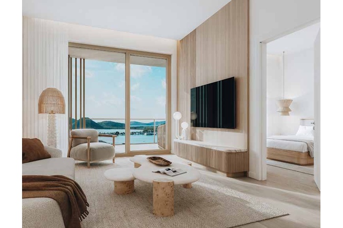 The One Bedroom Residences are thoughtfully designed for elegant simplicity. Ranging from approximately 856 to 1,382 sq ft, the layouts are open and fluid, maximising natural light and framing views of the ocean, marina or landscaped gardens. Floor to ceiling glazing opens onto generous terraces that extend the living space outdoors, creating a seamless transition between interior and exterior living.