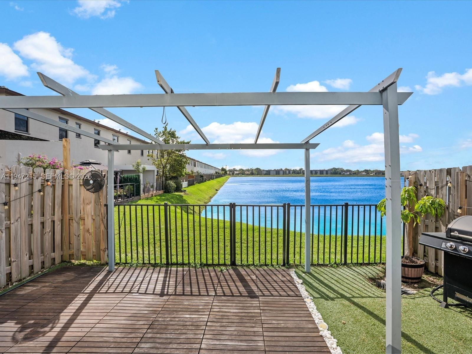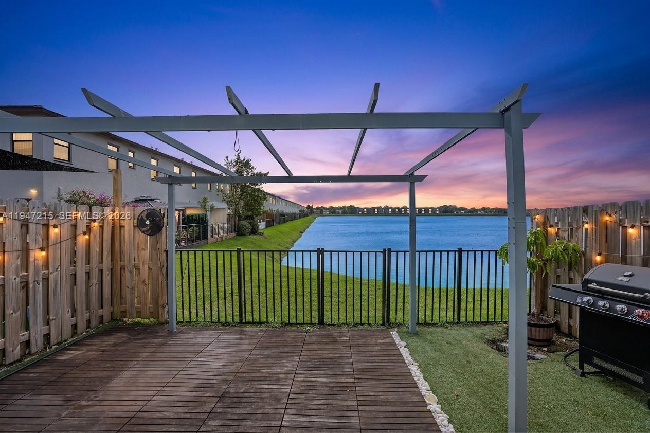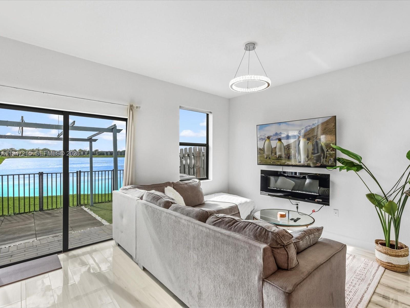 Wake up to lake views every morning in this stunning 2021-built townhouse nestled inside Paseos Via Ventura, one of Miami's newest gated communities with resort-style amenities. The private outdoor space is truly one of a kind: turf, pergola, outdoor fans, wood planking, and a direct lake view that makes every evening feel like a retreat. Inside, no detail was overlooked - quartz waterfall island, electric fireplace, updated lighting, tile, and vinyl wood flooring throughout, and an upgraded washer/dryer. The attached garage and low-maintenance lifestyle make this an easy yes for the discerning buyer. Less than 1 mile to groceries, under 2 miles to I-95, and 3 miles to Aventura Mall. The community HOA includes pool, gym, clubhouse, business center, BBQ area, children's play area, and 24/7 security - resort living at a fraction of the cost. This one checks every box. Schedule your private showing today.