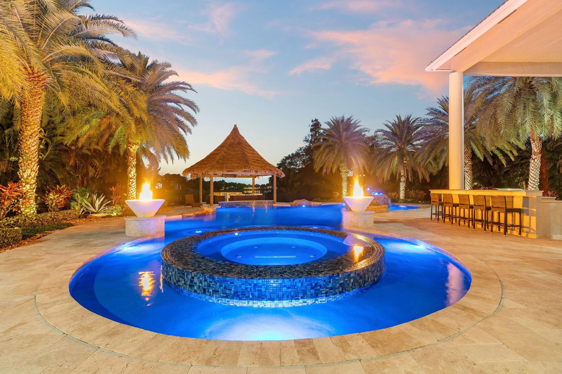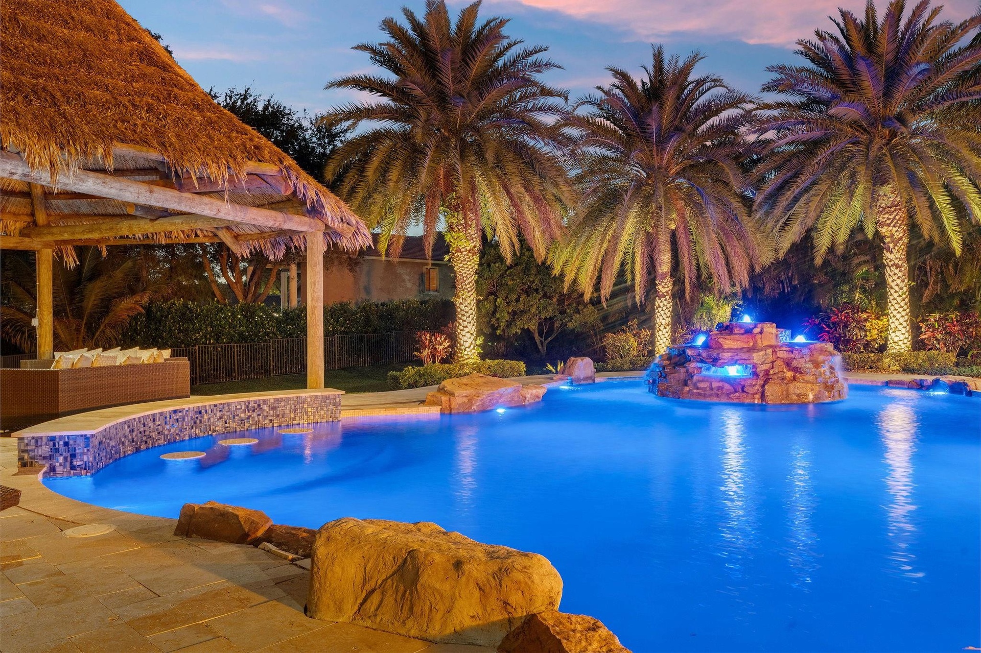Lowest per sq' in the community! Set on one of the most exceptional lots in Long Lake Ranches, this Renoir model offers the best view in the community. The one-of-a-kind floor plan is bright, functional, and immaculately maintained, featuring expansive windows and beautiful architectural detail. All five bedrooms include ensuite baths and walk-in closets, with rare his-and-her walk-in closets in the primary suite. A loft ideal for a pool table opens to a private theater with full bath, serving as an optional sixth bedroom. A stylish office with wine bar and adjacent bath adds flexibility. The resort-style backyard features an oversized pool and spa, tiki hut with swim-up bar, outdoor kitch, cabana bath, and a magnificent fire feature—perfect for entertaining and enjoying ultimate privacy.