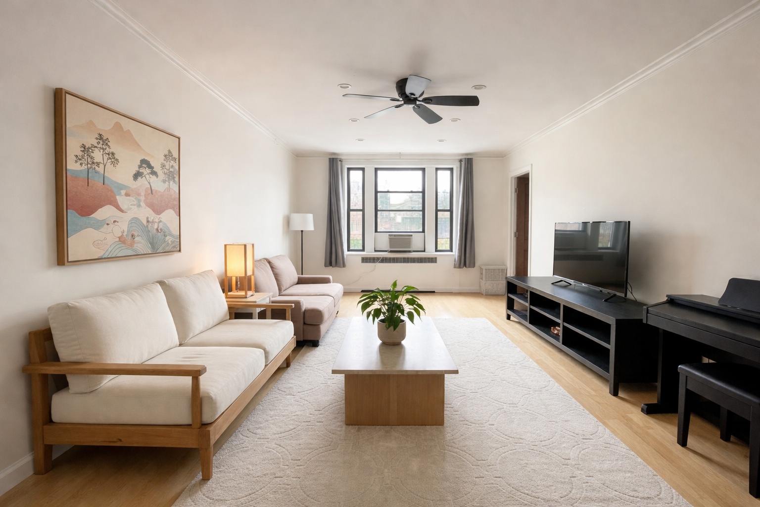 Spacious and bright two-bedroom, Two-bathroom residence located just one block from the Sunnyside Gardens Historic District. Features a well-proportioned layout with generous living and dining space, ideal for comfortable living and entertaining.