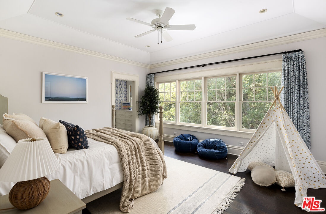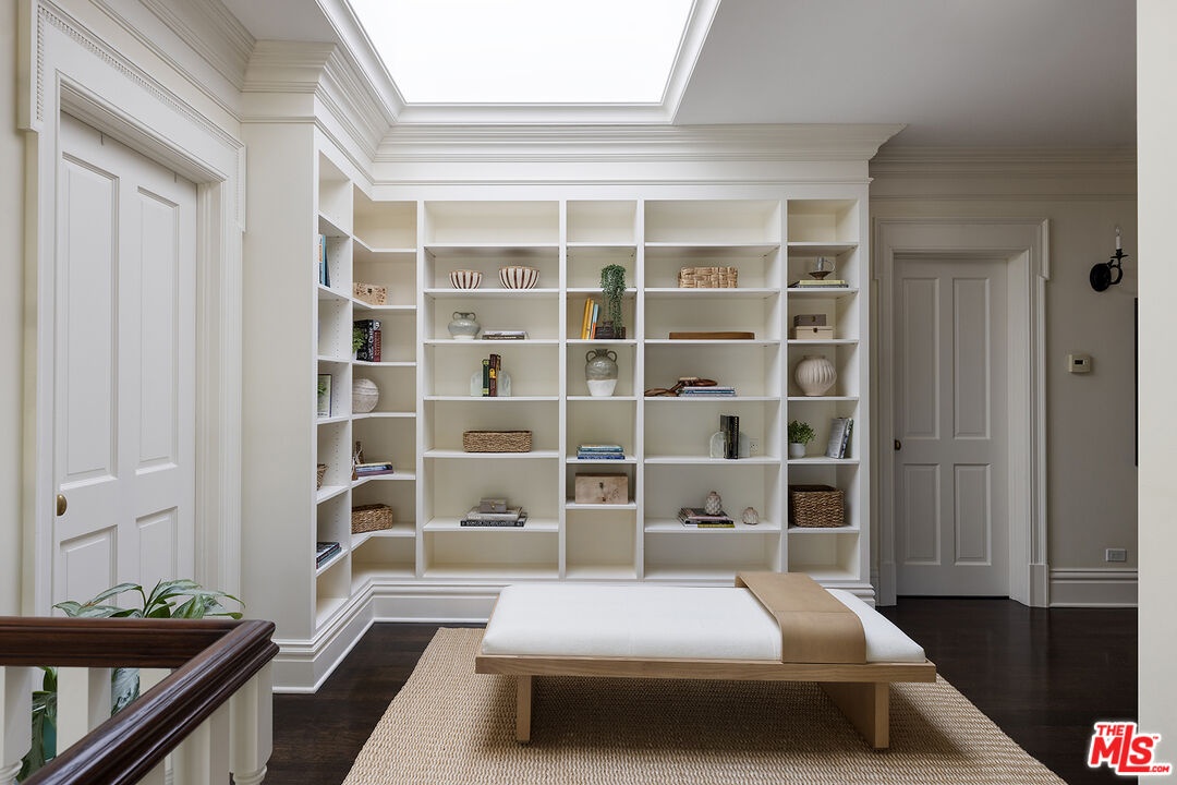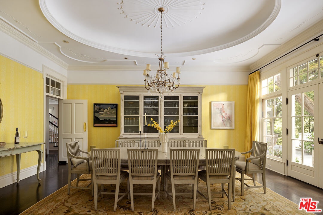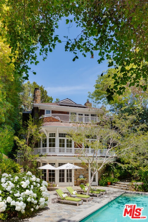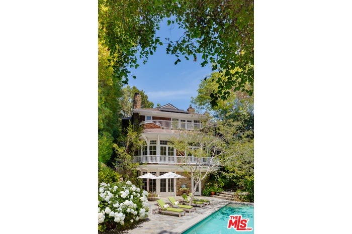 In beautiful lower Mandeville Canyon rests a magical gated private compound, hidden from the street and nestled up a long, tree-lined tranquil driveway. Situated on nearly one acre of lush grounds decorated by blossoming hydrangeas, cascading wisteria, and swaying trees, this rare find was designed by architect Lise Claiborne Matthews, AIA, ASID, and has never been on the market. Once the site of a historical botanical garden, the property spans two verdant parcels, fully encircled by beautiful mature trees for complete privacy. The enchanting facade opens to interiors that blend elegance and warmth, with soaring ceilings, curved glass windows, French doors at nearly every turn, and exquisite custom millwork throughout. Inside, the open-concept design encourages effortless entertaining. Guests are immediately met with a feeling of grand scale and sophistication, as they enter through the foyer and are met with the elegant dining room and formal living room with high architecturally custom-designed ceilings, functional curved glass windows, and anchored by a marble fireplace. Gorgeous greenery and filtered light is to be admired from every window of this stunning home. The living area features a cozy step-down family room with a media center and fireplace, while the chef's kitchen is equipped with a butcher-block island, three sinks, Viking range, Sub-Zero refrigeration, dual Miele dishwashers, and a pantry. A sunlit informal dining area and tranquil sunroom offer a serene setting for coffee, reading, or admiring the surrounding gardens. For grand occasions, the formal living room and dining room provide elegant settings for hosting gatherings, celebrations, and memorable evenings. The balance of the main floor contains an elegant guest suite, a large study, and a sixth bedroom. The expansive primary suite includes a sitting room, custom niches, French doors to a private balcony, and a spa-like bath with marble dual-sink vanity, oversized steam rainwater shower, soaking tub, dual water closets, dressing are, and two walk-in closets. Secondary bedrooms are spacious and full of charm, offering tranquil views of greenery and light throughout. On the recreational level, one would find an entertainment and wellness space with kitchenette, billiards room, sauna, cinema, gym, wine cellar, and a soundproof playroom, along with a light-filled atrium. Outside, the resort-style amenities include a sparkling 50-foot saltwater pool, meditation garden, koi pond, grassy lawn, patios, and lounging decks. Ample space allows for future additions such as a play area or sport court. Completing the estate is a three-car garage, a large fully functional gym or potential ADU, a large motor court, and additional parking accommodating twelve-plus vehicles. Offered furnished or unfurnished, this rare retreat is just minutes from Brentwood, Santa Monica, Pacific Palisades, and all the conveniences of the Westside, yet feels worlds away.