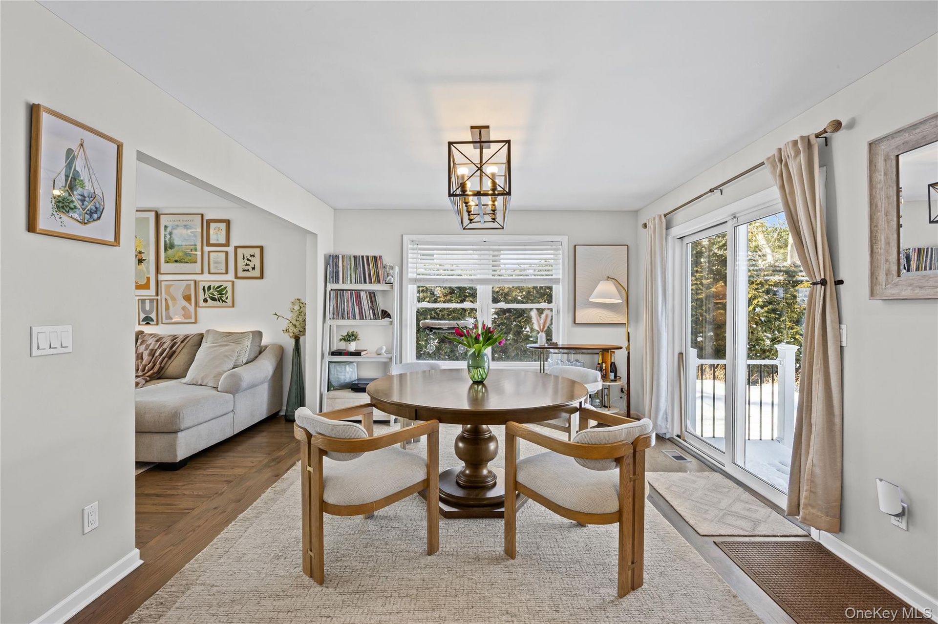 The Floor Plan is Ideal for Entertaining. The Dining Area Features Sliding Doors that Lead to a Serene Backyard Retreat and Seamlessly Connects to a Well-Appointed Kitchen, Equipped with Quartz Countertops and Stainless-Steel Appliances.