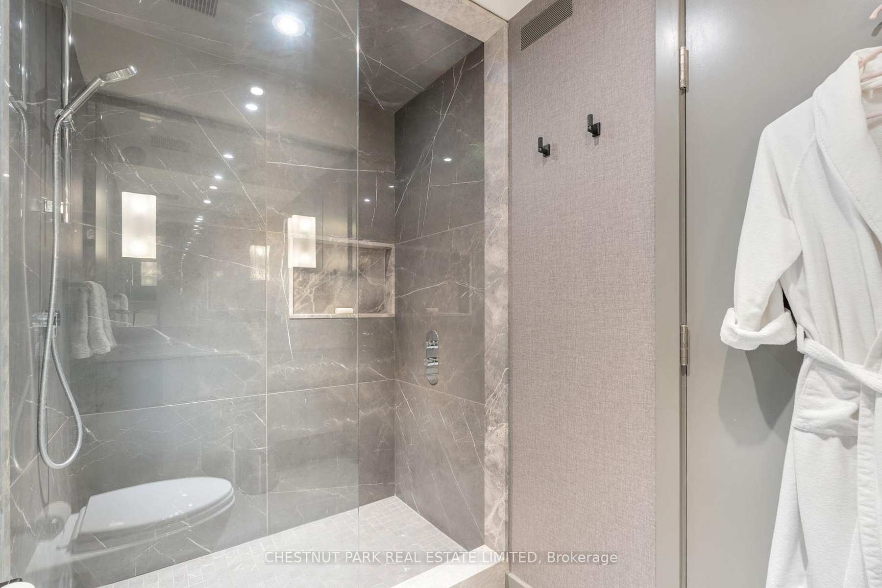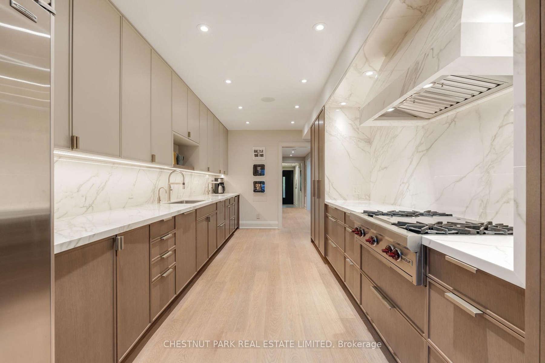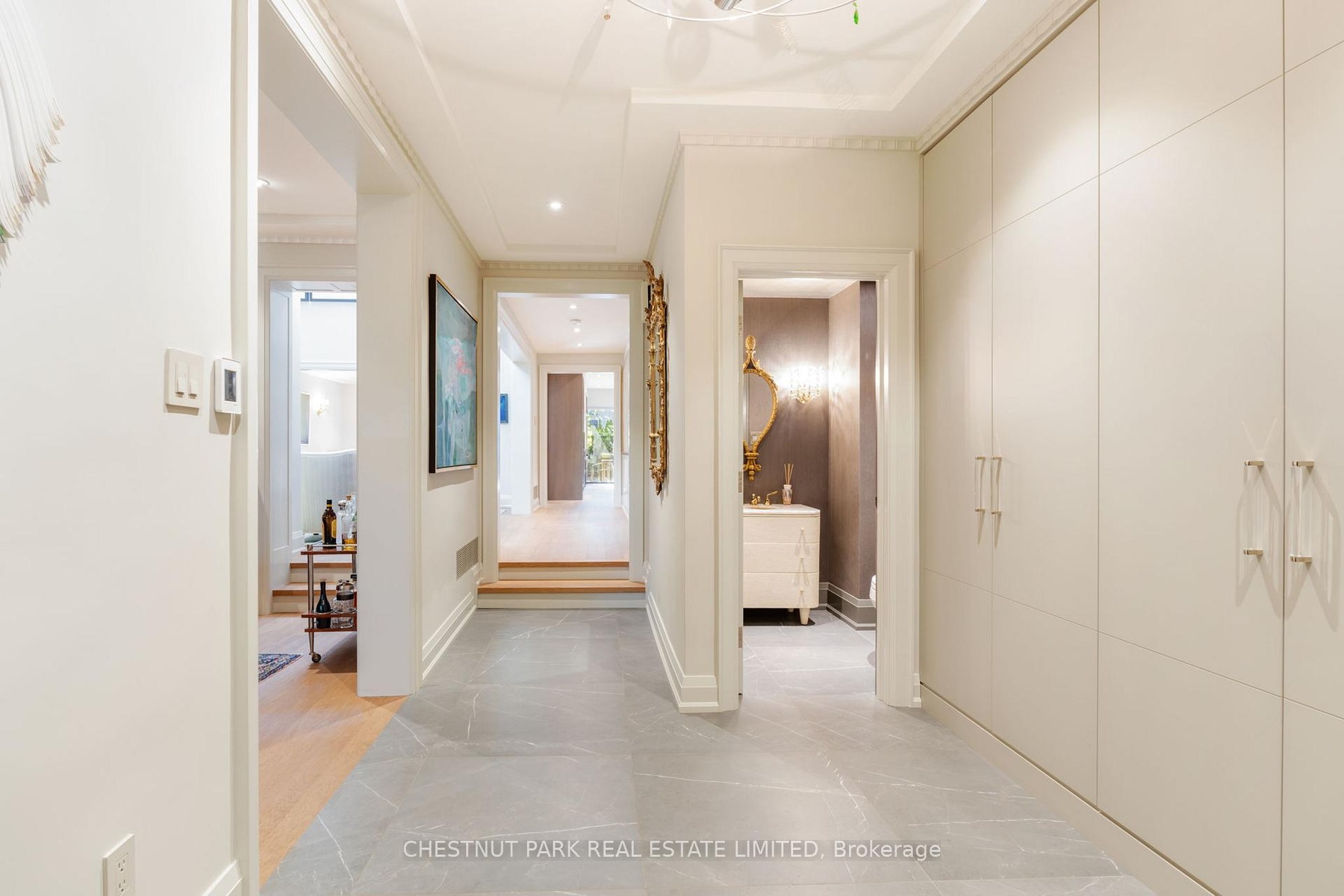 Experience elevated living in this fully reimagined 3-bedroom, 4-bathroom townhome, quietly tucked within a prestigious Forest Hill/Deer Park enclave. Rebuilt from the studs up, this exceptional residence spans over 6,400 total sq.ft. of sophisticated living space, seamlessly blending timeless elegance with modern luxury. A gracious foyer with porcelain tile flooring, bespoke built-ins, and a solid-core entry door leads to expansive living and dining areas adorned with oak hardwood floors (herringbone in the dining room), crown moulding, and custom drapery. The dramatic family room impresses with soaring ceilings, skylights, and gallery-style walls, creating an ideal backdrop for art and entertaining. At the heart of the home, the chef's kitchen is a true showpiece, featuring porcelain countertops, custom cabinetry, a Wolf gas range with dual ovens, Sub-Zero fridge/freezer, two dishwashers, and a built-in coffee system. French doors open to a private stone patio, perfect for outdoor dining and entertaining. The serene primary suite offers a custom walk-in closet and a spa-inspired 5-piece ensuite with floating vanity, TV mirror, soaker tub, and a glass-enclosed shower with offset controls. Two additional bedrooms - one easily adaptable as a home office - share a designer 3-piece bath and walk-in closet. The sun-filled lower level provides remarkable versatility, boasting a recreation room with gas fireplace and dual Murphy beds, a gym or second family room with walkout, a full galley kitchen, a 450-bottle wine cellar, private office, sleek wet bar, and a spa-like bathroom with steam shower - ideal for guests or extended family. A private two-car garage with direct mudroom entry adds everyday convenience. Residents enjoy concierge service and premium amenities including two fitness centres, an outdoor pool, party room, and more. Just steps to Forest Hill Village, Yonge & St. Clair, TTC, and some of Toronto's most sought-after schools.