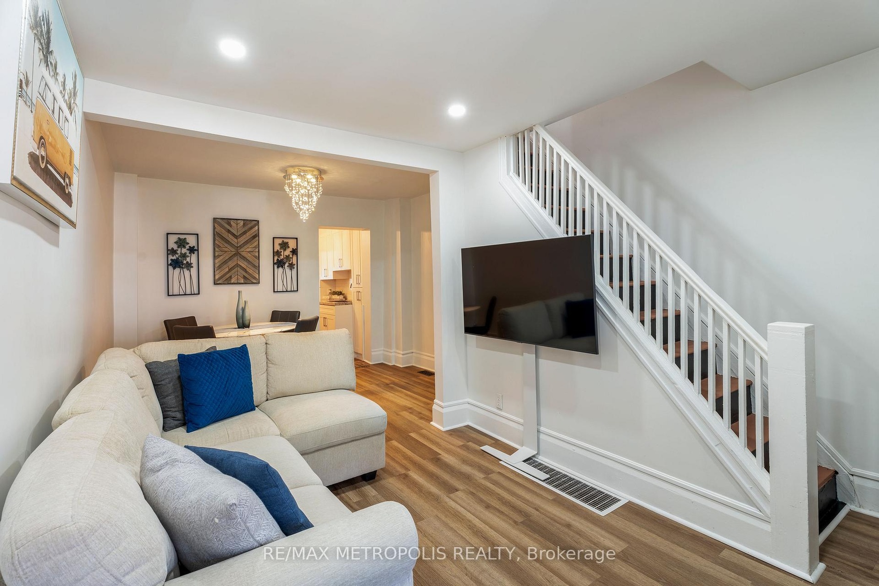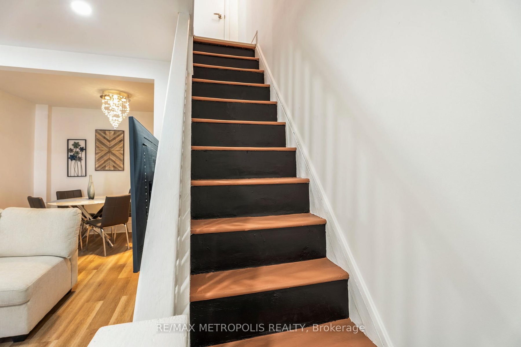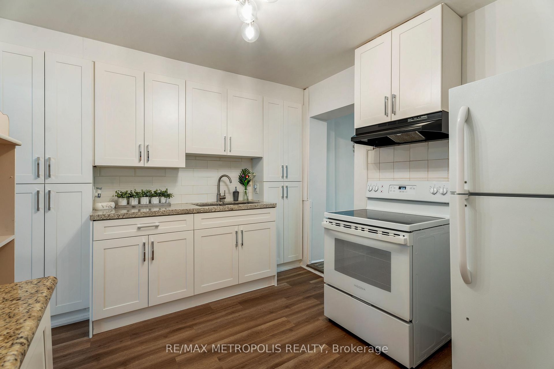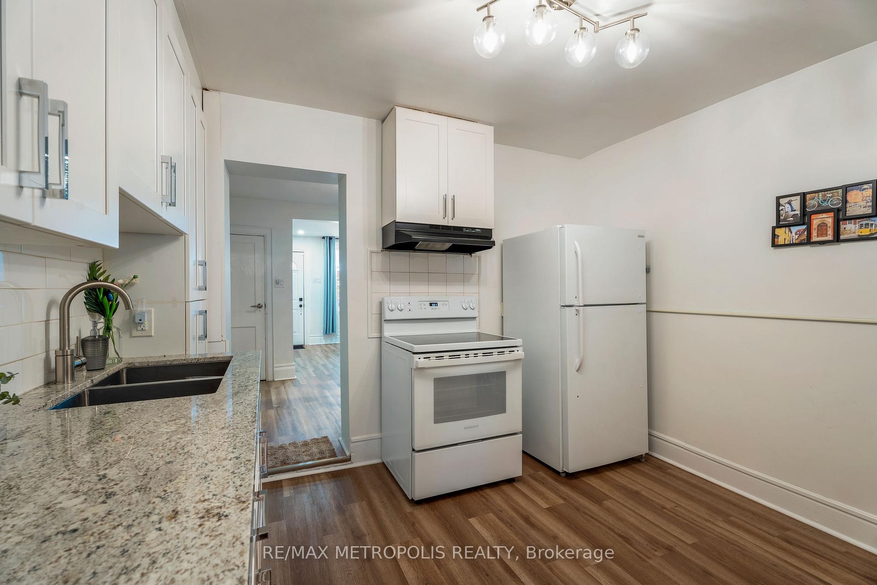 Welcome to this stunningly renovated and modernized freehold townhouse! Thoughtfully updated in 2023, this home boasts modern touches throughout. Inside, you'll find updated flooring throughout both the main and upper levels (2023), Potlights (2025') along with a fully redesigned kitchen featuring granite countertops (2023), soft-closing cabinets (2023), a large double sink with a modern faucet (2023), and updated appliances including a refrigerator, stove, washer, and dryer (2023). Both levels have a bedroom, which makes this home have a unique layout. The renovated 3-piece bathroom (2025) complements the home's clean and warm aesthetic, while updated windows throughout enhance energy efficiency and natural light. The spacious primary bedroom is bright, featuring three windows with both north and south exposures. The bedroom upstairs also has a Den nook, perfect for a home office.