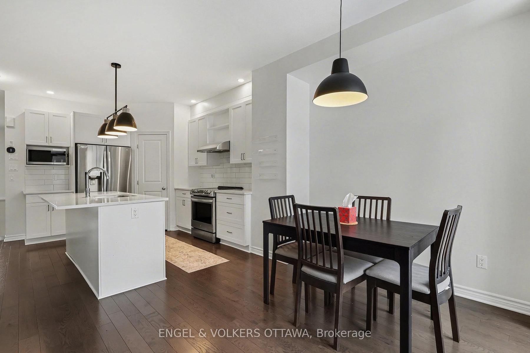 Nestled in the desirable Findlay Creek, this wonderful home offers 1,700 square feet of living space - including a professionally finished basement - making it ideal for families, professionals, or anyone seeking a low-maintenance lifestyle in a thriving area. The main level features a bright, open-concept layout, with the living room showcasing hardwood floors, smooth ceilings, and a gas fireplace that serves as the focal point. The space flows through the dining area to the kitchen, which has quartz countertops, SS appliances, and a large central island with seating. A stylish powder room with a pedestal sink and polished fixtures completes this level, adding convenience and a refined touch. Upstairs, the primary bedroom has soft carpeting, neutral finishes, and plenty of natural light, along with a walk-in closet and an ensuite with a glass-enclosed shower, deep soaker tub, and large vanity. The two additional bedrooms have versatile layouts, suitable for family members, guests, or home offices. A full bath with an extended vanity and tub/shower combo serves the secondary bedrooms, while a conveniently located laundry room with full-sized appliances enhances everyday ease. The finished lower level extends the living space with a bright, versatile family room, perfect for a media area or home gym. It features soft carpeting, neutral finishes, and an above-grade window that allows natural light to fill the space. Outside, a raised rear deck with a wood railing offers a convenient outdoor extension of the main living area, leading to a fenced backyard. Findlay Creek provides a quiet, family-friendly environment surrounded by parks, trails, and green spaces, including Diamond Jubilee Park. Just a short distance away, there are various schools, shopping, and everyday amenities along Bank Street. This recently built and lightly used townhome is a great opportunity to settle into one of Ottawa's most sought-after communities. AVAILABLE FURNISHED.