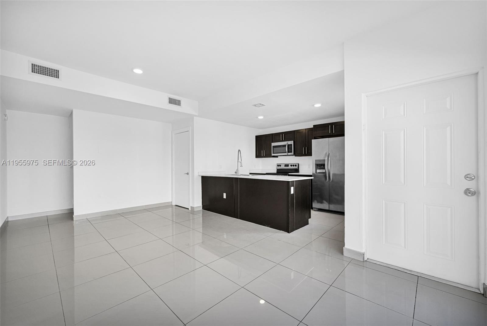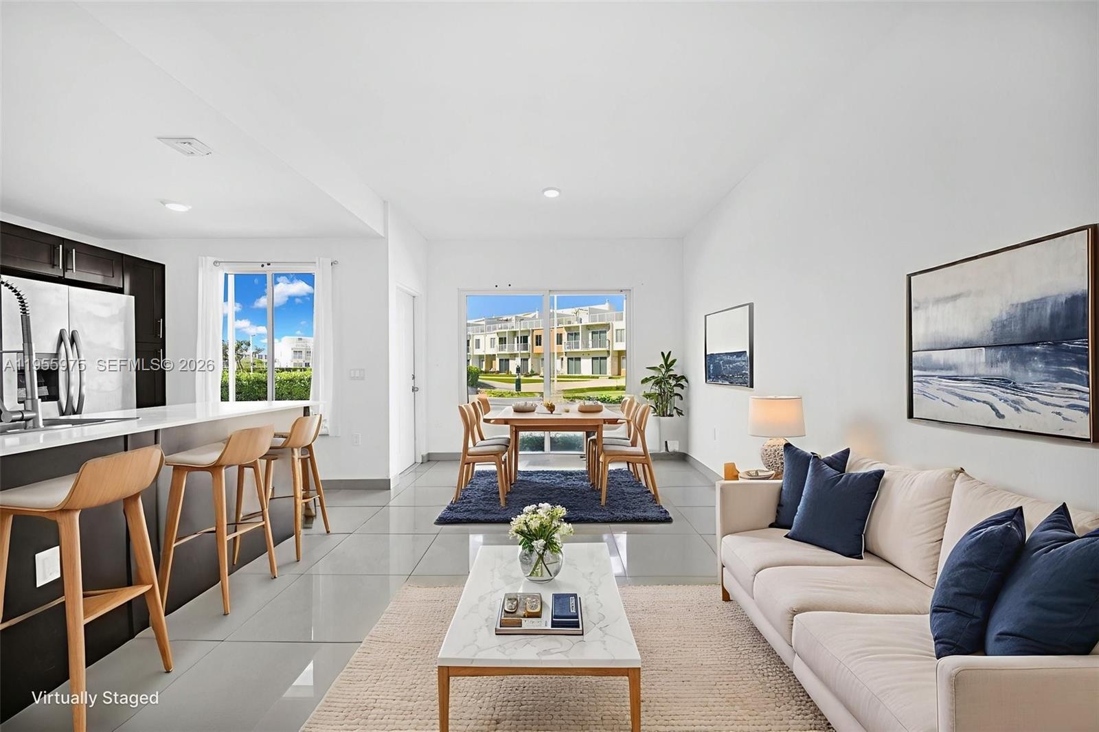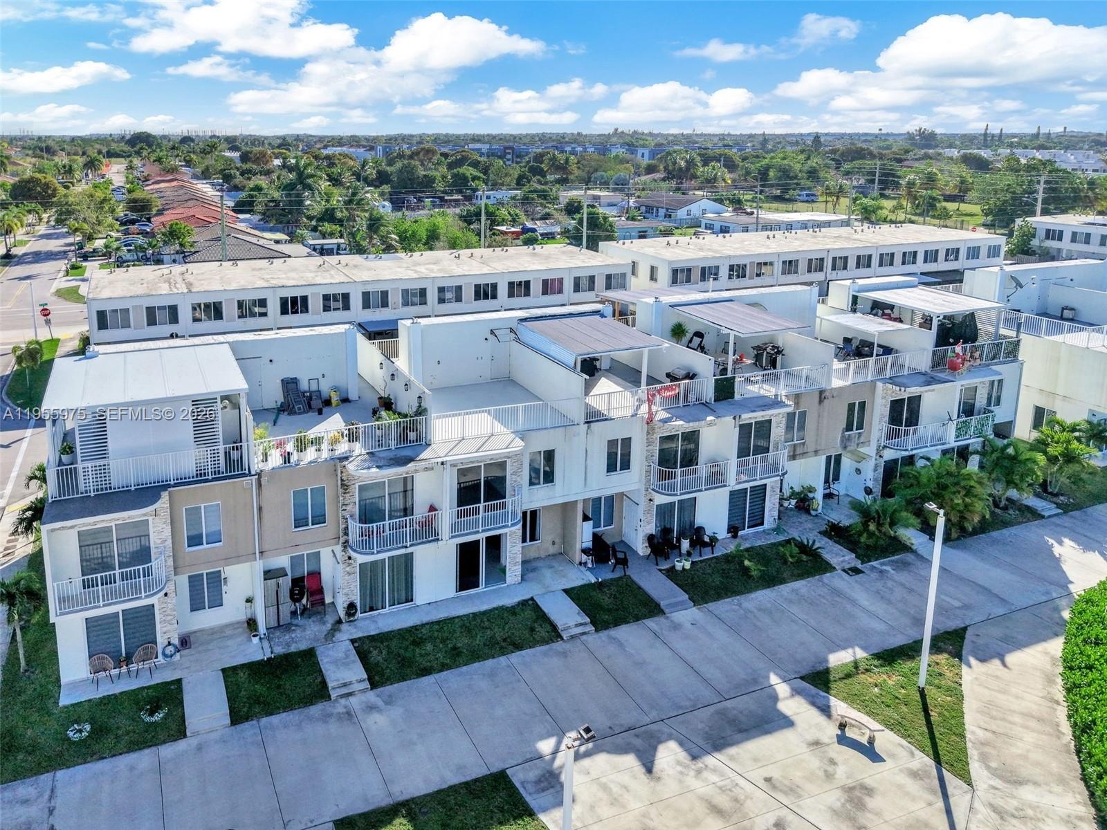 Modern and spacious townhome located in the growing Homestead area, offering an open-concept layout filled with natural light, elegant porcelain tile flooring on the main level, and contemporary finishes throughout. The sleek kitchen features quartz countertops, dark wood cabinetry, stainless steel appliances, and a large center island that flows seamlessly into the living and dining areas. Upstairs offers well-sized bedrooms with wood-look flooring, modern bathrooms with designer tile showers and upgraded vanities, private balconies, and excellent closet space. The highlight of the home is the expansive private rooftop terrace, ideal for entertaining, outdoor dining, or relaxing under the Florida sun. Impact windows and doors, energy-efficient lighting, and a concrete structure provide durability and peace of mind. One bedroom is currently rented, making this property an excellent opportunity for investors seeking immediate income, while still maintaining flexibility for future owner occupancy. Located in a newer community with low HOA and convenient access to schools, shopping, dining, Florida’s Turnpike, US-1, Homestead Air Reserve Base, and the Florida Keys, this home combines modern design, income potential, and strong long-term value in one of South Florida’s fastest-growing markets.