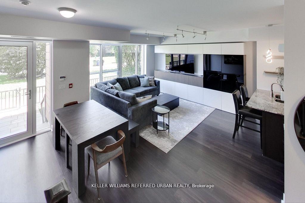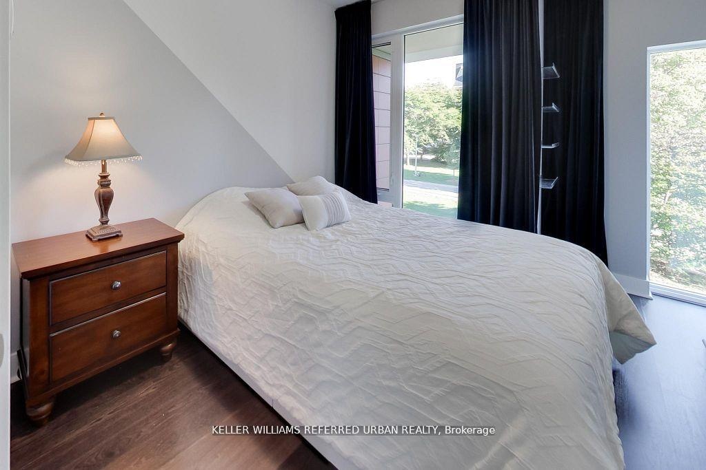 All Inclusive Hydro & Internet. Your Very Own Private Separate Entrance to Private BBQ Patio Overlooking The Greenspace & Lake Ontario - An Oasis In The Heart Of The City. Fully Furnished. Parking. Locker, Situated In A Highly Desirable Waterfront Trail Community, This Charming 2 Bed + Den, 1 Bath Main Level & 2 Baths Upper level And 1145 Sqft. Walls Of Glass Flood The Open Concept Main Floor With Natural Light, Showcasing Scenic Views Of The Landscaped Common Areas And Marina Beyond. The Chef-Inspired Kitchen Features Granite Countertops And High-End Stainless Steel Appliances, Creating The Perfect Space For Entertaining. Hardwood Floors Flow Throughout The Main Level And Spacious Bedrooms. Retreat To The Luxurious Master Suite, Boasting A Large Walk-In Closet And Elegant Ensuite Bath. Upstairs, The Flexible Bonus Room Provides The Option For A Home Office, Play Area, Or Additional Sleeping Space. Out Back, Curl Up With A Book On. Conveniently Located Near Countless Amenities Like Shops, Restaurants, The Streetcar Line, Porter Airport & Loblaws Plaza. EXTRAS: Nearby Parks Offer Scenic Waterfront Trails And Playgrounds For Residents Of All Ages. Monthly Building Fees Include Access To The Co-Working Lounge - Perfect For Remote Professionals. Parking And Locker Make It All Complete. INCLUSIONS: Top-of-the-line finishes and appliances and the rare opportunity to live in this boutique development. All utilities & Internet included. Key selling points: fully turnkey, premium furnishings, Private Patio Townhome Offers The Best Of Downtown Living Just Minutes From Union Station, direct park and water access, rare furnished short-term offering with flexible dates.