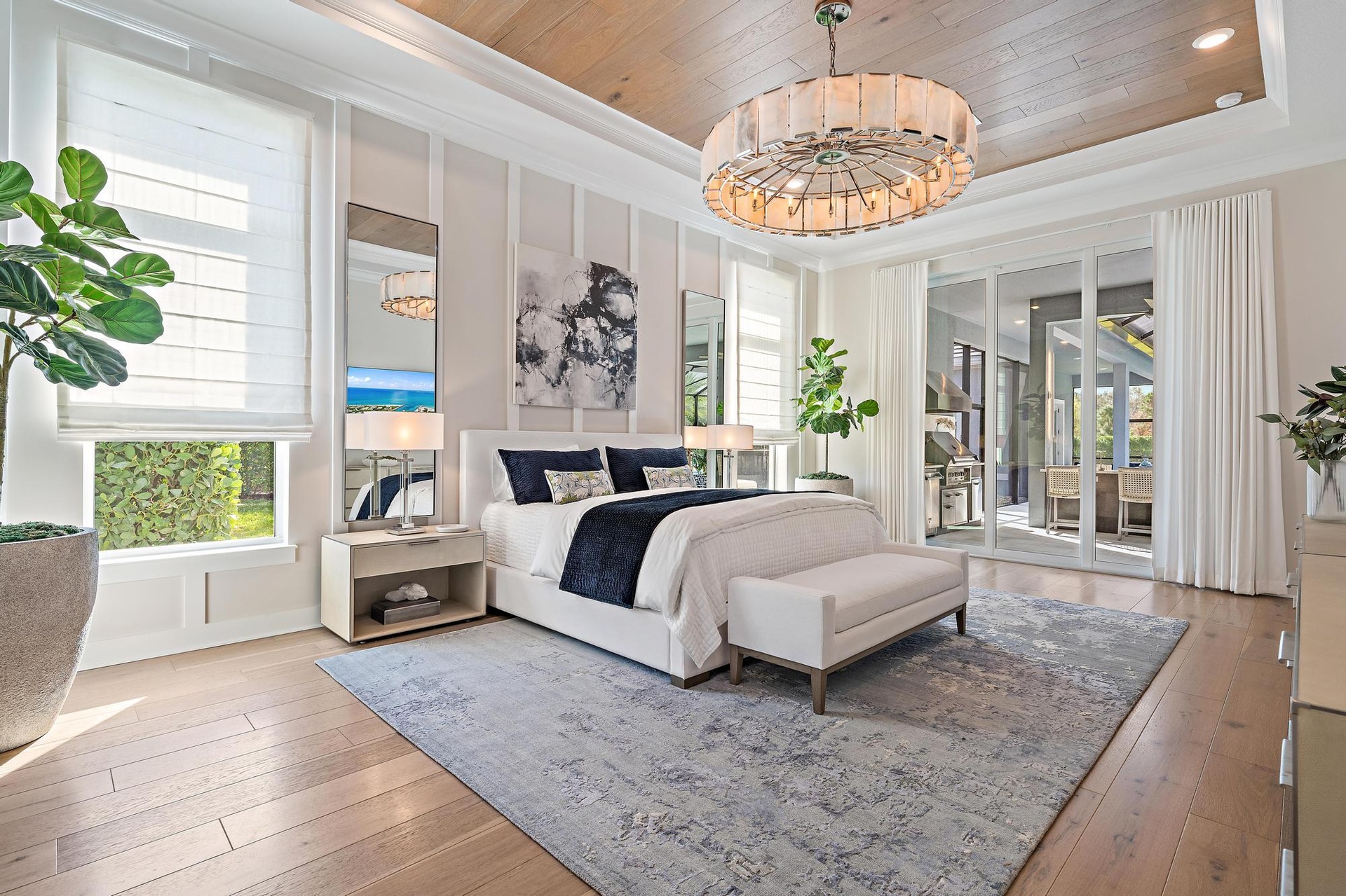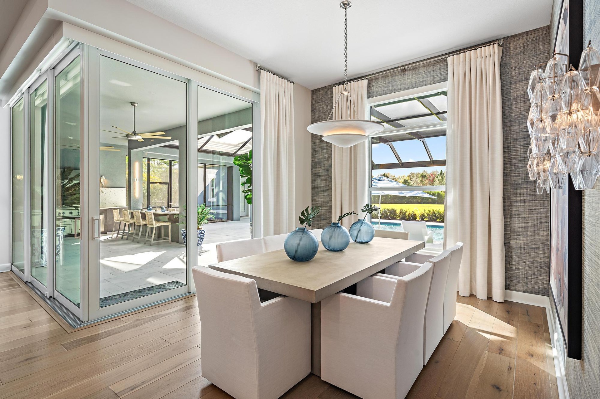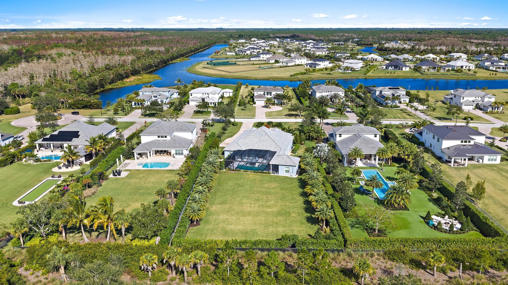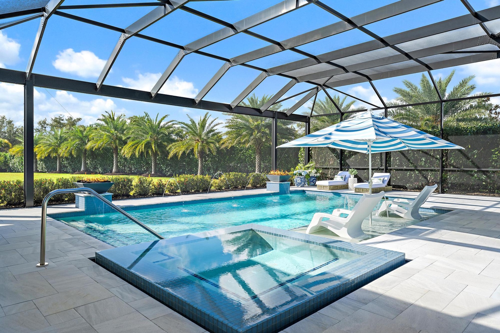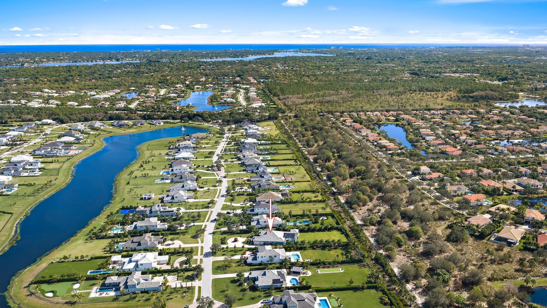 Look no further for your custom designed Oakley home with casita in the Bridgewater community of Jupiter. This late 2022 build sits on 0.95 acres. Main house is 4 bedrooms, 3 baths plus an office and an air conditioned 3-car garage with epoxy floor and an EV charger. Separate guest house/casita offers total privacy with its own bathroom and walk- in closet. Enjoy indoor/outdoor living and seamless outdoor entertaining with the great room's zero-edge sliding glass door opening to the designer summer kitchen with a custom 8 seat island for dining, salt water pool and spa with fire bowls, lanai and fully-fenced in backyard with built-in fence screens. Other upgrades include a full house generator, an extended circular driveway, custom closet build outs, built-in bar with wine cooler, custom window treatments and garage built-ins for extra storage. Most desirable southern exposure from the living area. Located just minutes east of I-95 and less than 2.5 miles to the beach in the newer gated DiVosta community, Bridgewater Preserve. Bridgewater boasts 1+ acres homesites, miles of sidewalks throughout the neighborhood and beautiful lakes.