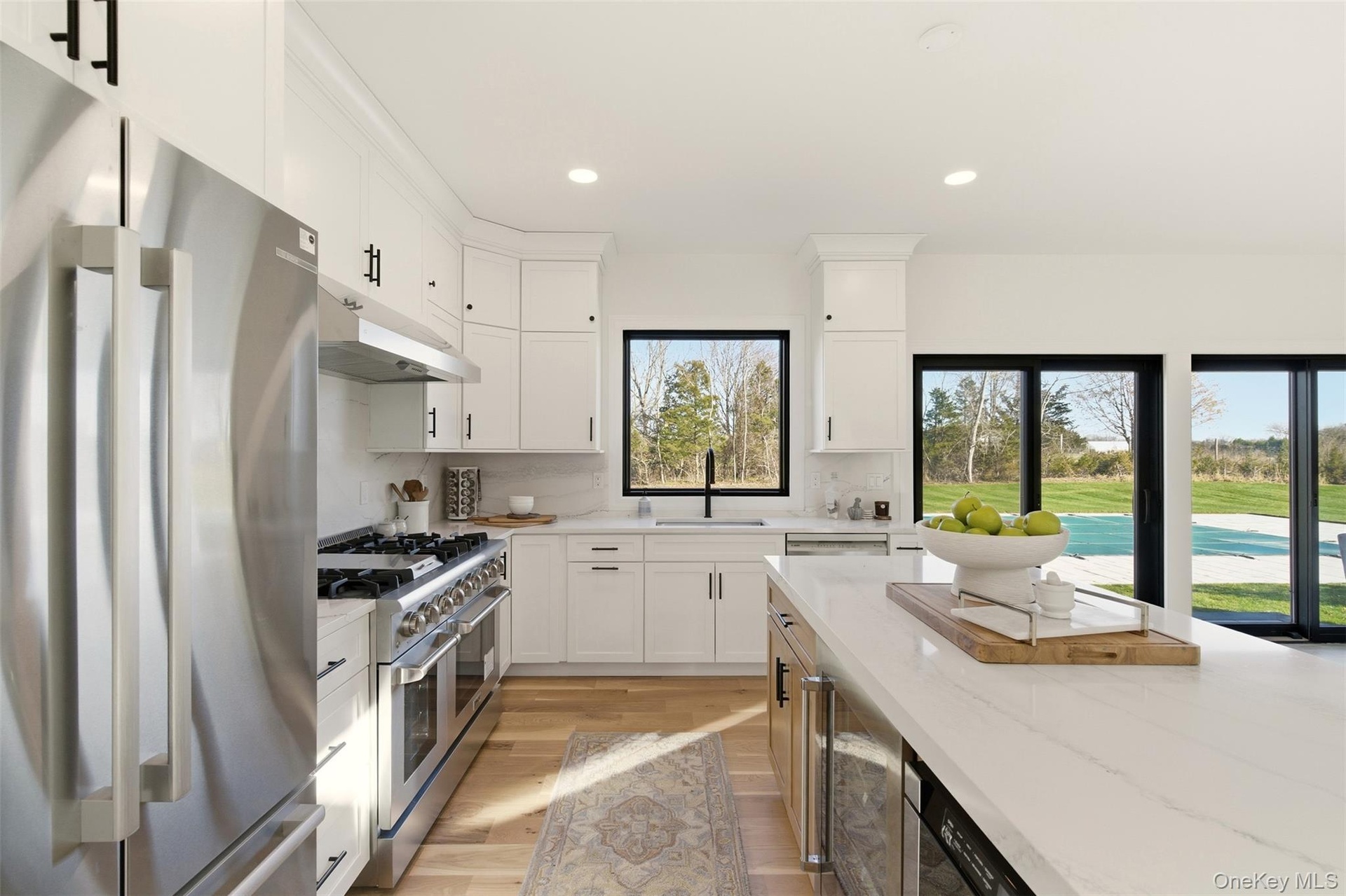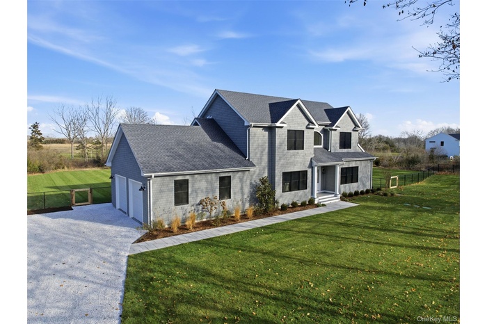 Brand new and just completed, this ultra-custom turnkey masterpiece represents the quintessential North Fork lifestyle. A masterfully crafted estate home uniting rustic authenticity with modern ultra-luxury on an exceptionally secluded, oversized mega lot. Tucked back 800 ft. from the road and immersed in nature with a canopy of mature trees and native plants, you will feel world’s away – yet you are right down the block from the famous Grana restaurant, numerous farmers markets, and world-class wineries! The home is dripping with luxury appointments: Maibec Dipped Cedar Shingle exterior, black Pella Lifestyle windows, a dramatic open-concept, modern floor plan with first-floor bedroom suite, 6-inch-wide plank white oak floors, a bespoke chef's level kitchen, a Cambridge quartz island with designer 2.5” mitered edge paired with a gorgeous full-height backsplash and double-stacked premium cabinetry. The second floor features a spacious primary bedroom suite with a magnificent spa bath as well as large secondary bedrooms, each with a walk-in closet. The massive lower level, featuring a 10 ft. ceiling height, chic plank flooring, an exterior entrance, and three egress windows, is ready for your dream space. The property's vast grounds are also extraordinary, with a 20’ x 40’ heated saltwater pool, a custom-designed masonry patio, and room for a full-sized tennis court. Available for immediate occupancy or secure the home now and close in the Spring, your choice. Will not last!