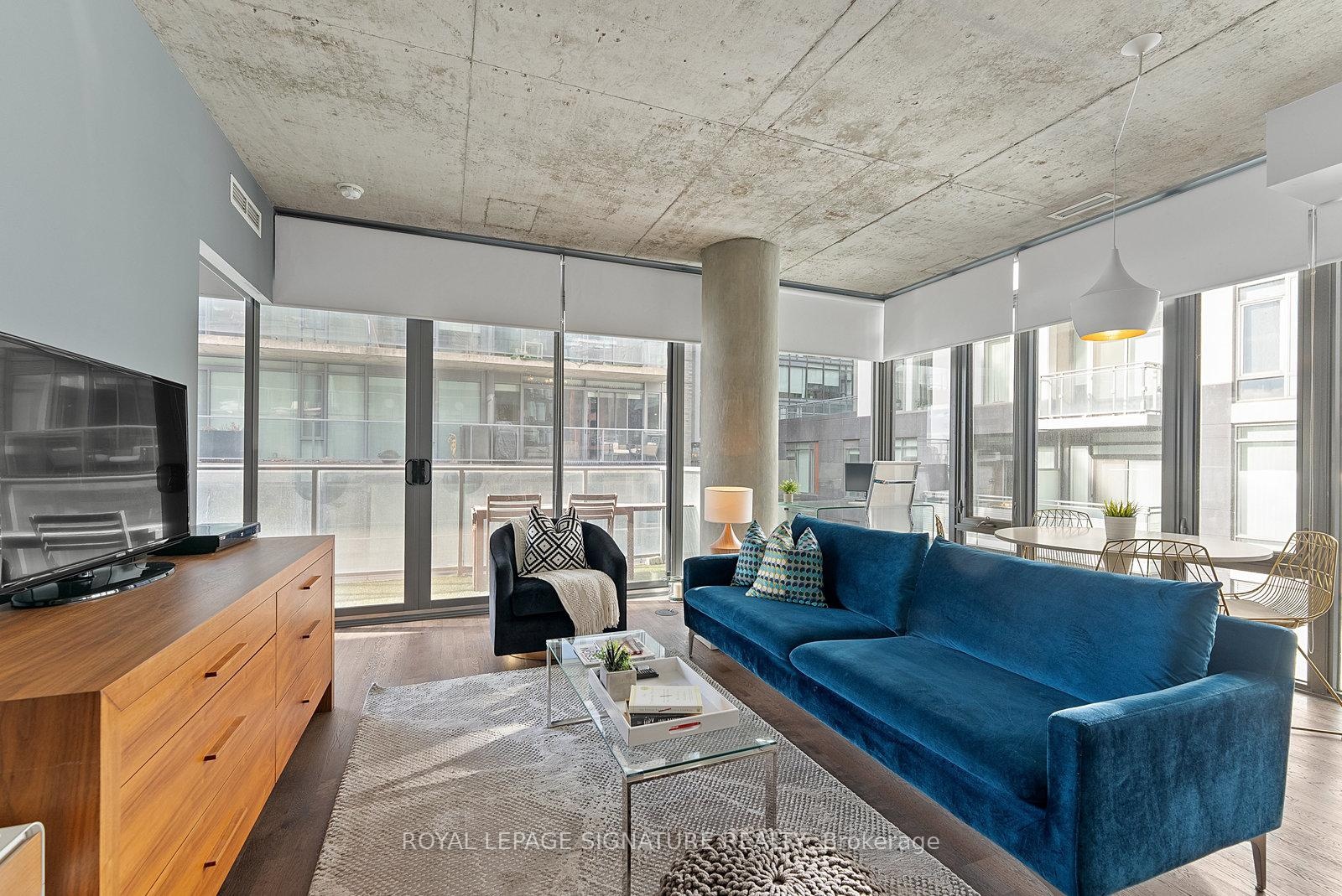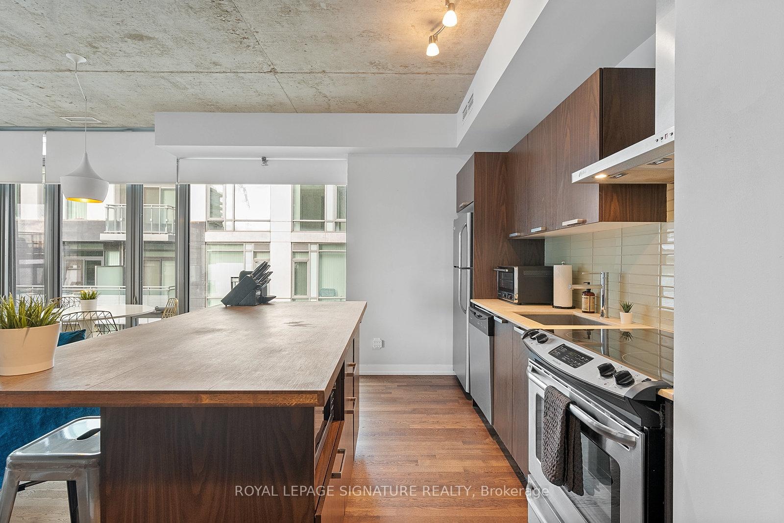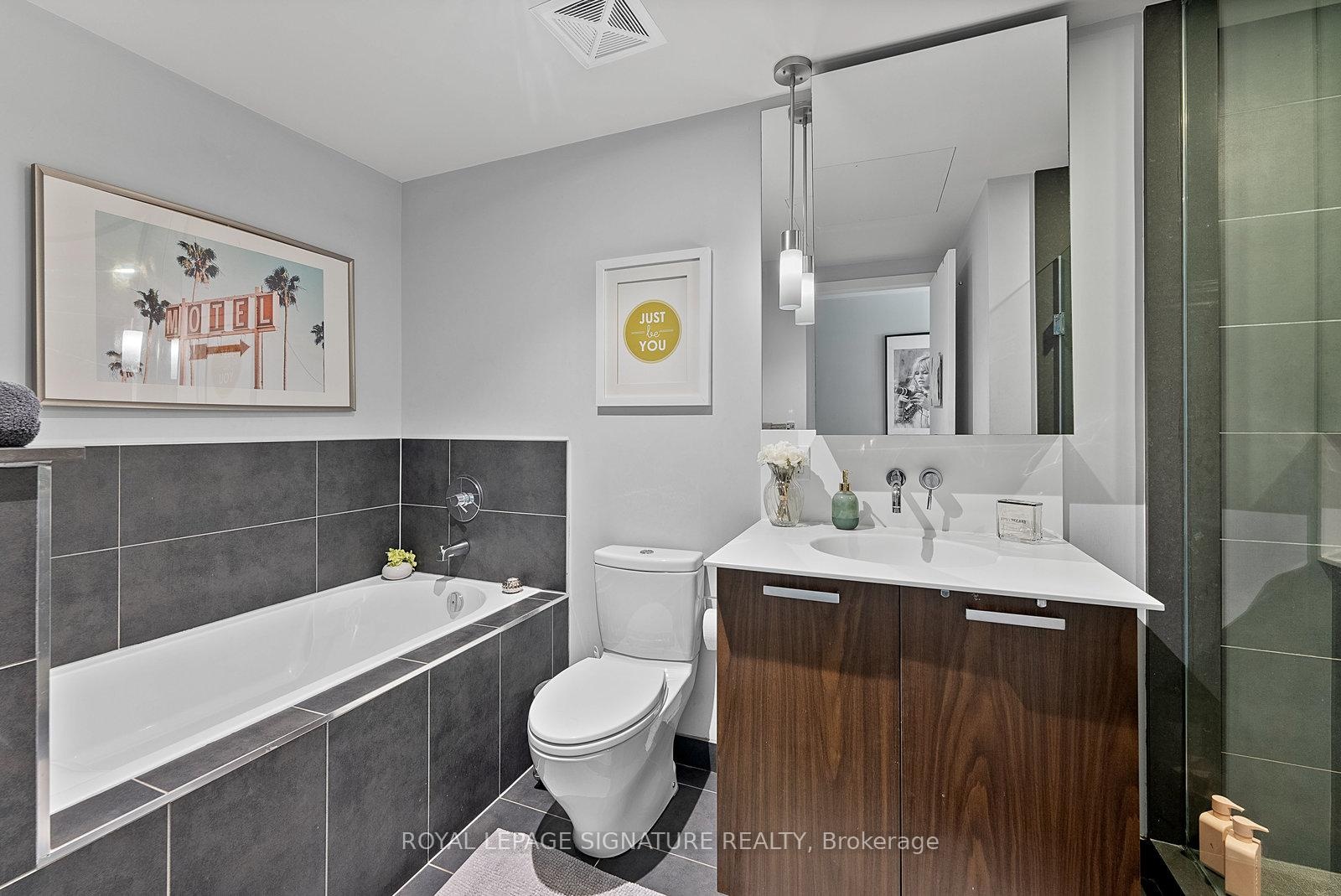 Executive fully furnished rental soft loft in the heart of King West. Just shy of 700 sq.ft.this 1 bedroom corner unit has a large open concept living/dining/kitchen area with plenty of room to include a home office. Well appointed with just about everything you could need including a truly fully equipped kitchen, art, accessories, linens, bedding, household appliances, etc. Includes utilities and reliable Beanfield 1 Gbps internet. Engineered woodflooring throughout. The bathroom has a separate soaker tub and shower, making it great for couples. Balcony lined with high grade artificial grass for comfort. BBQs permitted. This is not an average furnished rental. See it in person to truly appreciate it! Ideal location near the restaurants, cafes and nightlife of King West and a short walk to Queen West's shopping district. Easy T.T.C. access with 2 transit lines. Walking distance to the Financial District, sporting venues, Lake Ontario, parks, library, grocery stores and much more.
